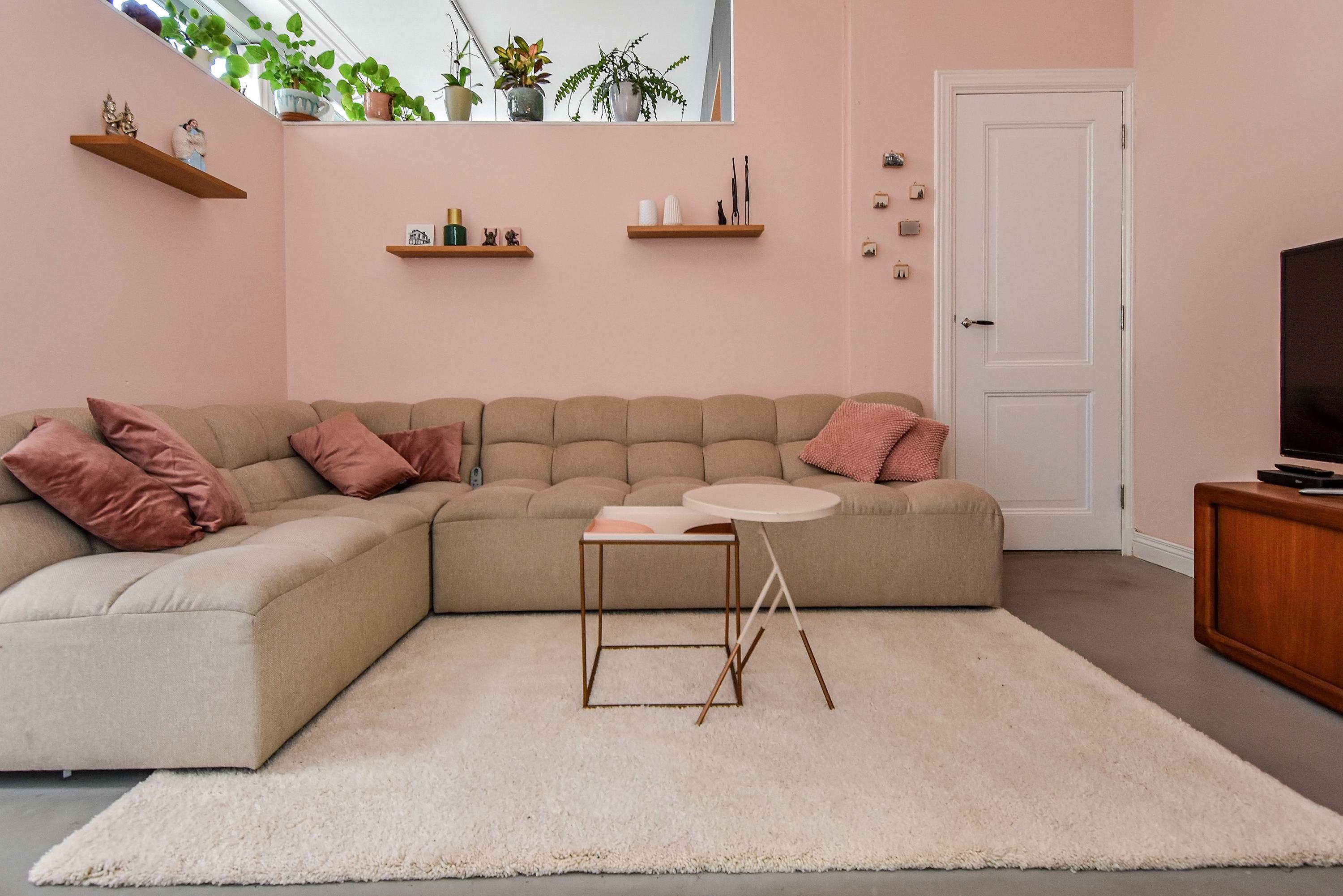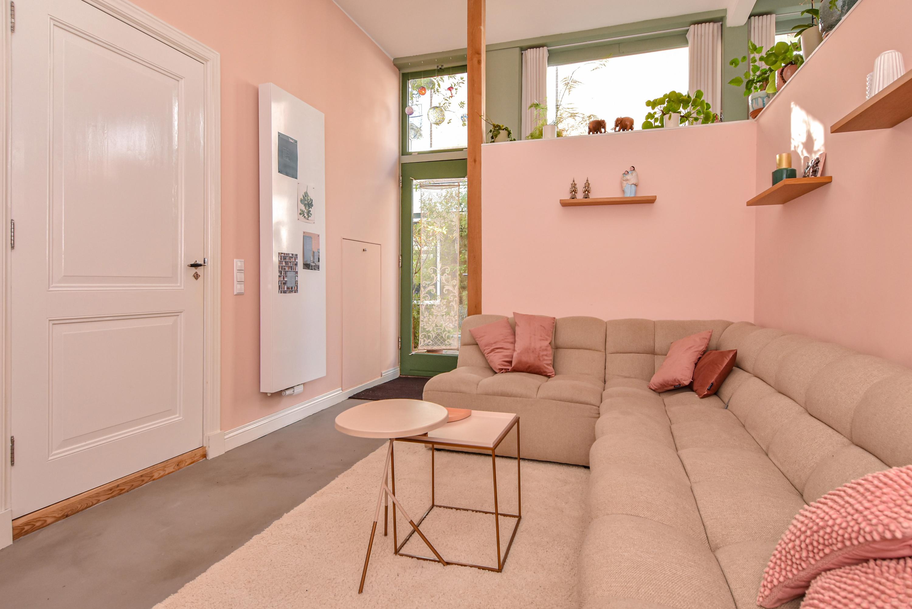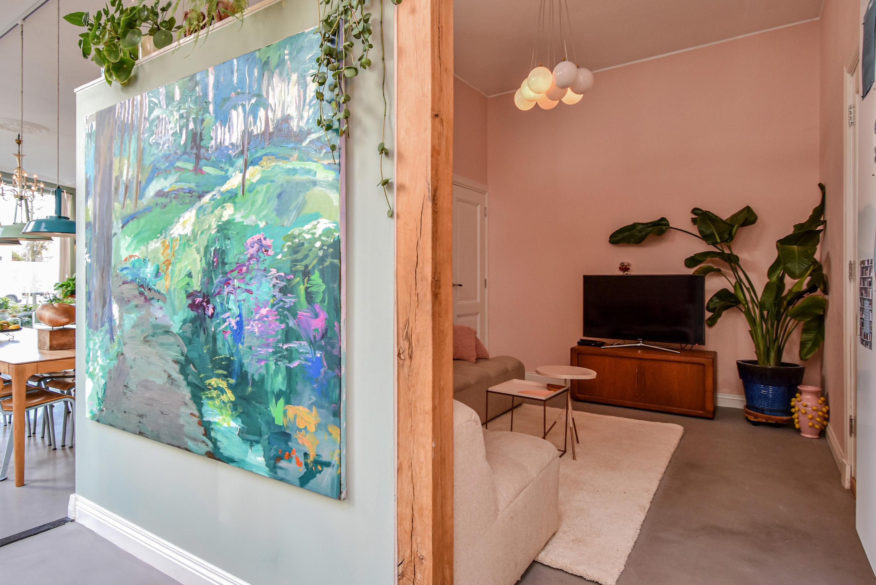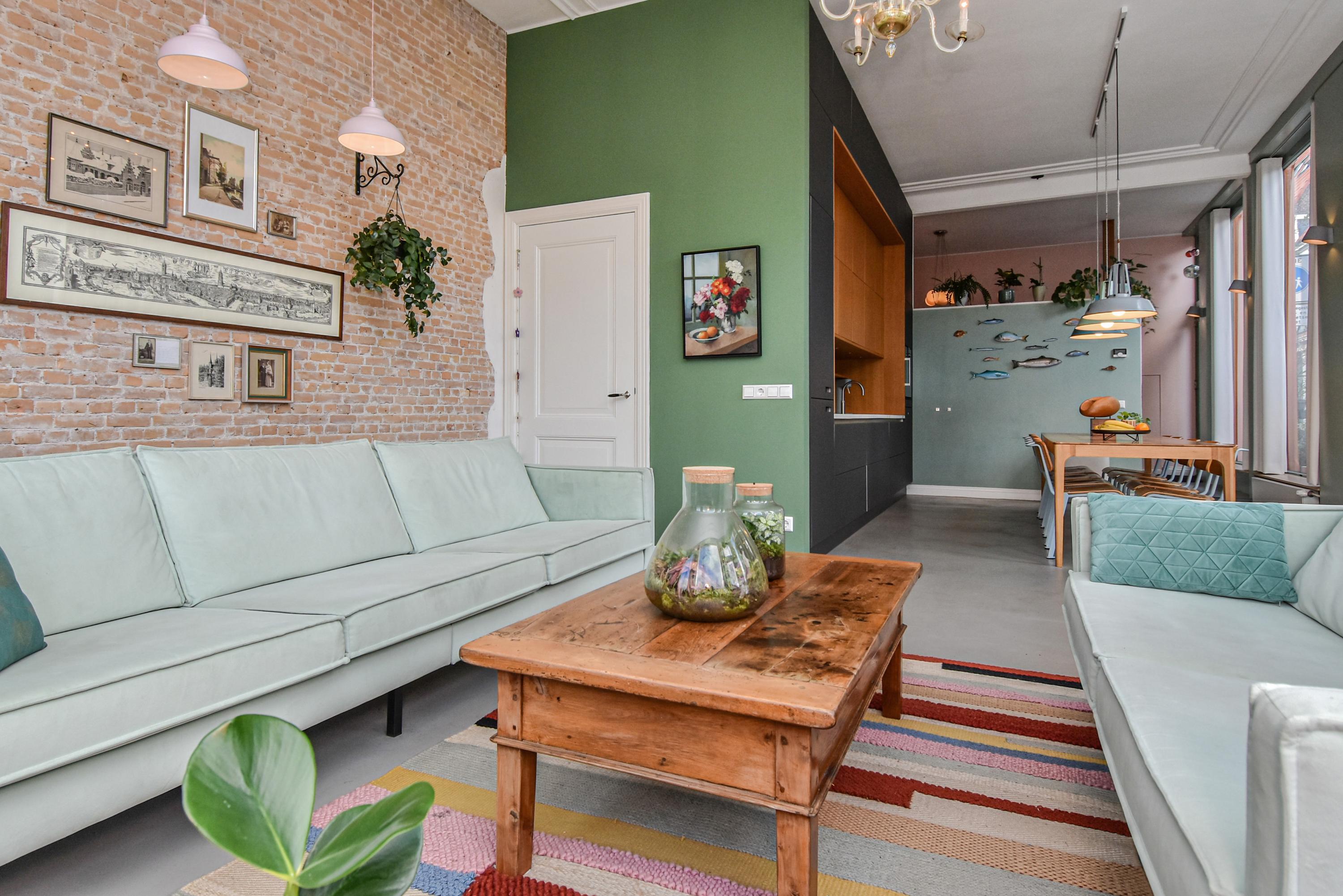 Bij binnenkomst word je direct verrast door de prachtige woonkeuken met haar indrukwekkende hoge glazen puien en een plafondhoogte van maar liefst 3,55 meter. In het plafond zit de originele gestucte sierlijst. De ruimte baadt in het licht en biedt volop plek voor een royale eettafel. De stijlvol afgewerkte keuken vormt het hart van de woning: een fijne ruimte met luxe inbouwapparatuur, waar je met plezier kookt en gasten ontvangt.