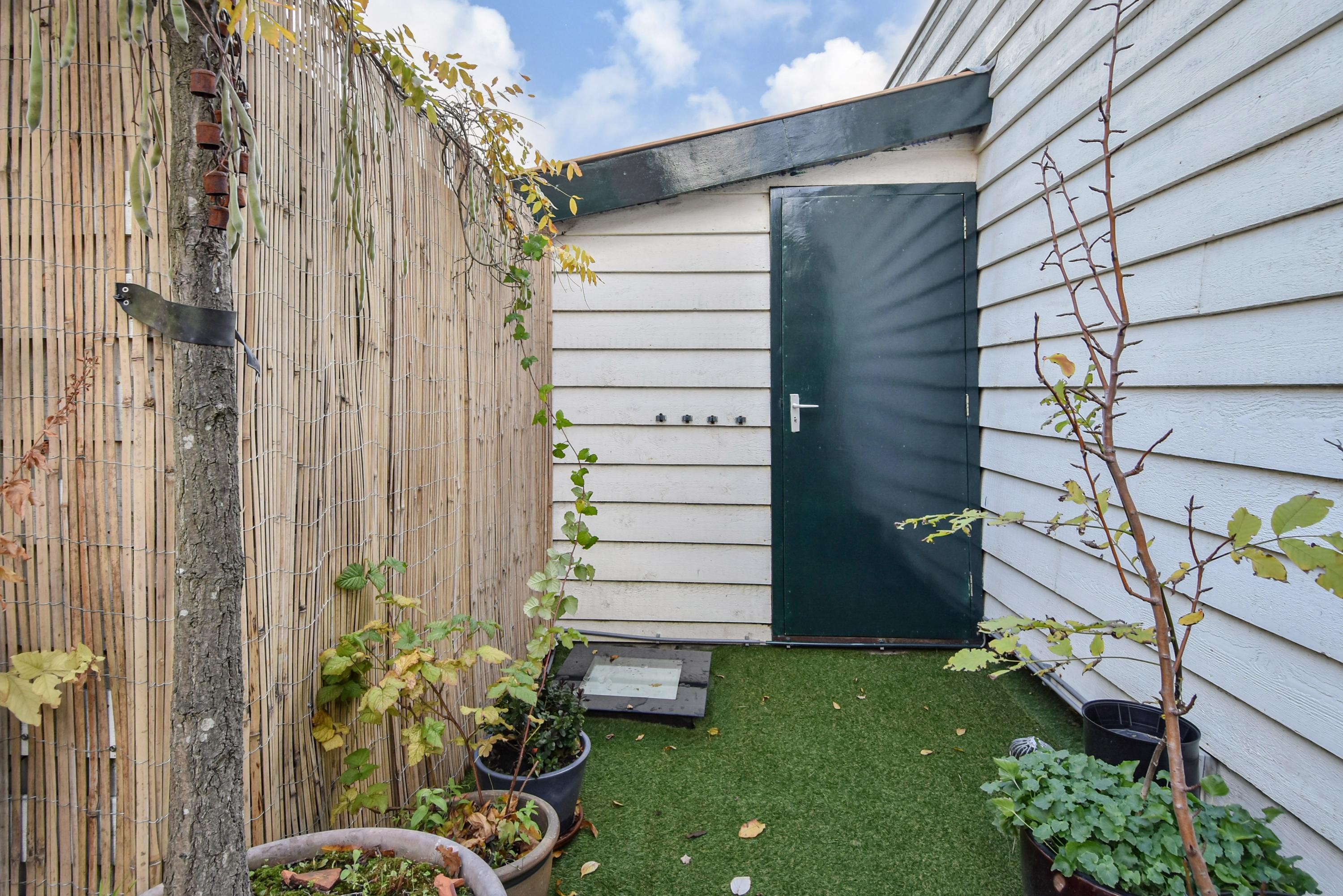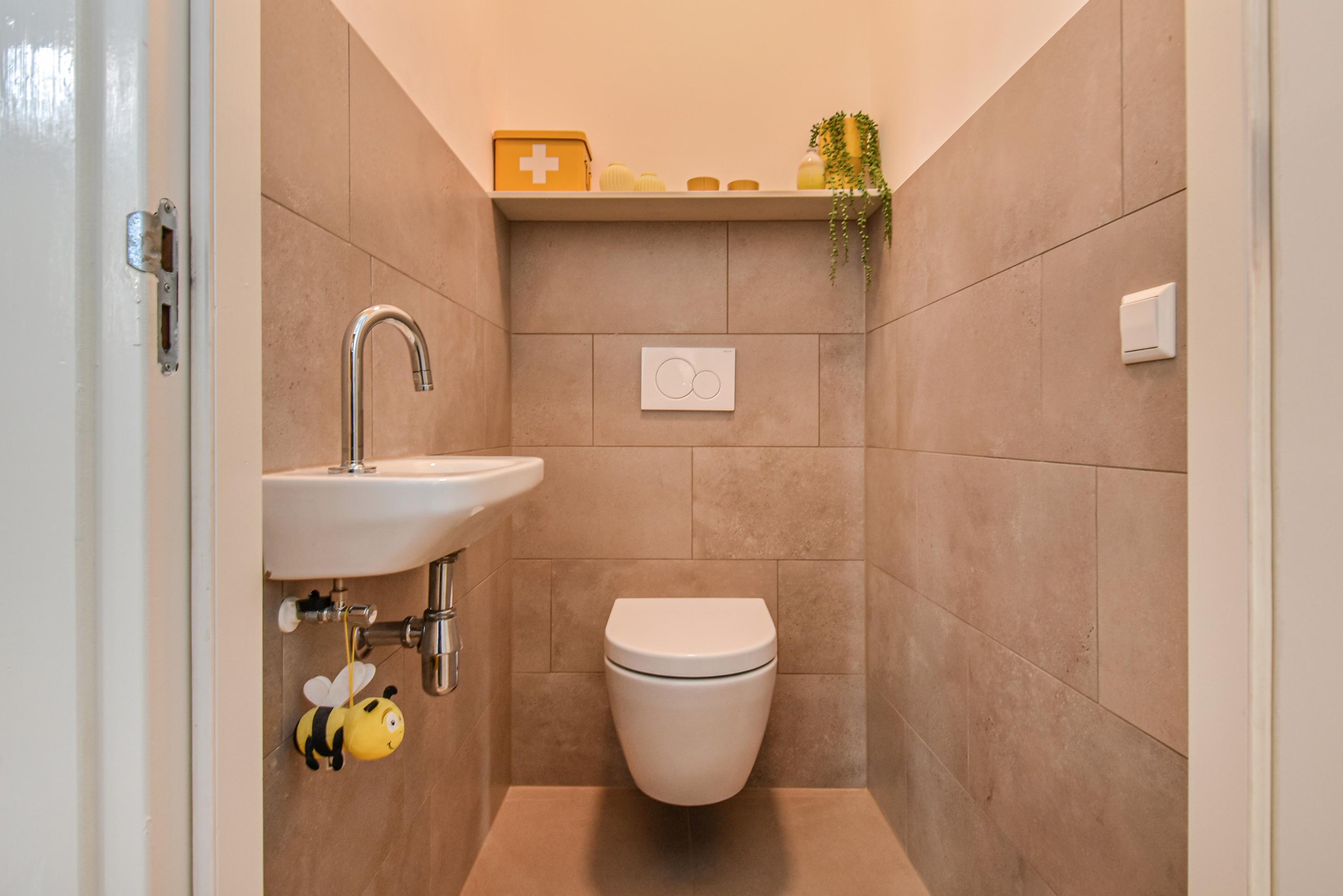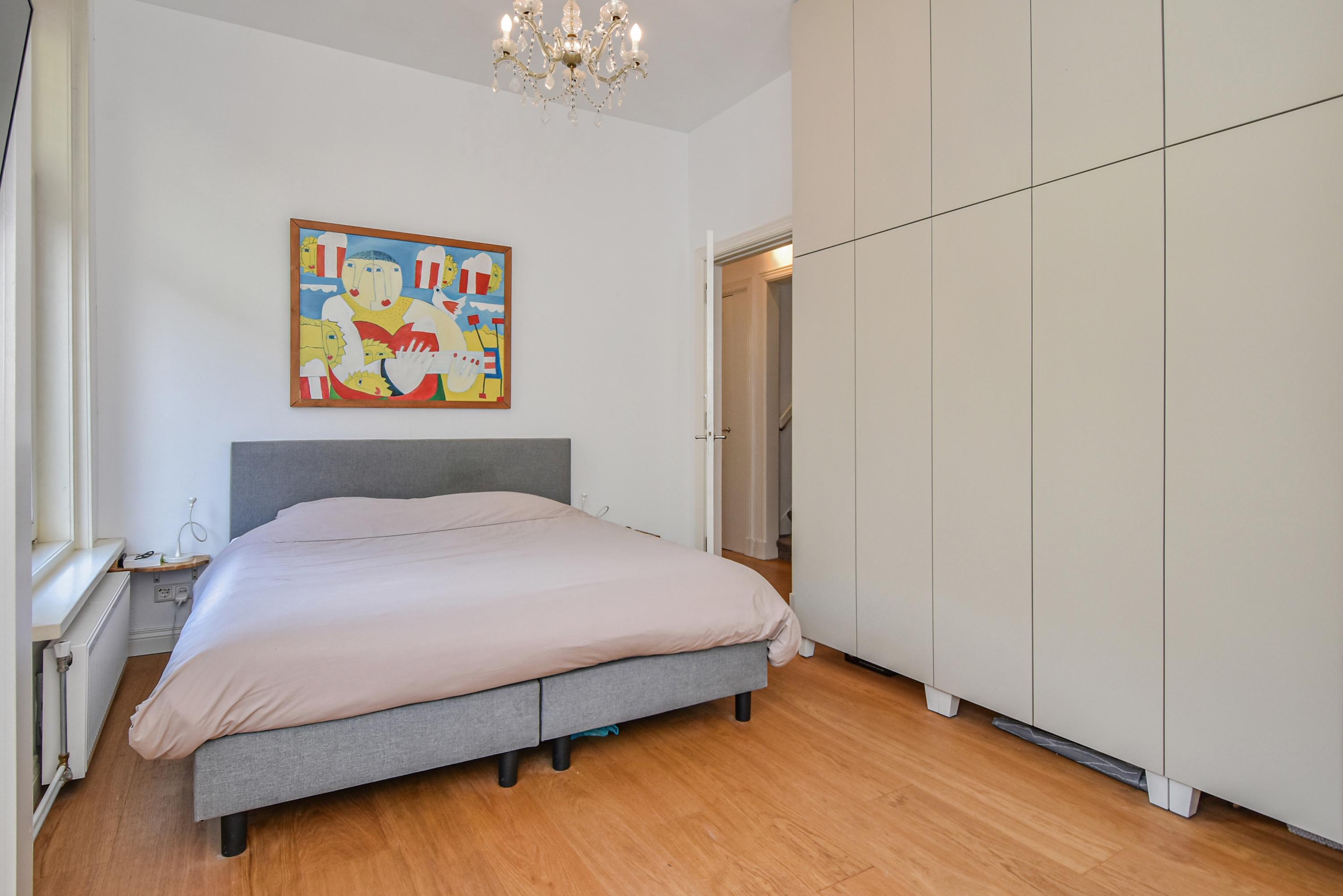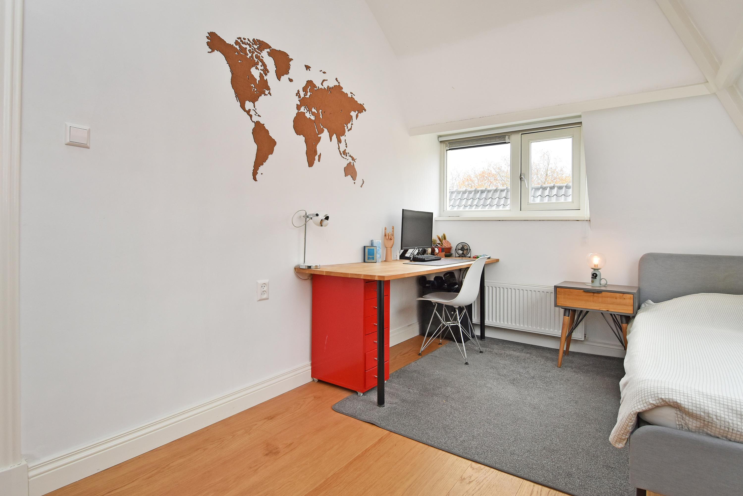 Aan weerszijden van de keuken bevinden zich twee sfeervolle leefruimtes: aan de ene kant een zitkamer en aan de andere kant een knusse woonkamer met een gezellige zithoek. Aangrenzend bevindt zich de inpandige studio, eveneens met een fraaie hoogte en openslaande deuren naar de straat. Deze ruimte is ingericht als slaapkamer met een eigen badkamer voorzien van inloopdouche, dubbele wastafel en toilet — ideaal als gastenverblijf, aanleunwoning, kantoor of praktijkruimte aan huis. Aan de achterzijde is een grote, praktische fietsenberging met vliering. Deze heeft toegang via de Broerhuisstraat. Vanuit de woonkamer leidt een rechte trap naar de eerste verdieping.