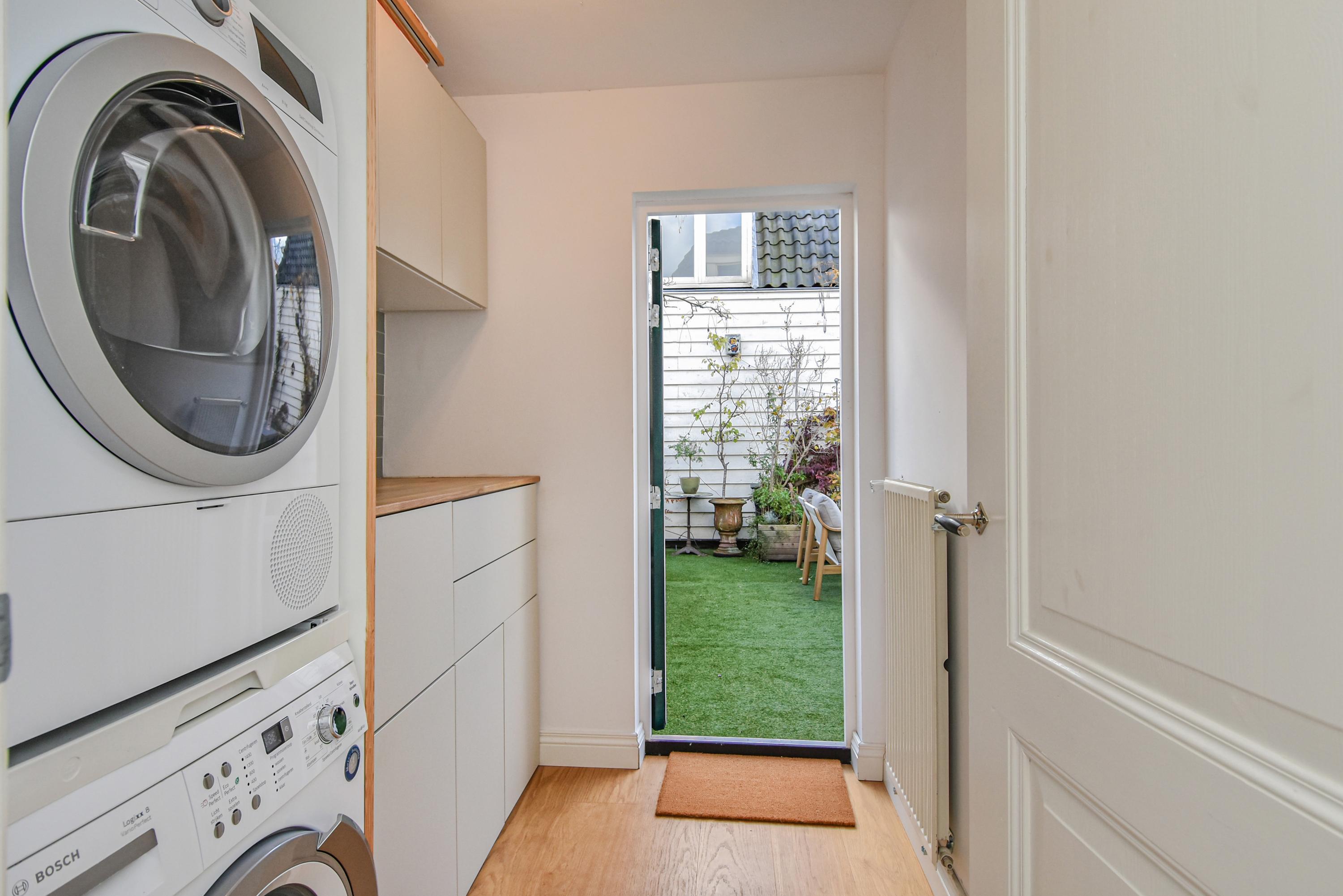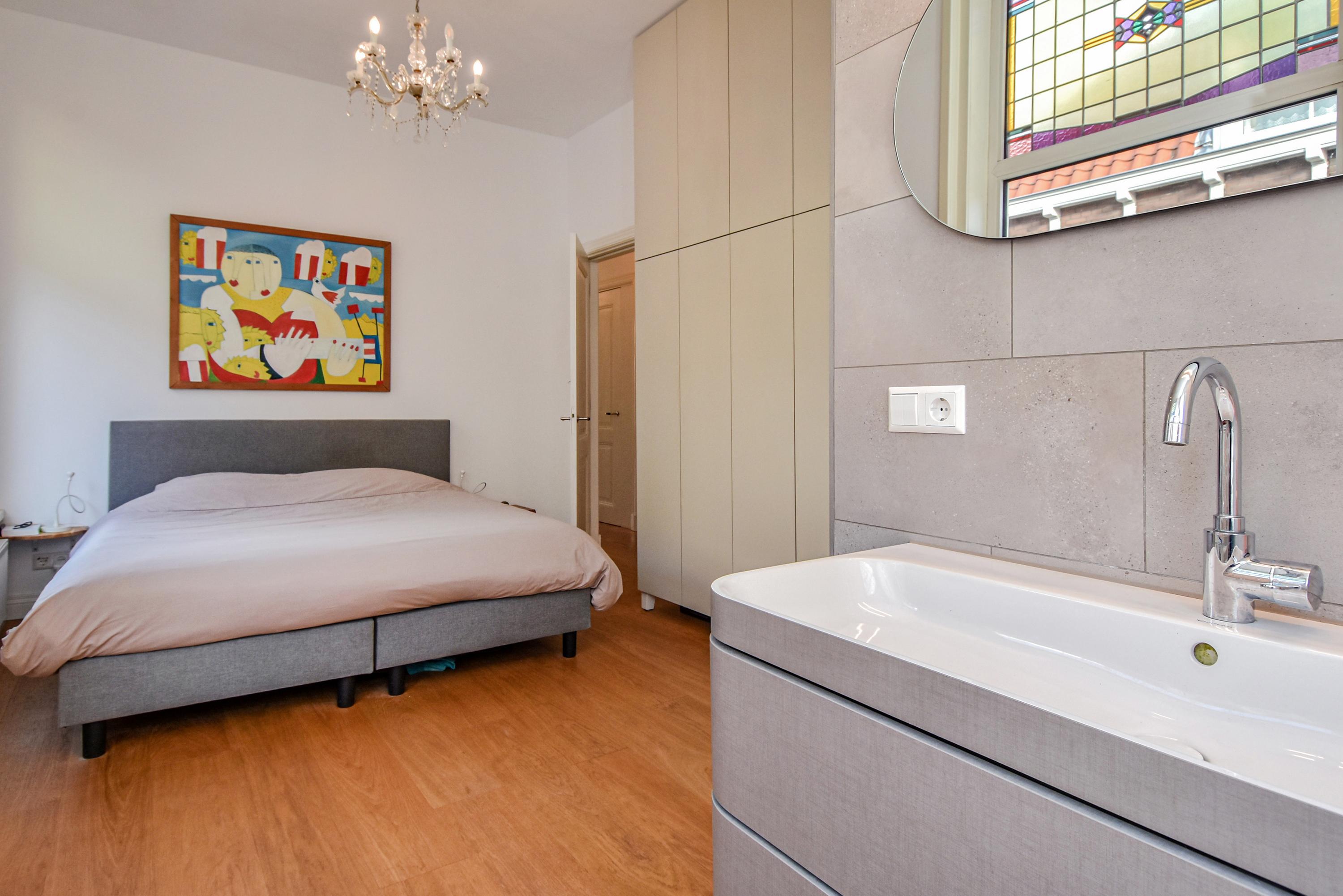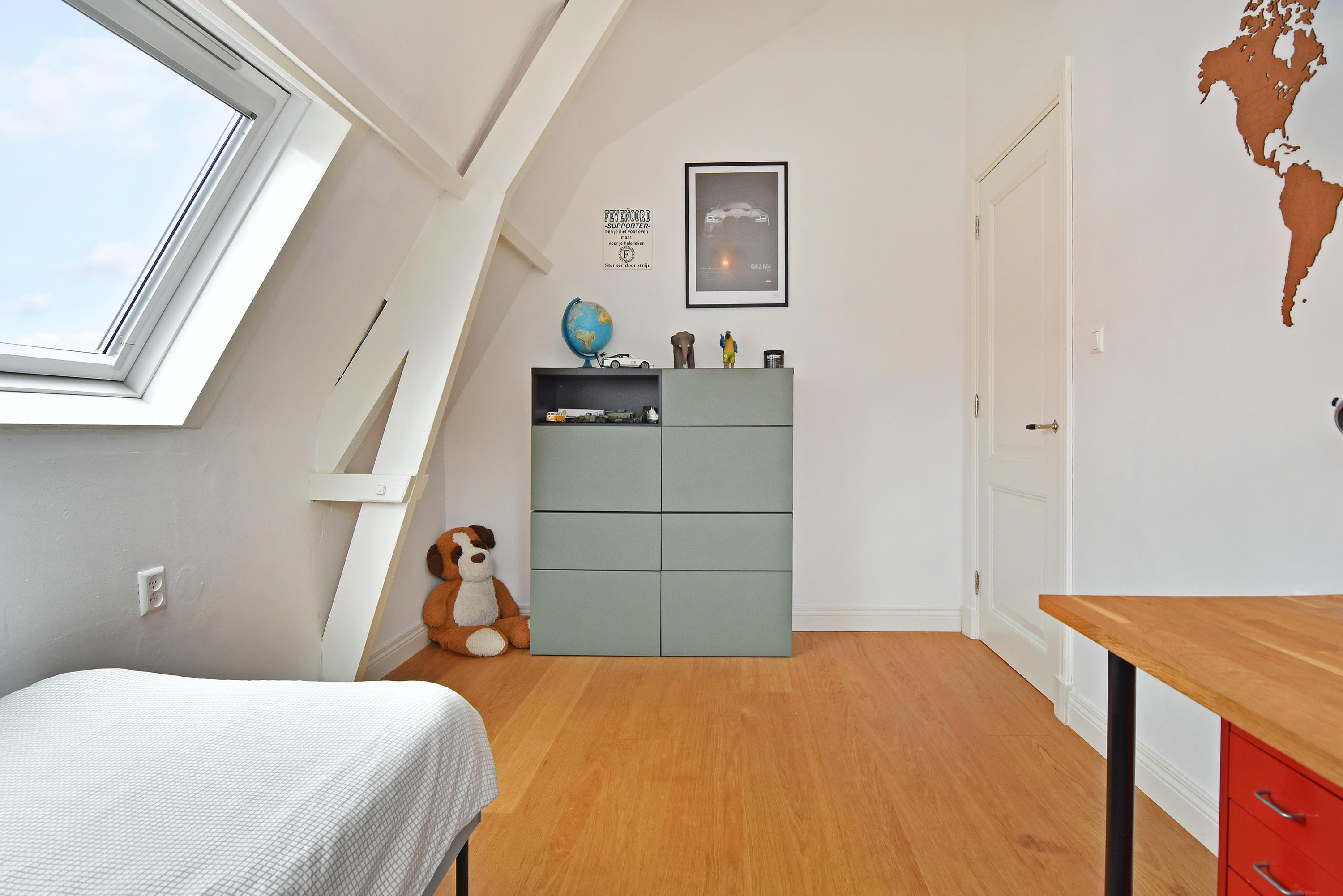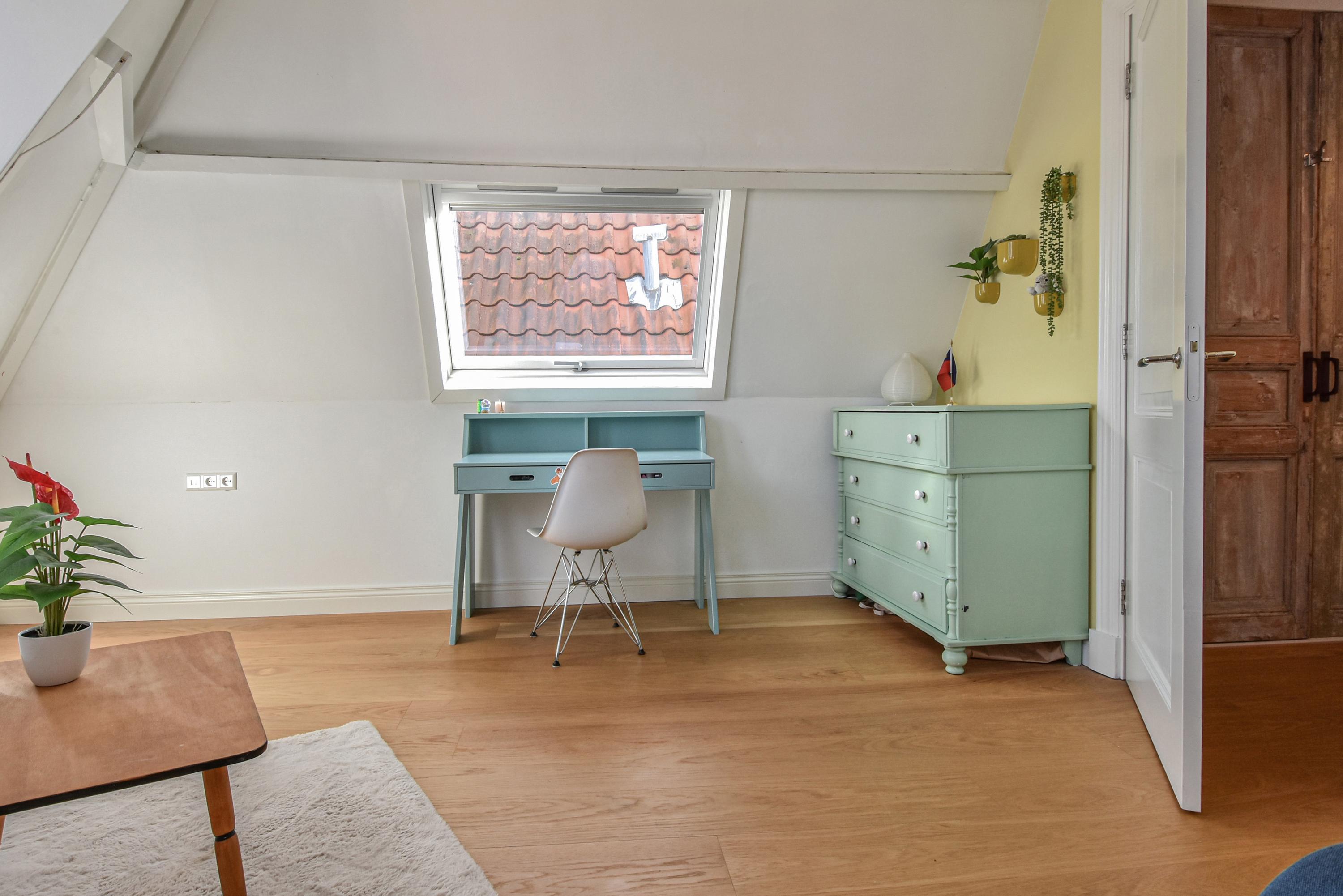 De overloop biedt toegang tot een apart toilet met wastafeltje en een extra kastruimte. De royale, lichte slaapkamer aan de voorzijde heeft een hoog plafond en een prachtig uitzicht over de gracht. Daarnaast zijn er nog twee ruime slaapkamers, waarvan een voorzien van inloopdouche en wastafel. In alle slaapkamers sieren de glas-in-loodramen de vertrekken. Een aparte wasruimte geeft toegang tot de daktuin, een heerlijke, beschutte plek met optimale zonligging. Van ’s ochtends vroeg tot laat in de avond geniet je hier van volop zon, privacy en een sfeervolle, groene setting. Op het terras bevindt zich bovendien een ruime houten berging.
