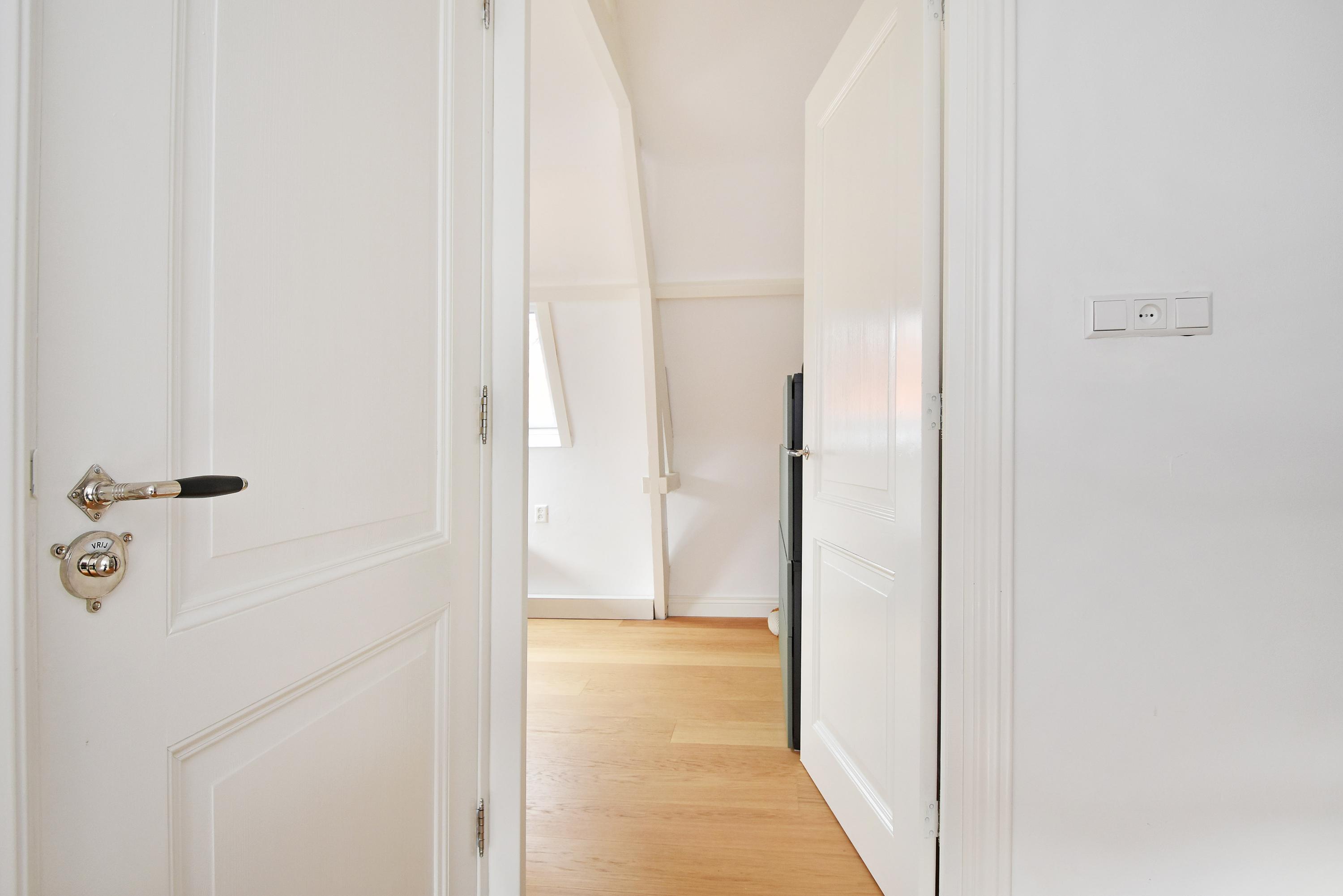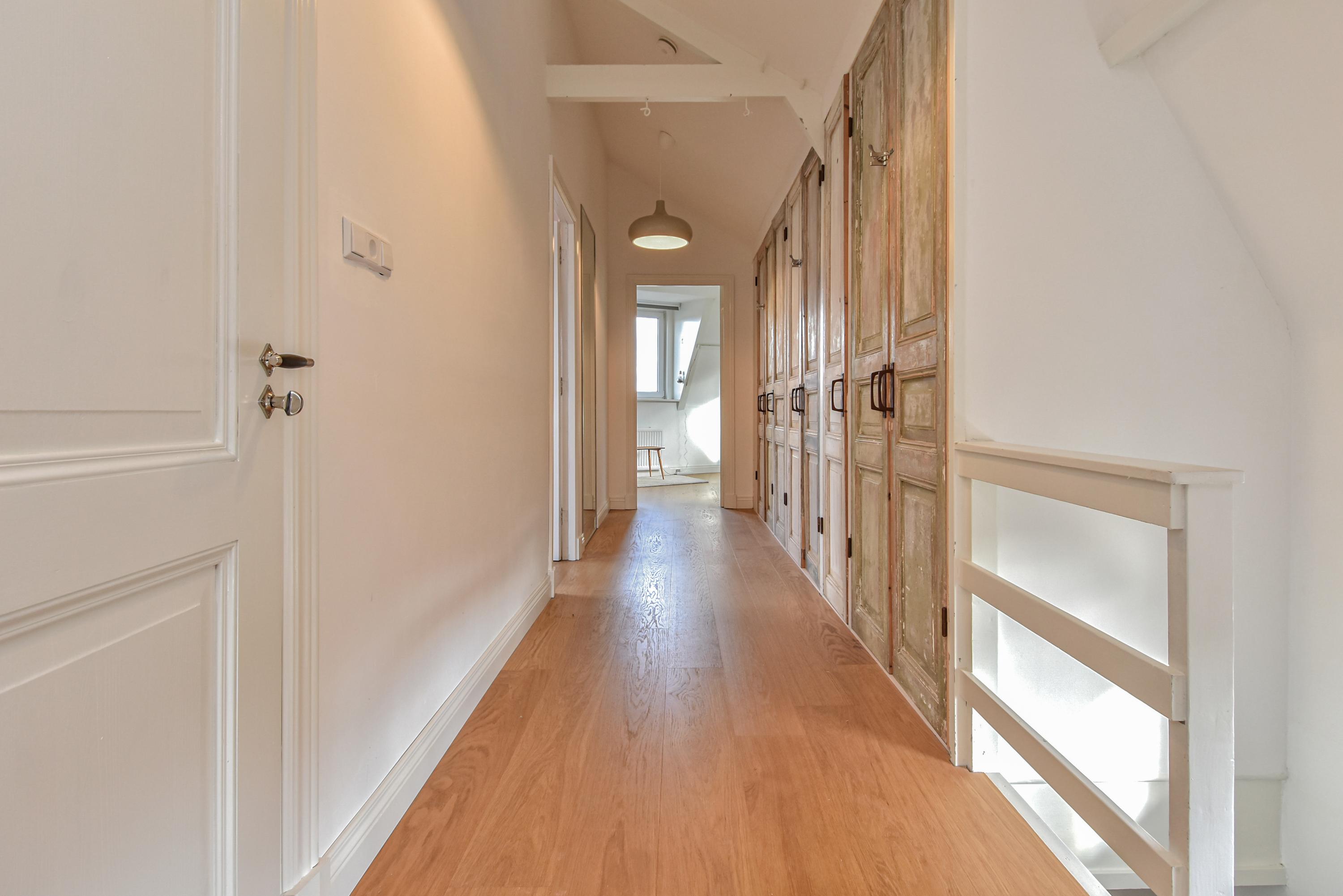 De tweede etage is verrassend ruim. Een lange gang met vaste kasten, voorzien van karakteristieke antieke deuren, biedt toegang tot nog 3 slaapkamers. Aan de voorzijde ligt een ruime kamer met dakraam, dakkapel en open kap waarin de originele balkenconstructie zichtbaar is. De tweede slaapkamer heeft een hoge dakkapel met een authentieke takelbalk, terwijl aan de achterzijde nog een fijne slaapkamer ligt met dakkapel en dakvenster, met uitzicht op de kerktorens van Delft. De luxe badkamer is compleet uitgevoerd met ligbad, inloopdouche, vierde toilet, design wastafelmeubel en handdoekenradiator.
