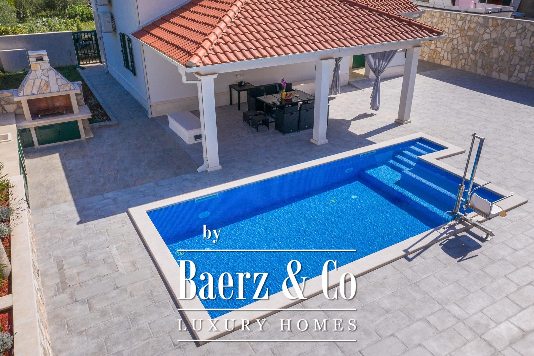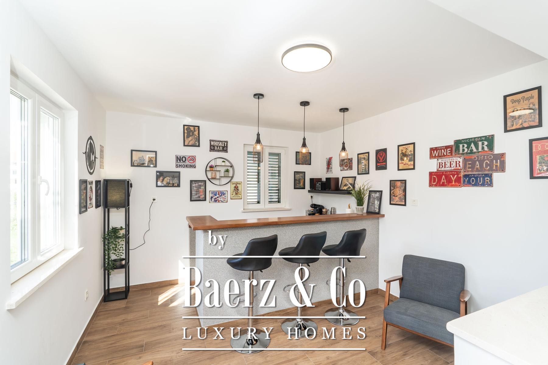 Aan comfort is veel aandacht besteed: iedere ruimte beschikt over airconditioning, vloerverwarming in alle vertrekken behalve de slaapkamers, en directe lifttoegang tot alle etages. Buiten vindt u een fraai aangelegde tuin met zwembad met lift voor gemakkelijke toegang, zonneterras, buitenkeuken en een bijgebouw met zonne-energievoorzieningen en extra faciliteiten. Deze townhouse in Dubrovnik Okolica biedt een harmonieuze combinatie van privacy, moderne bouwkwaliteit en verfijnd wonen direct aan het water.