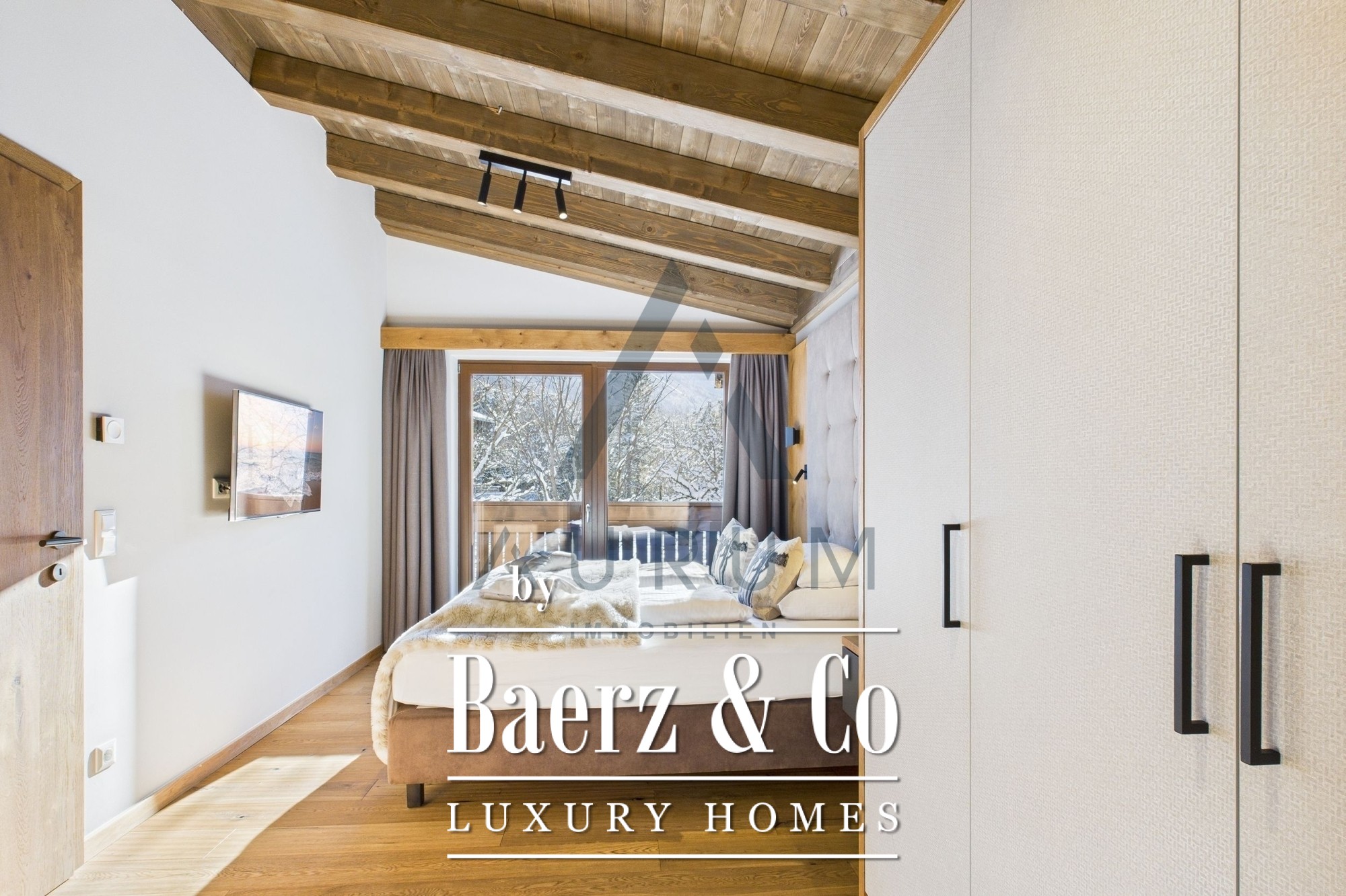 Op de bovenverdieping nodigen drie extra slaapkamers en twee balkons uit tot rust; twee kamers beschikken over en-suite faciliteiten. De afwerking is met zorg gekozen, met eiken parketvloeren en fijn keramiek in een uitgesproken alpine stijl. Het chalet wordt volledig gemeubileerd en uitgerust aangeboden voor direct gebruik of verhuur.
