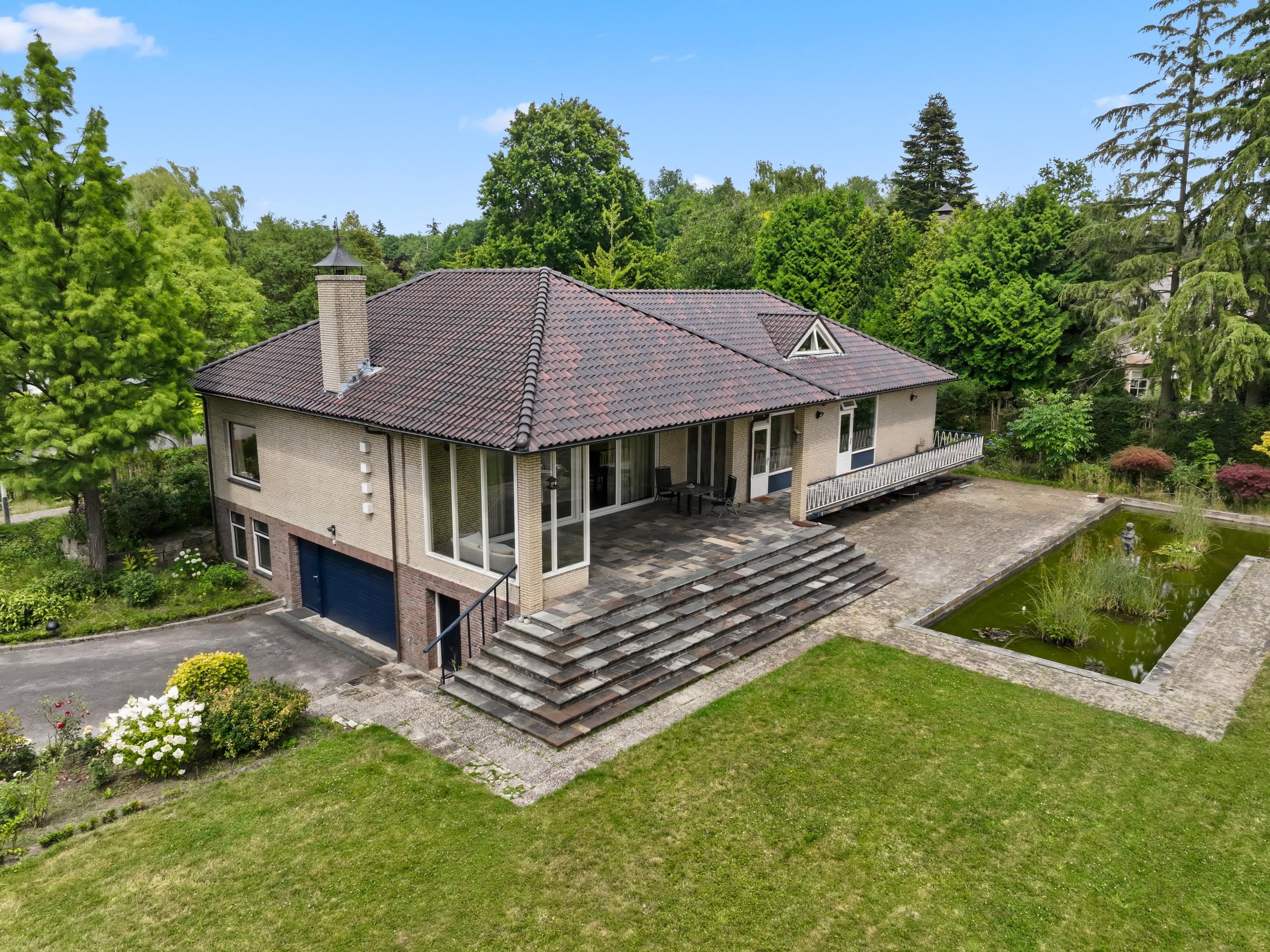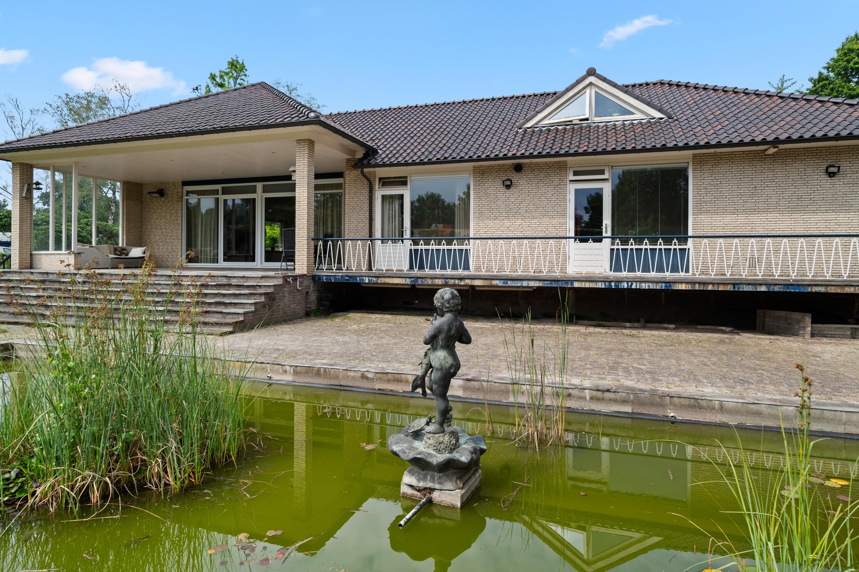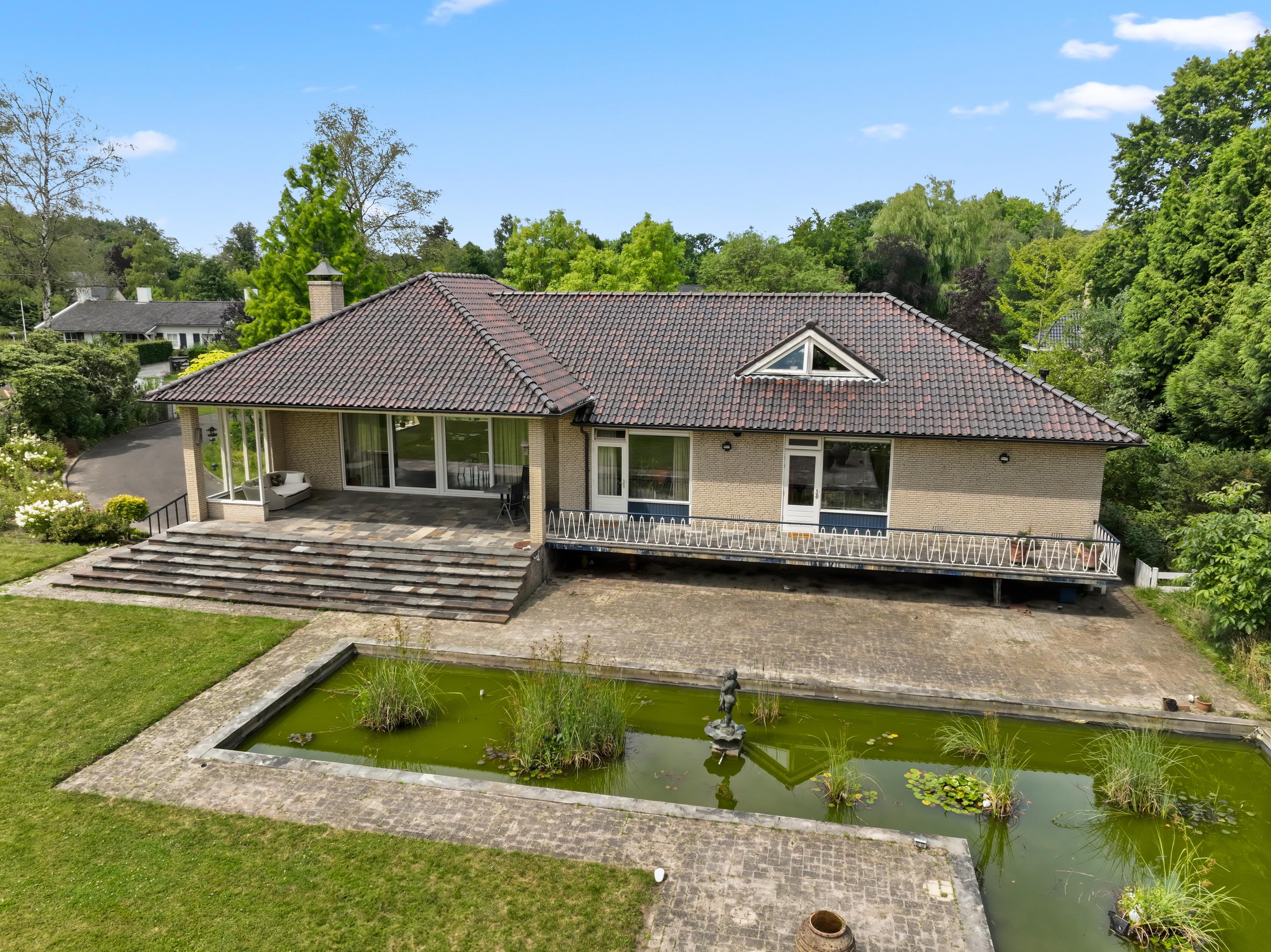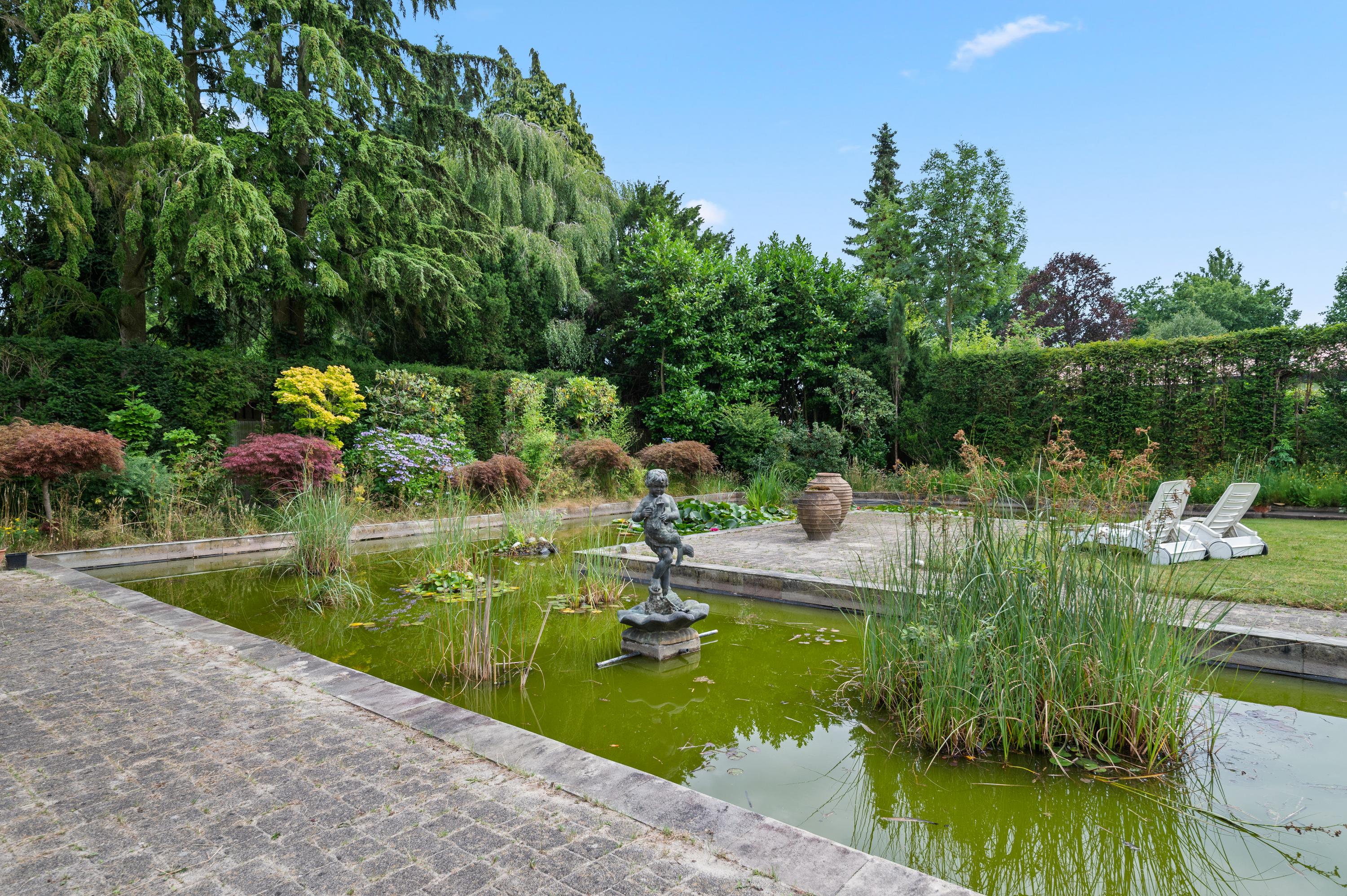 * Prachtige tuin met vijverpartij, exotische beplanting en deels overdekt terras;