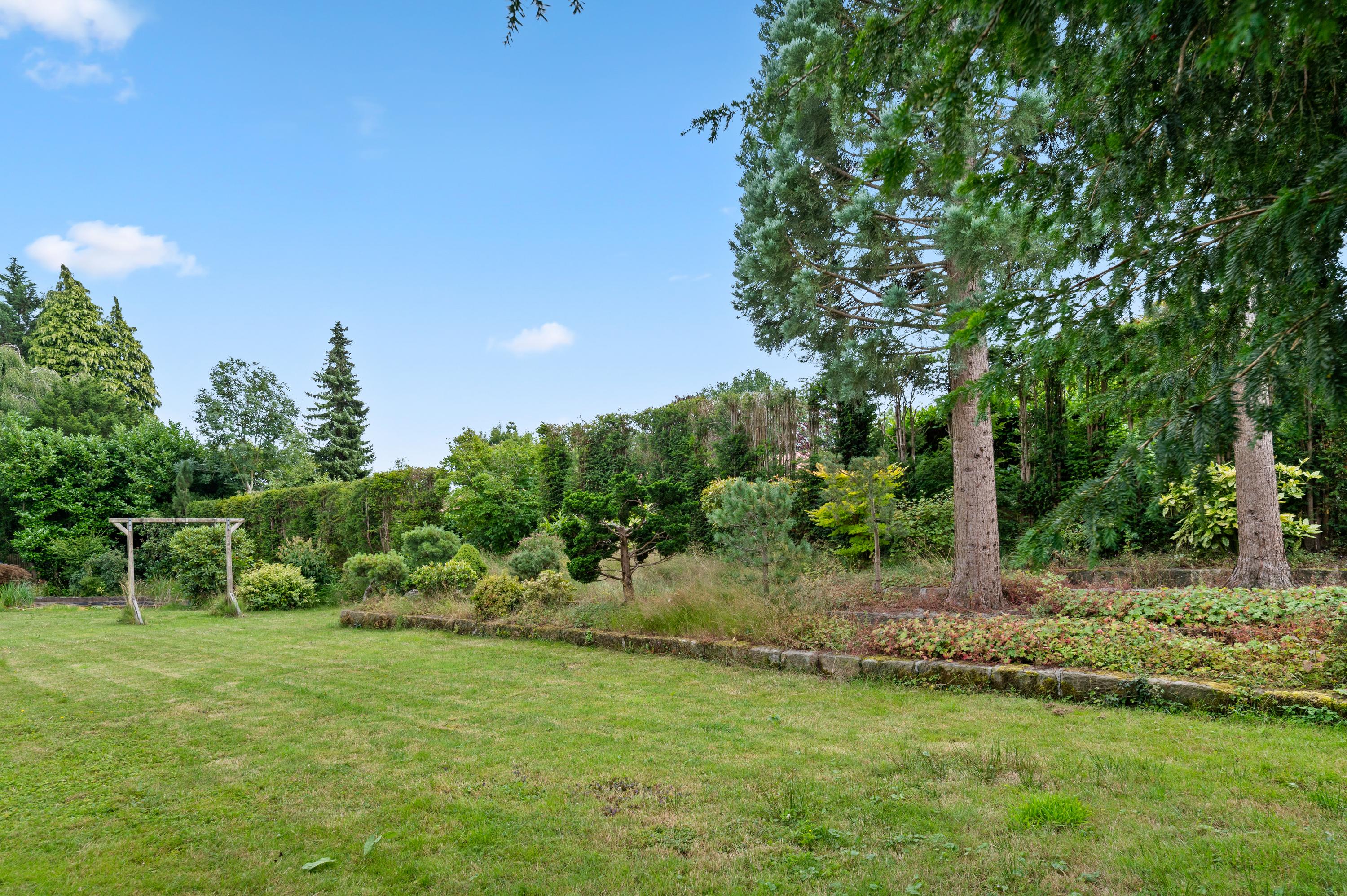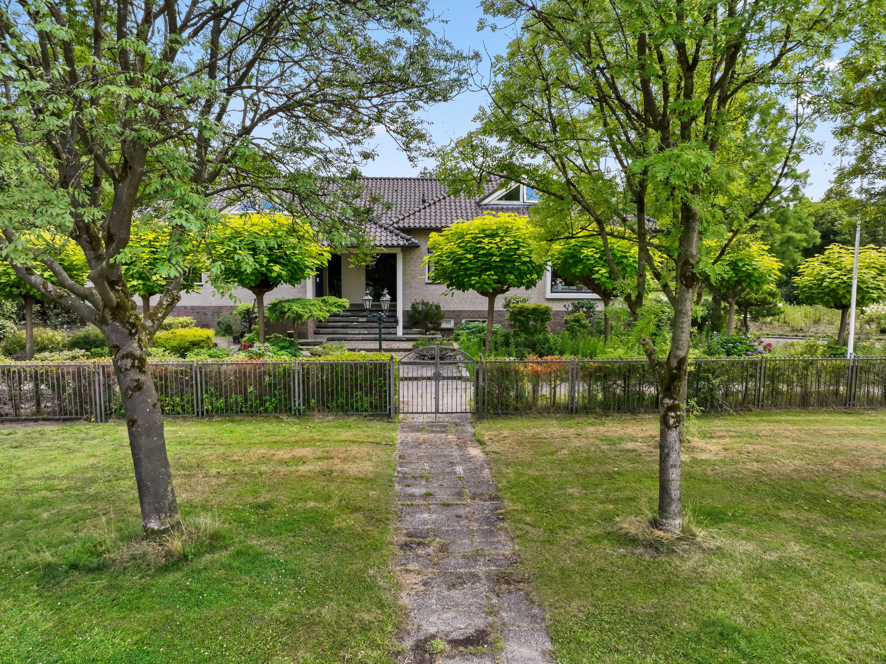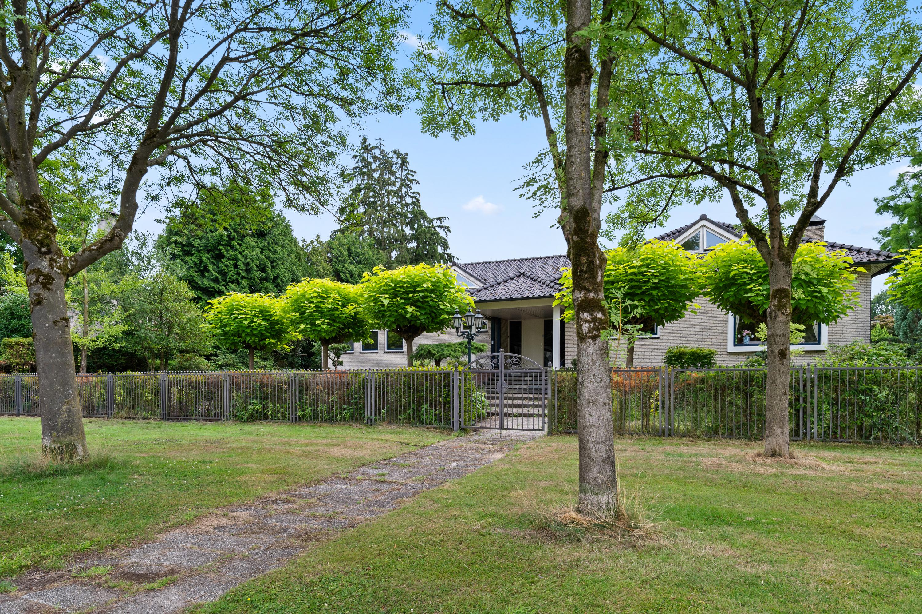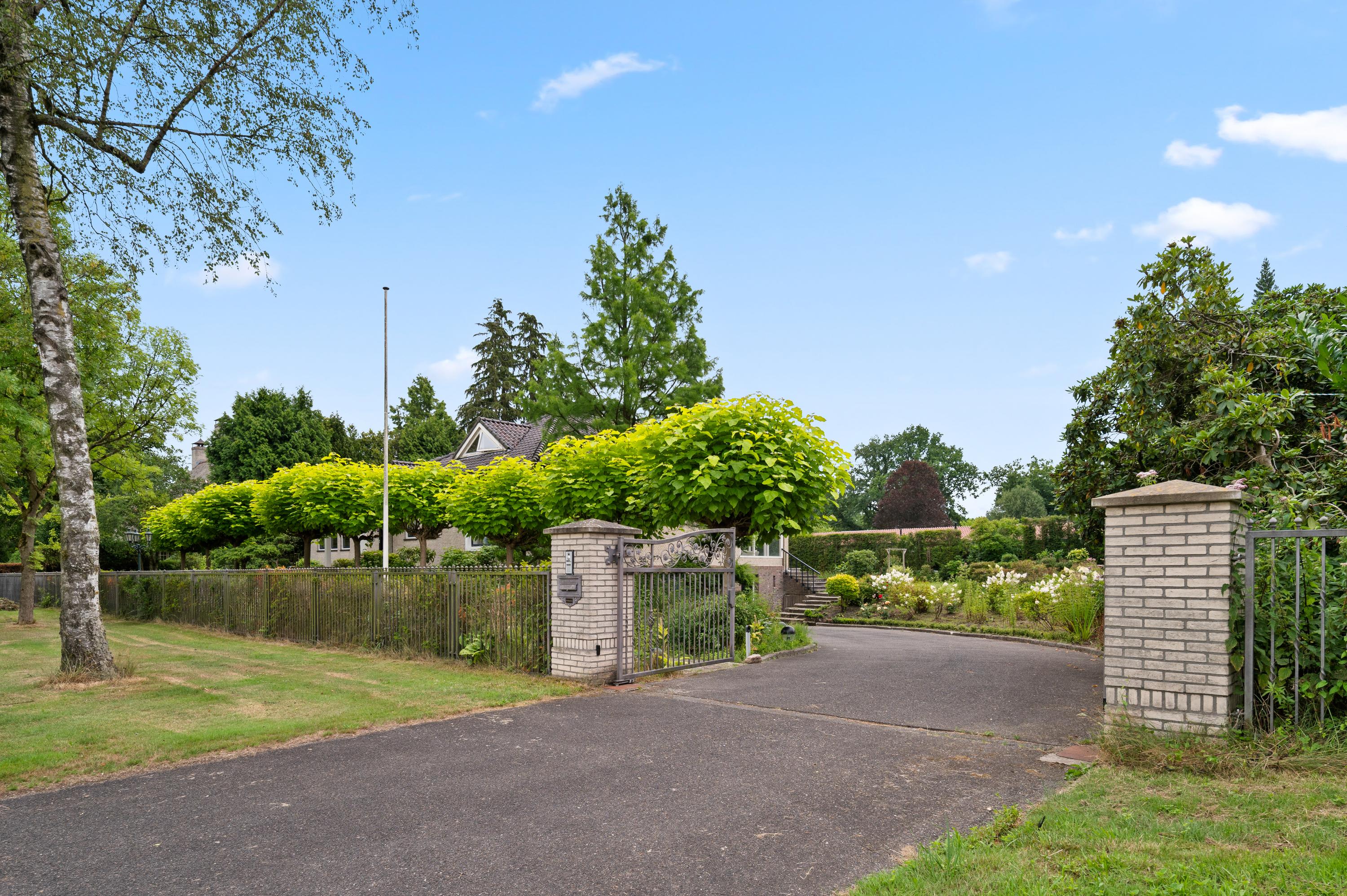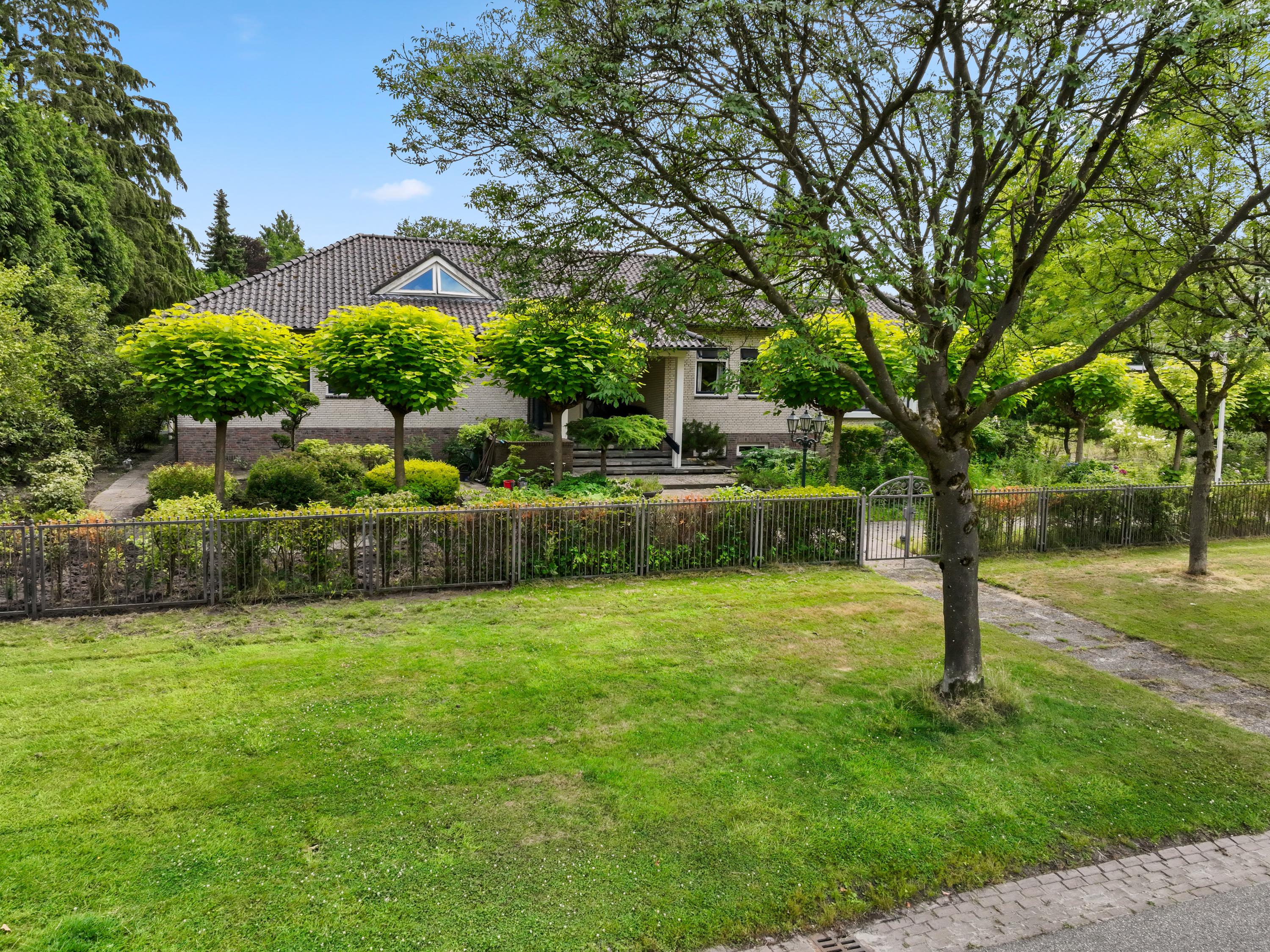De villa ligt op een royaal perceel, aan de rand van de villawijk en buitengebied met veel privacy en geflankeerd door andere ruime kavels. Een stijlvol hek met elektrische sierpoort vormt de chique entree. De botanische tuin – ontworpen door Harry Menkenhorst – biedt elk seizoen een uniek decor met exotische planten, een vijverpartij en bronzen fontein. Er is ruimte voor een zwembad zonder concessies aan zicht of rust. Het overdekte terras maakt het buitenleven compleet.