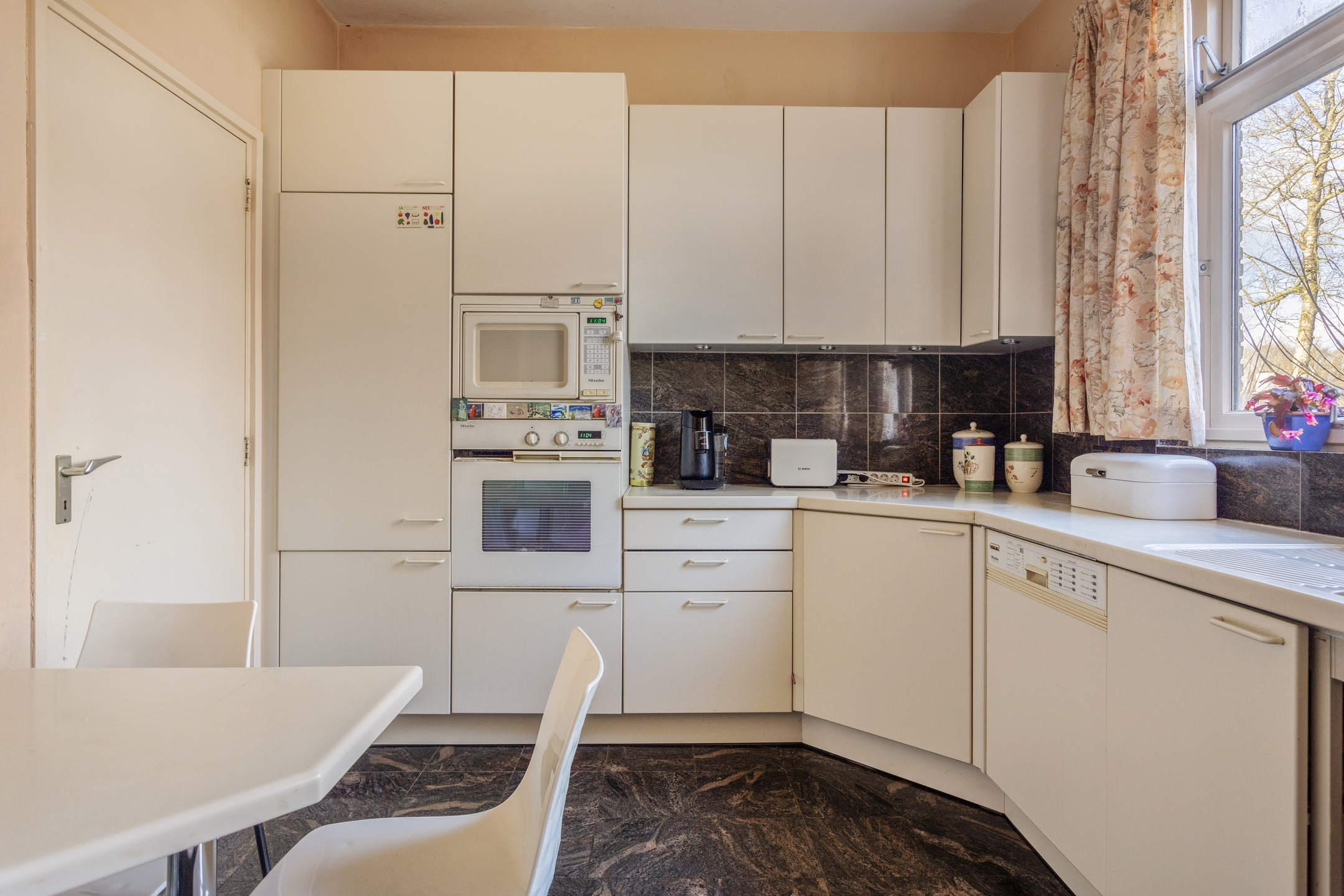 - Een gesloten keuken met veel potentie voor modernisering en maatwerk.