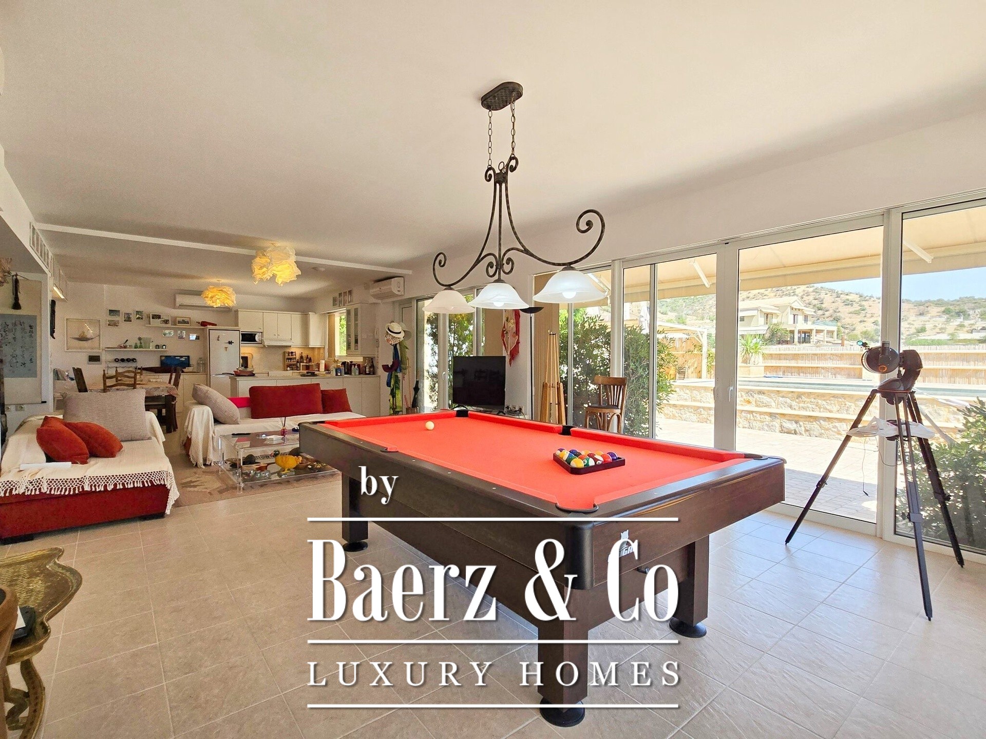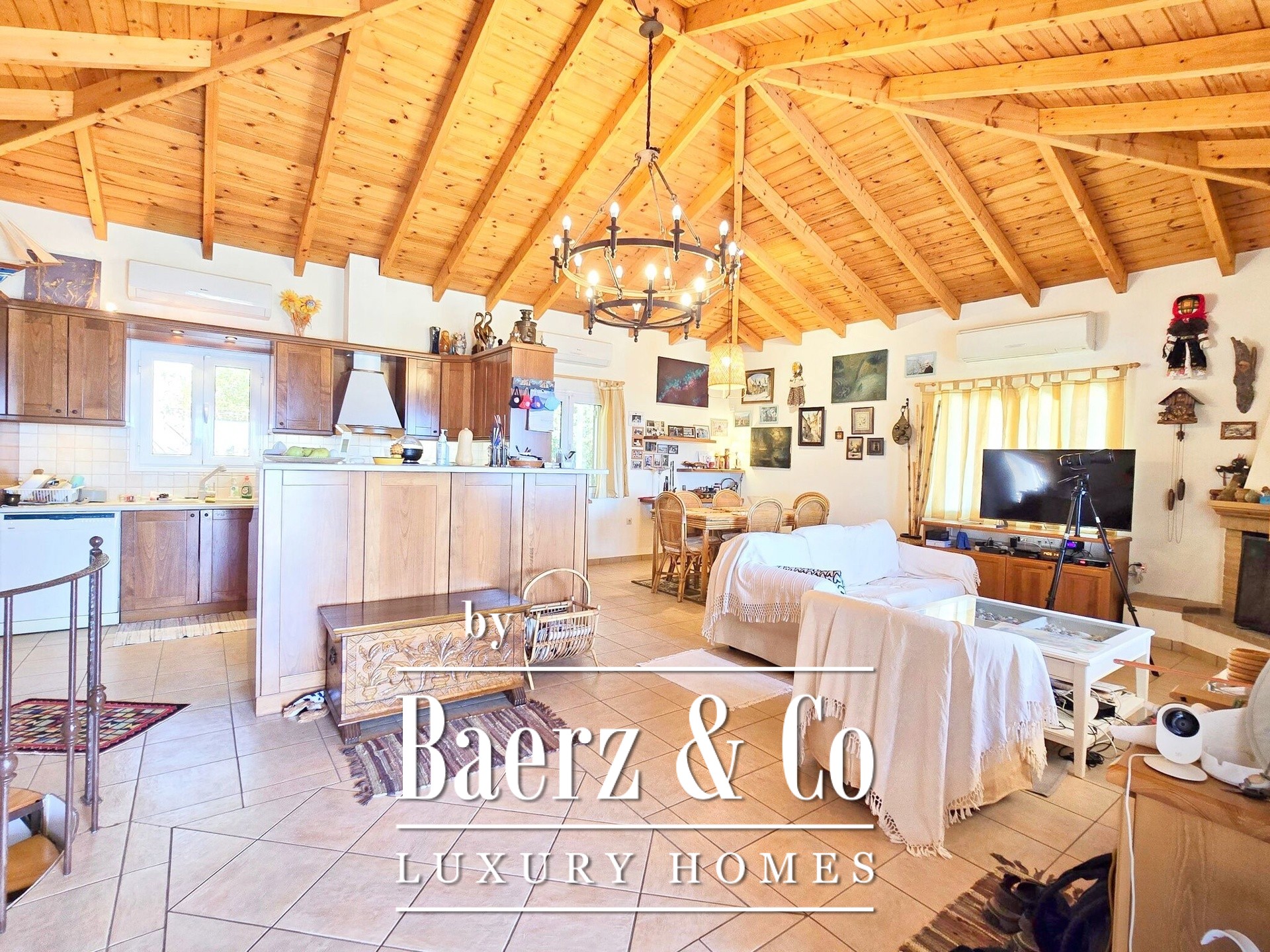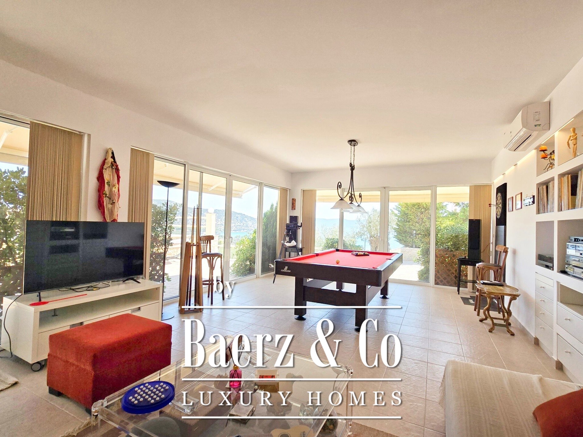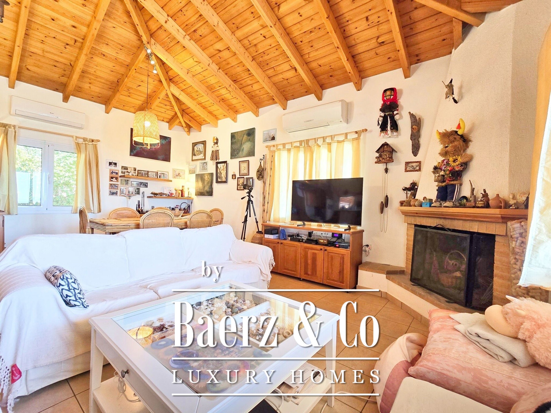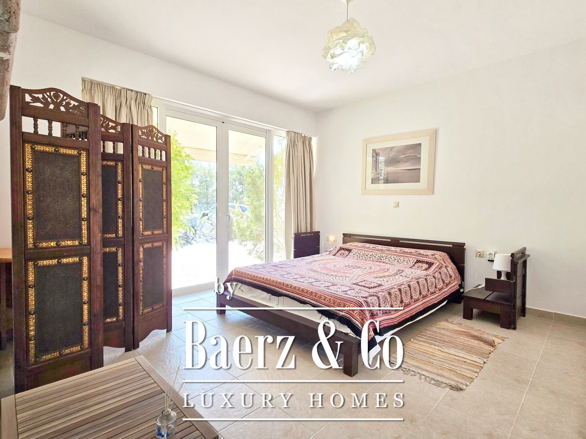In de gehele Villa Ermioni zorgen voorzieningen als een fotovoltaïsch systeem, warmtepomp, airconditioning, alarmsysteem, camera’s, geboorde waterput en dubbele beglazing voor duurzaamheid en gemoedsrust. De omliggende tuin is rijkelijk beplant met fruitbomen en sierplanten, waarbij natuurstenen muren en kinderkopjes zorgen voor een ontspannen, mediterrane leefstijl. Deze luxe villa te koop in Ermioni verenigt hoogwaardige bouwkwaliteit, privacy en toegang tot de iconische stranden van Griekenland.