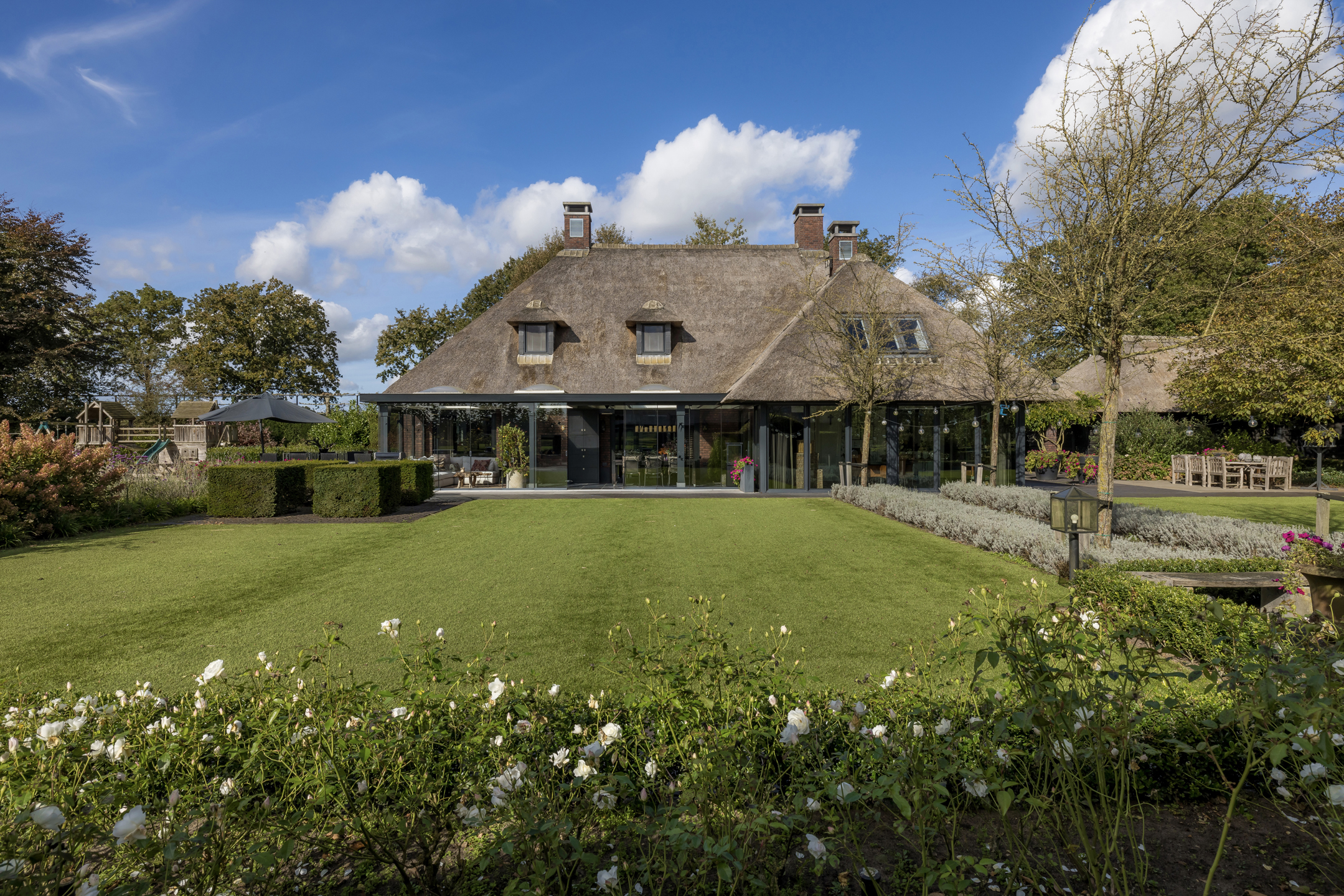 In het buitengebied van Erp gelegen, een werkelijk uniek rietgedekt landhuis met guesthouse en vrijstaande garage, op een riant perceel van bijna 1.5 hectare. Een droomhuis waar het echt aan niets ontbreekt: landelijk, klassiek, chique en technisch modern. Het energielabel A+++ geeft aan dat dit schitterende object ook helemaal op de toekomst is voorbereid. Een woning waar aan ruimte geen gebrek is, volledig onderkelderd, royale begane grond, een riante eerste verdieping en een zolder. Dit heerlijke familiehuis voelt ruim en cosy, zonder het gevoel te krijgen dat het veel te groot is.