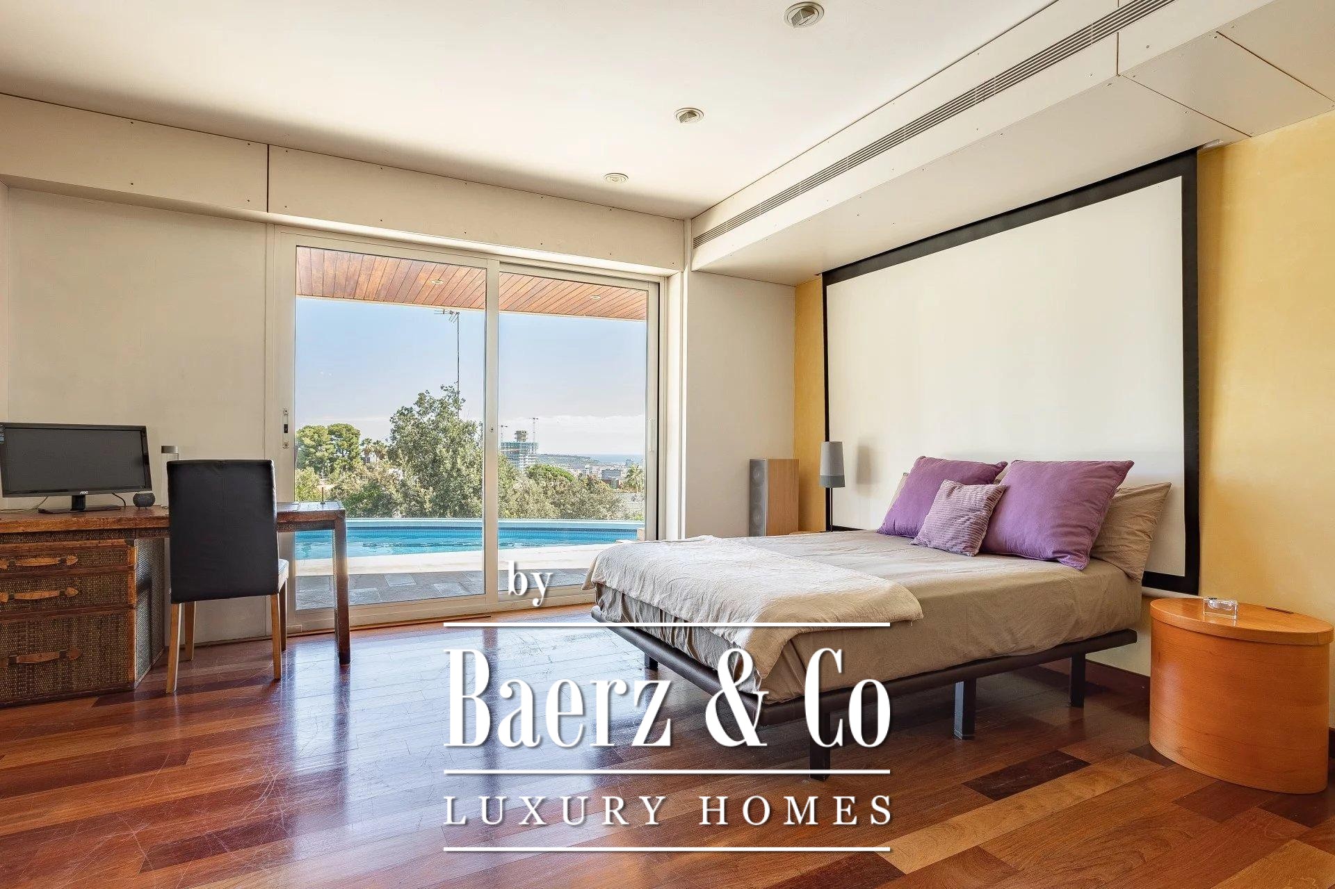 Op de bovenste verdiepingen bevindt zich het slaapgedeelte, met drie hoofdslaapkamers elk met eigen badkamer, en een mastersuite met studeerkamer. Op de hoogste verdieping zijn er drie eenpersoonskamers met badkamers en een panoramisch terras dat overvloedig licht en uitzicht op zee biedt. Voorzieningen omvatten centrale verwarming, airconditioning, een lift, video-intercom, fitnessruimte, opbergruimte en een automatisch irrigatiesysteem. Deze villa in Esplugues de Llobregat belichaamt ingetogen Spaanse luxe met zowel geborgenheid als verbondenheid, ideaal voor wie een bijzonder familiehuis nabij Barcelona zoekt.