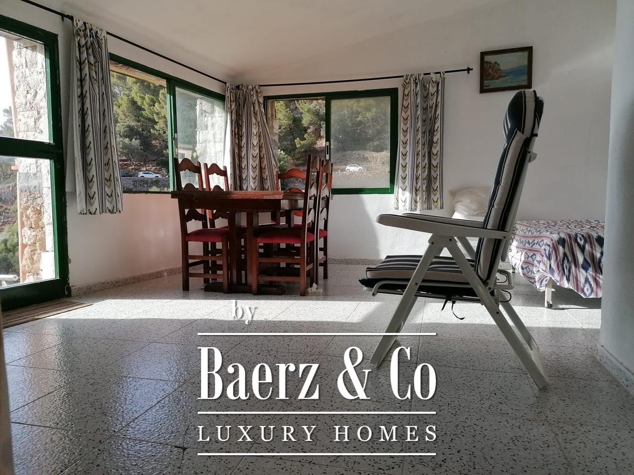 Het huis beschikt over twee slaapkamers en één badkamer, met originele materialen die de tijdloze geest van de regio uitdragen. Een kelder, momenteel als opslagruimte in gebruik, vormt de solide basis, terwijl de twee bovenverdiepingen zich openen naar de hoofdwoonruimtes. Buiten geven traditionele terrassen uitzicht op de omliggende natuur en het kleine baaitje beneden. Een safareig, typisch voor het Mallorcaanse platteland, kan worden getransformeerd tot een zwembad voor modern comfort. Buiten is parkeergelegenheid voor meerdere auto’s, een zeldzaamheid in deze exclusieve omgeving.