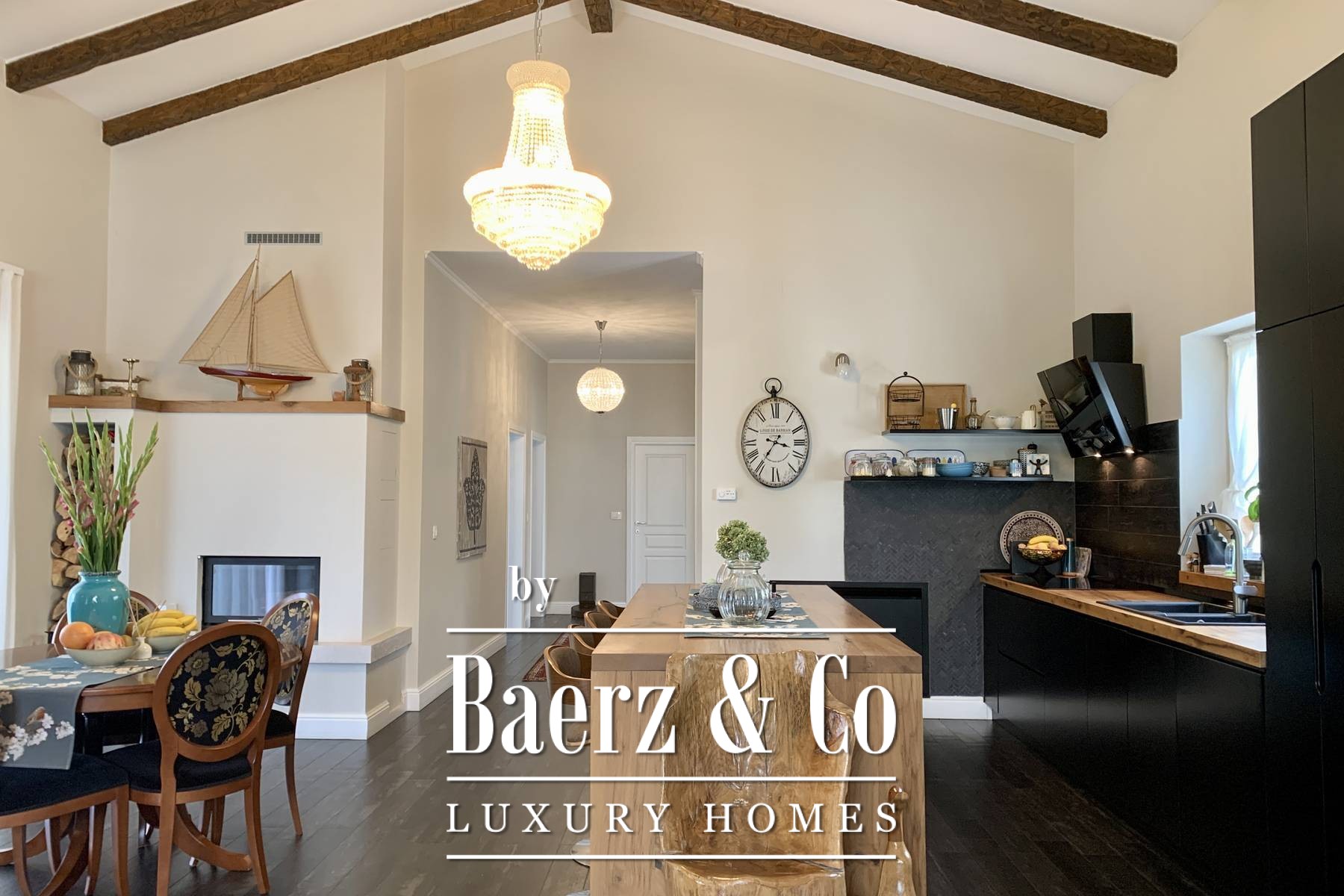 Villa Grožnjan met panoramisch uitzicht over Istrië biedt een uniek perspectief op het Kroatische platteland, op korte afstand van Motovun, de kust bij Novigrad en internationale verbindingen via Triëst, Venetië en Zagreb. De villa beschikt over 200 m² woonoppervlakte, gelegen op een volledig aangelegd perceel van 2.441 m². Verdeling tussen een hoofdwoning en een zelfstandige taverne zorgt voor vier slaapkamers en vier badkamers, een harmonieuze balans tussen samenzijn en privacy.