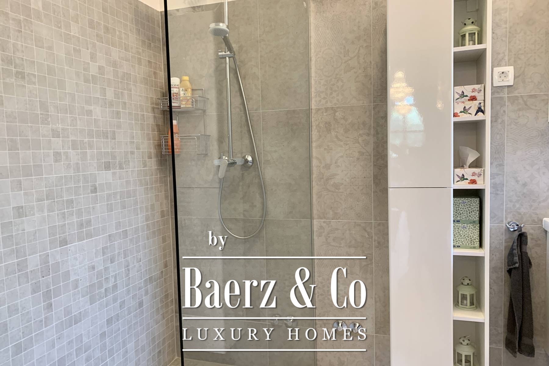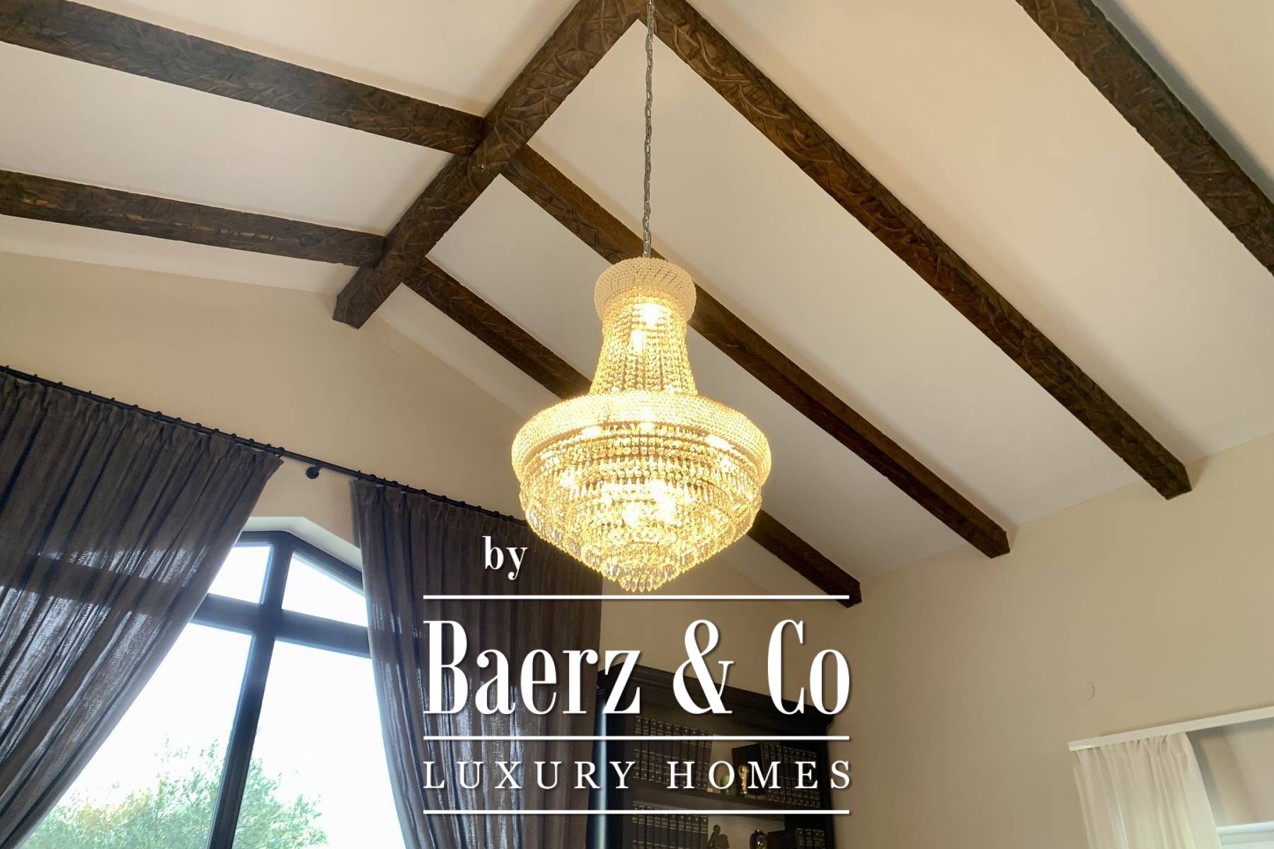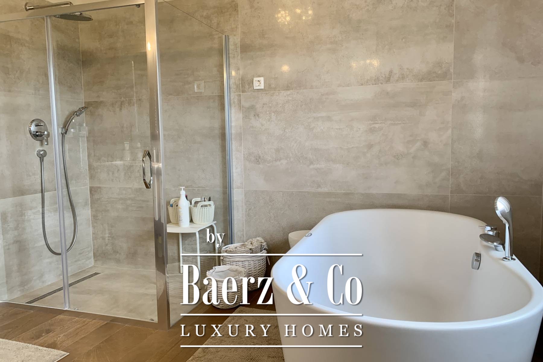 Handgehouwen stenen trappen—in watervaltraditie met onzichtbare voeg—voeren naar de mastersuite. Hier biedt de open badkamer een regendouche en een vrijstaand bad, vergezeld door een inloopkast. Materialen getuigen overal van kwaliteit: Italiaans designkeramiek, driedubbel glas en lokaal hout en natuursteen zorgen voor authenticiteit en duurzaam comfort. Geavanceerde connectiviteit is discreet geïntegreerd, met UTP-bekabeling en multimedia-aansluitingen in elke kamer.