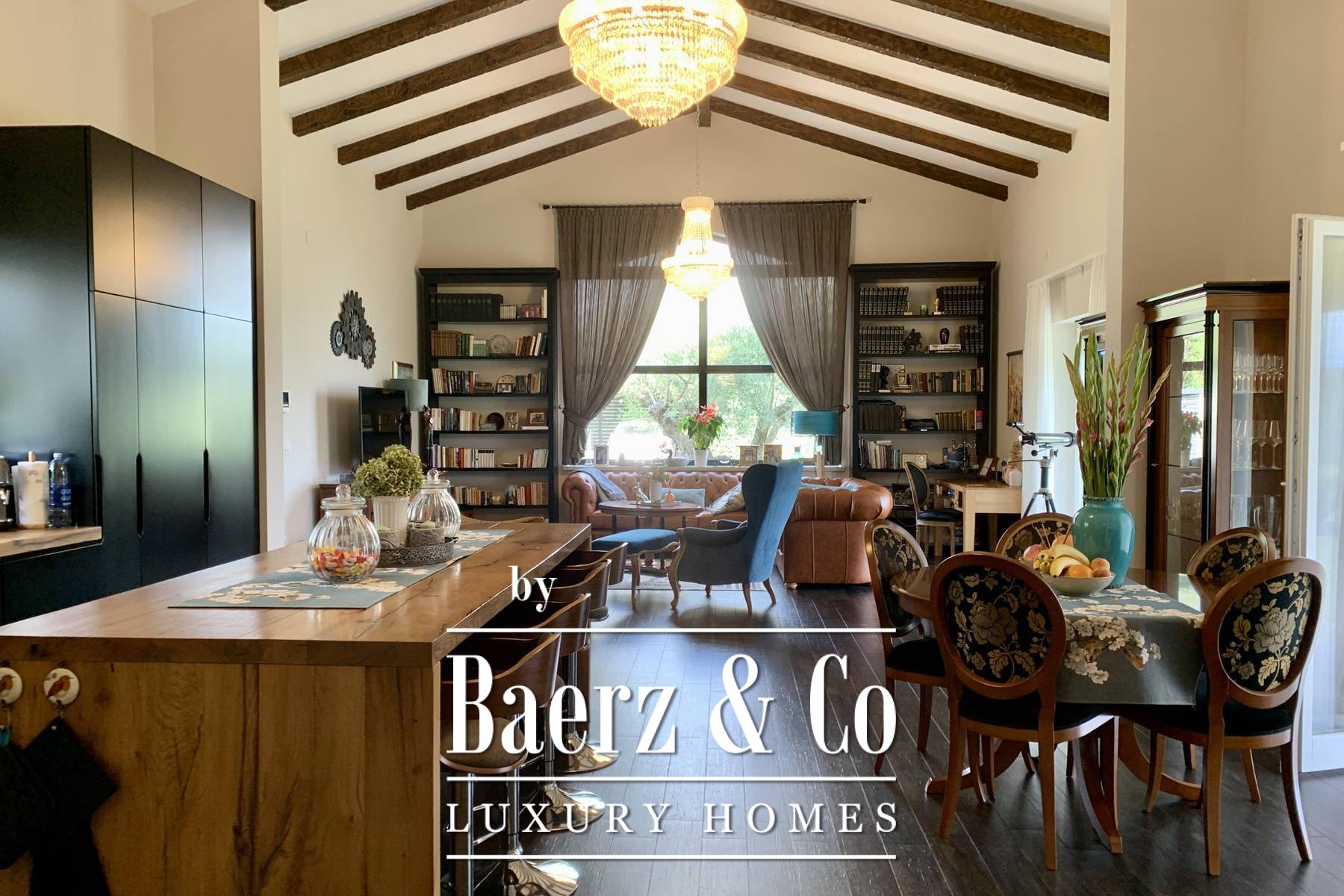 De taverne is een zelfstandige retreat voorzien van keuken, slaapkamer en sfeervolle haard, met toegang tot een overdekt terras voor diners in de buitenlucht. Buiten verwarmt een seizoensgebonden zwembad door middel van zonnecollectoren, worden gazons omlijst door eeuwenoude olijfbomen en biedt de carport ruimte aan vier auto's.