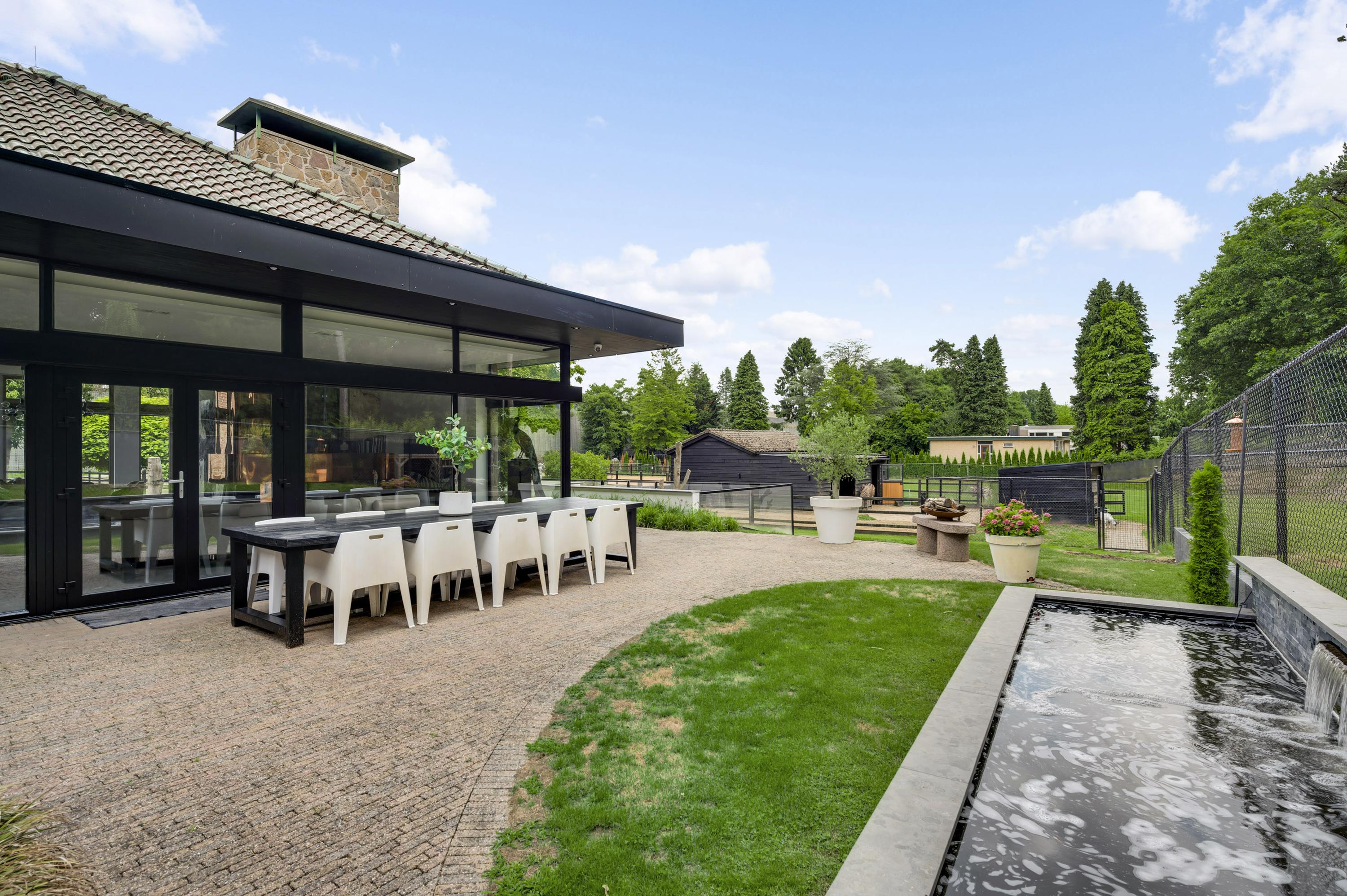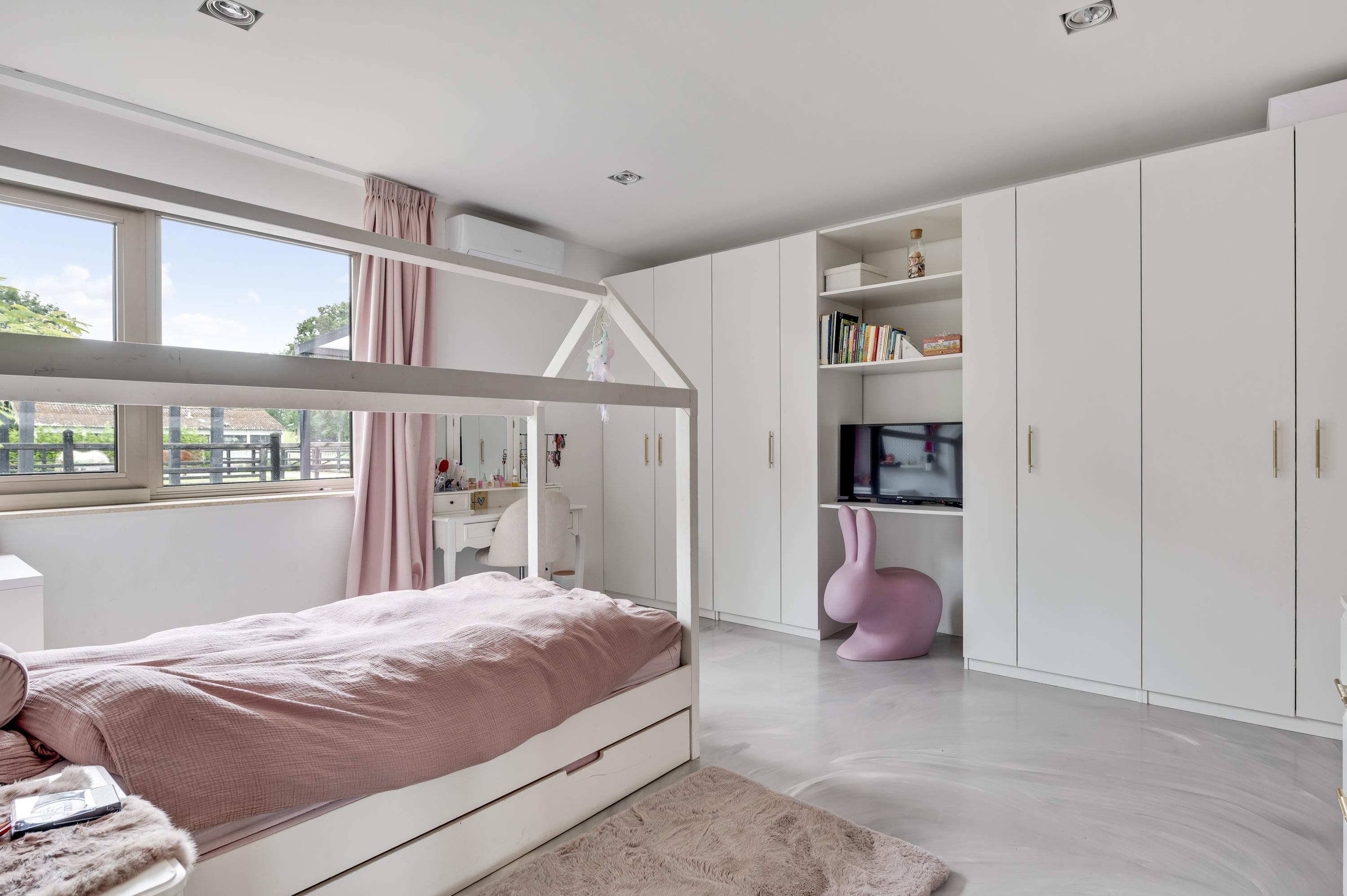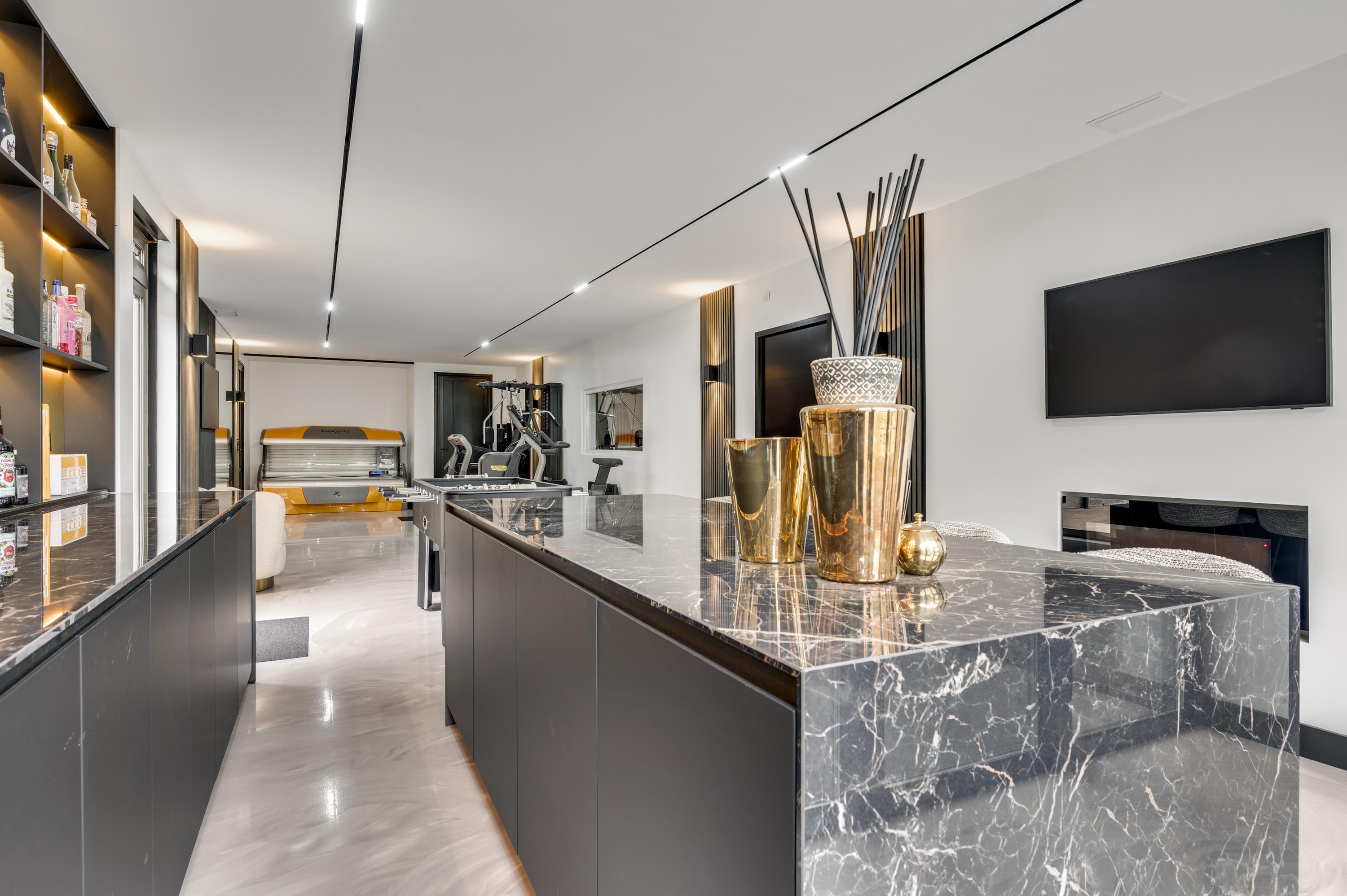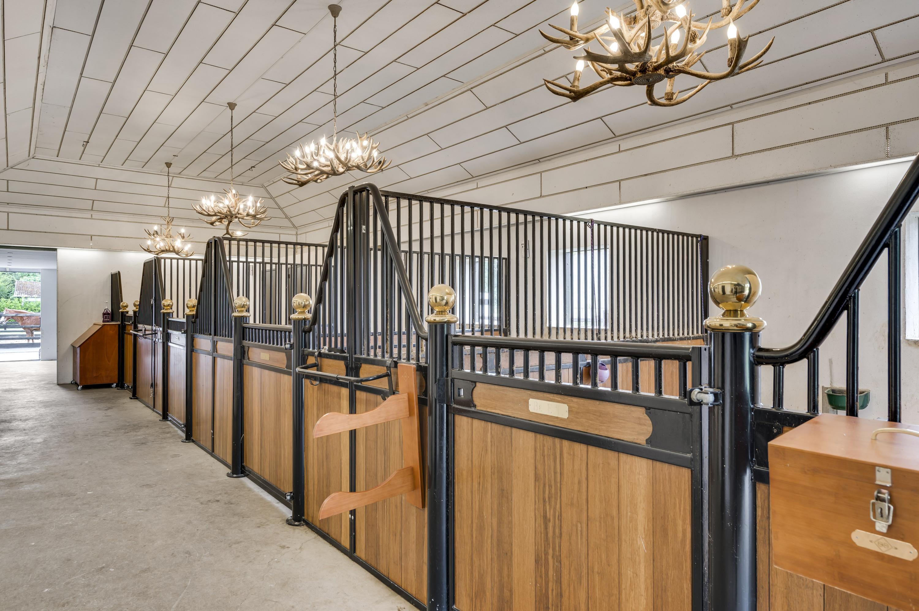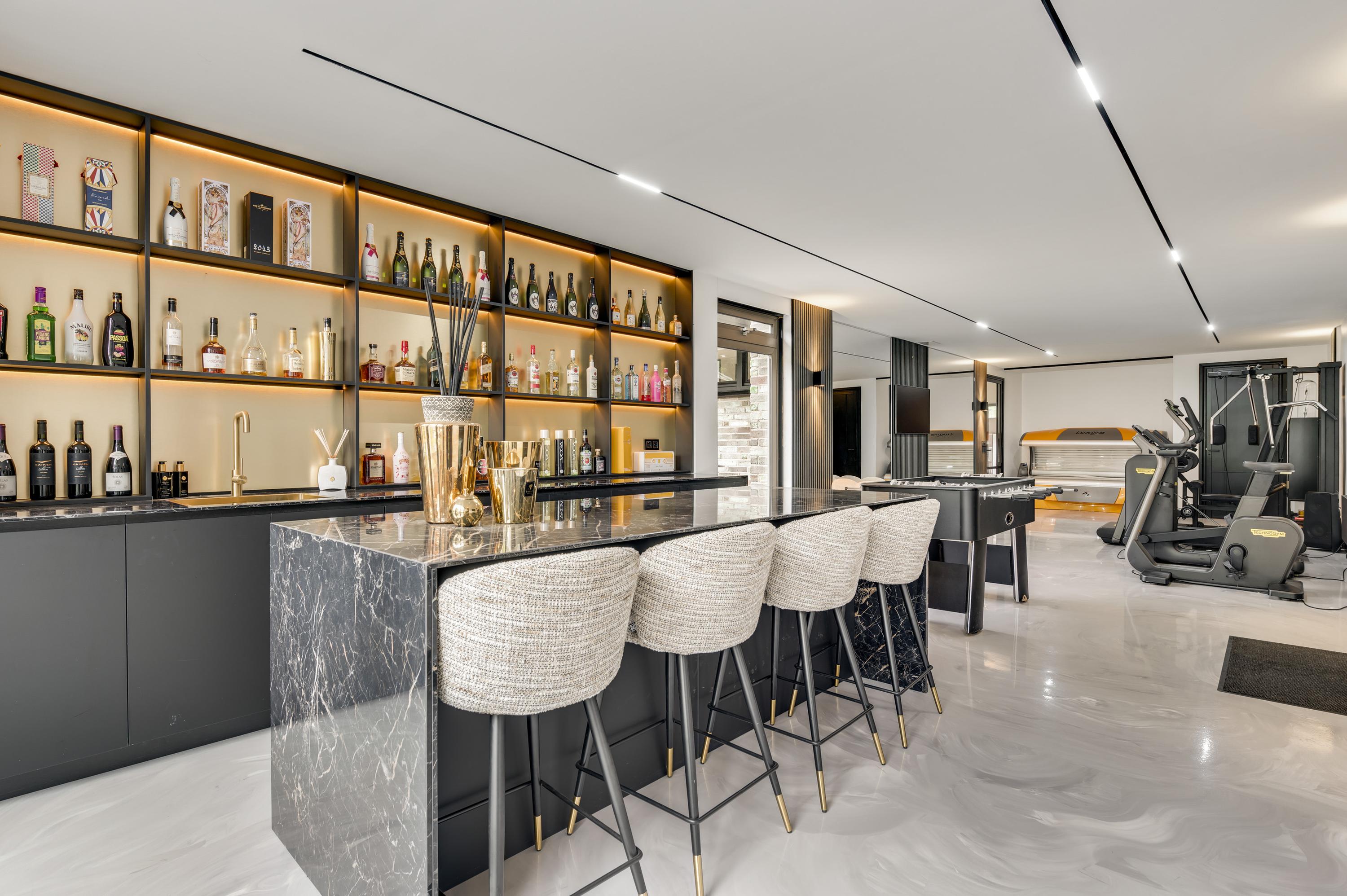 Uniek aan deze woning is de loungebar met sportruimte, die direct toegang heeft tot de tuin en tot de paardenstallen. Niet-ruiters kunnen deze ruimte eenvoudig transformeren tot wellnessruimte, binnenzwembad of atelier.