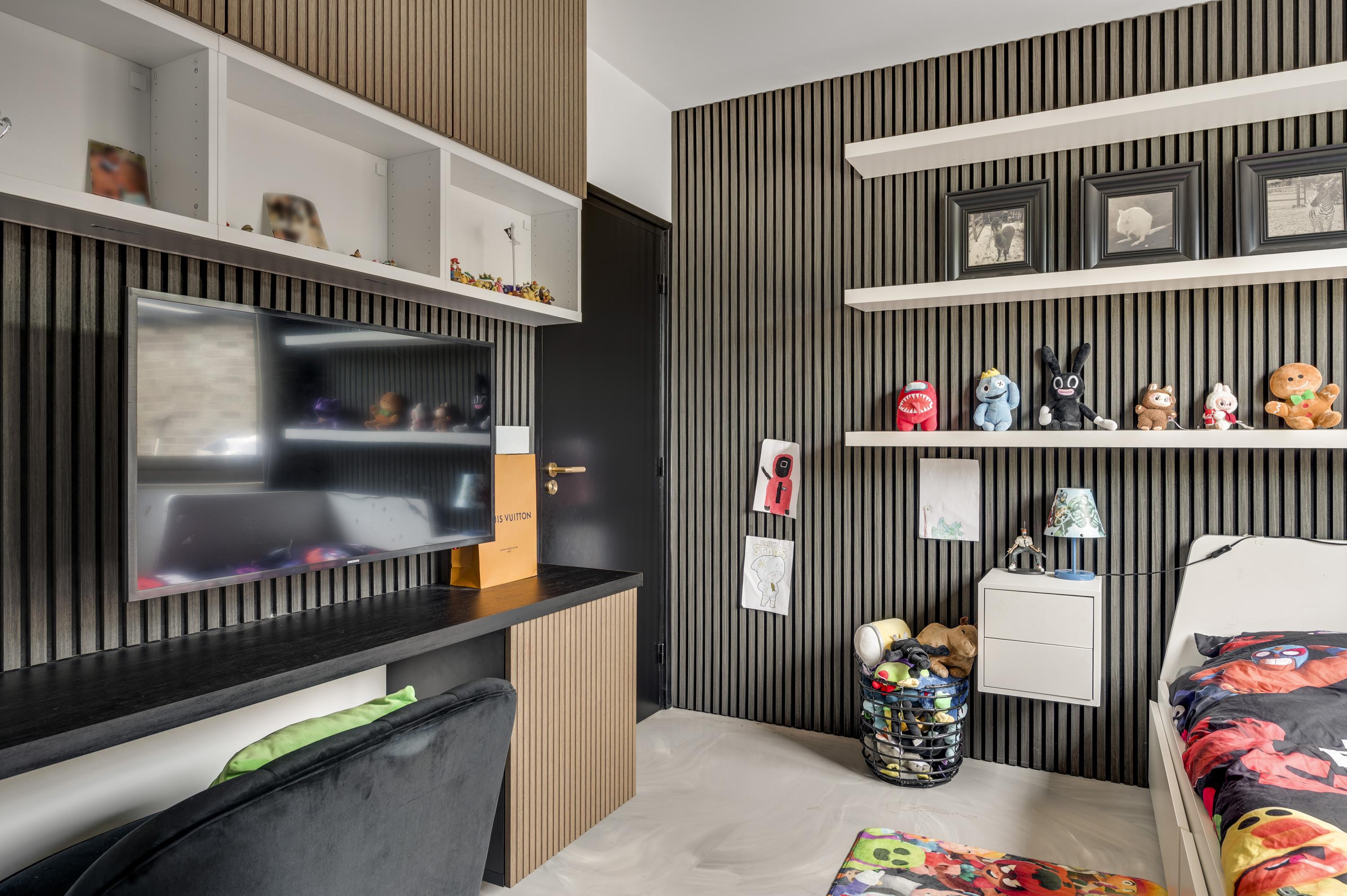 De zuidvleugel van de woning herbergt een riante living met grote raampartijen en een sfeervolle open haard. De moderne open keuken (2020) vormt het hart van deze vleugel, compleet met hoogwaardige inbouwapparatuur. Aangrenzend vindt u een multifunctionele kamer, ideaal als thuiswerkplek, speelkamer of bibliotheek.