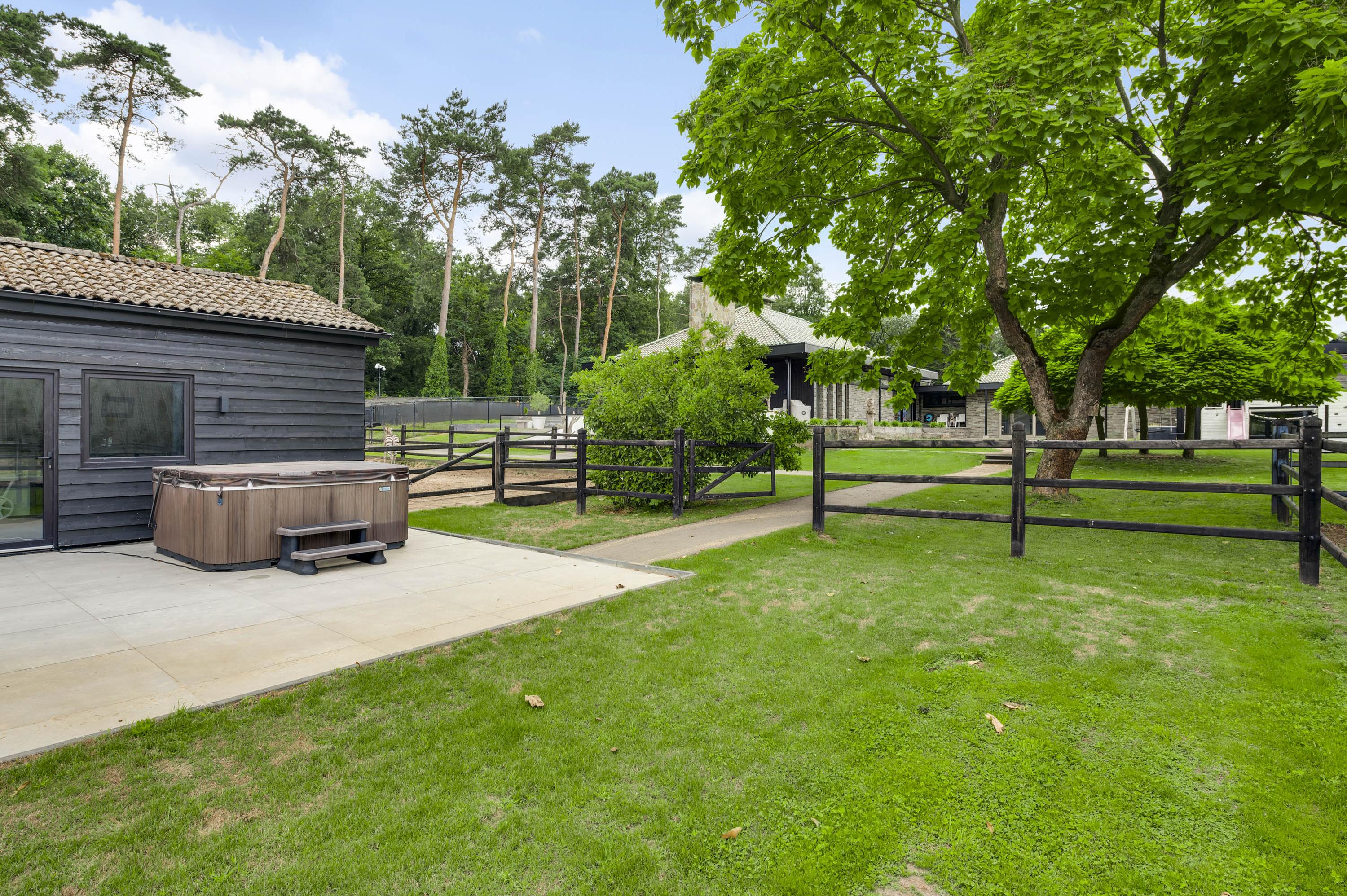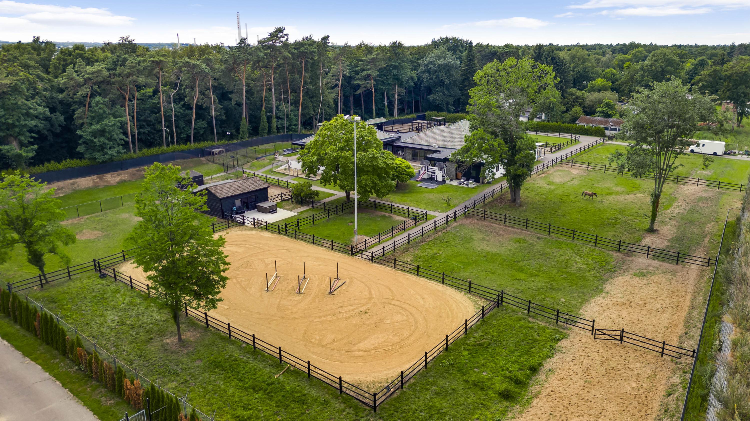 In de fraai aangelegde tuin vindt u een charmant gastenverblijf, compleet met keuken, toilet en dubbele doucheruimte, perfect voor logés, au-pair of mantelzorg. Naast de verlichte rijbak, dierenverblijven en buitenstal ademt het terrein vrijheid, natuur en privacy. Dit is buitenleven op topniveau.