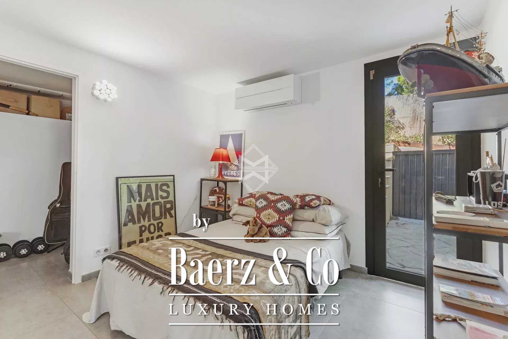 De villa telt drie slaapkamers die zijn ontworpen voor comfort en privacy binnen het gezin, en een badkamer die aansluit op het rustige tempo van het mediterrane leven. Buiten waarborgt een aangelegde tuin van 1.220 m² privacy en een gevoel van rust, met volwassen beplanting en beschutte hoeken die uitnodigen tot ontspanning. Villa Hyères biedt toegang tot Port des Barques en de zeldzame mogelijkheid om direct voor het huis een ligplaats voor uw boot te verwerven. Airconditioning, dubbel glas, elektrische rolluiken en glasvezelverbinding dragen bij aan een eigentijdse en moeiteloze levensstijl.