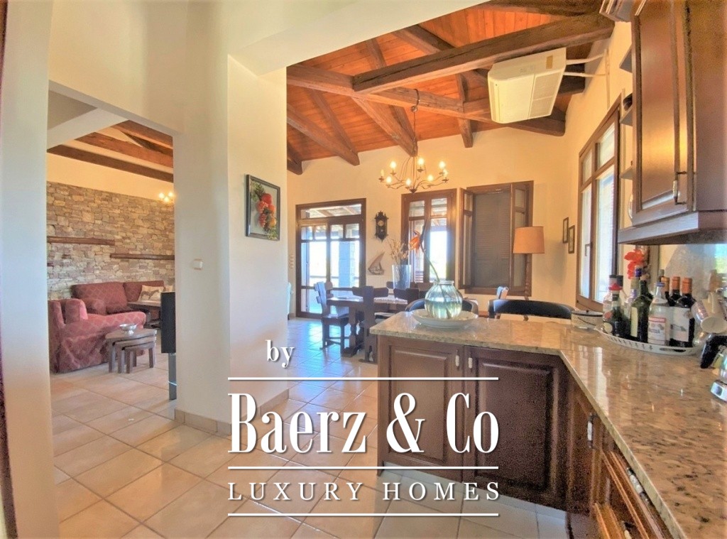 Het lagere niveau van het huis bestaat uit twee zelfstandige appartementen, elk met een open woon- en keukengedeelte, eigen slaapkamer en badkamer. Dubbel glas, autonome verwarming op vloeibaar gas en airconditioning garanderen comfort het hele jaar door. Natuurstenen accenten, fraai aangelegde tuinen en een zwembad met overdekte zithoek maken deze plek geschikt voor zowel privacy als ontspannen samenkomsten. Alarminstallaties en doordachte constructie zorgen voor extra gemoedsrust. Country house Kalamaki is ontworpen voor wie een permanente woonplaats of een tijdloos vakantieverblijf zoekt, omringd door natuurlijke schoonheid en de voorzieningen van de regio.