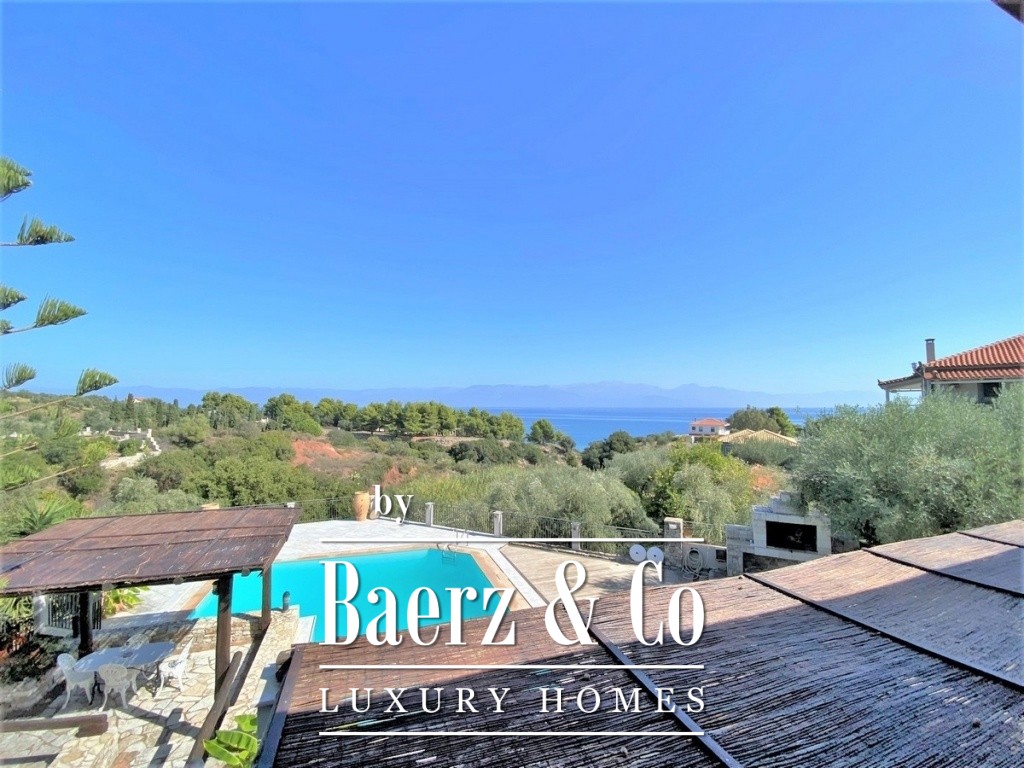 Country house Kalamaki biedt een zeldzame kans op verfijnd wonen op slechts 200 meter van de kustlijn. Deze residentie van 320 m², verdeeld over twee discrete niveaus op een perceel van 2.000 m², vormt een sereen toevluchtsoord op een toplocatie aan de Griekse kust. De hoofdwoning is toegankelijk via een geplaveide binnenplaats, omgeven door gazons en sierbomen, en beschikt over een open leefruimte met geïntegreerde keuken en lounge die uitkomt op een ruim terras met panoramisch zeezicht. Licht en ruimte bepalen het interieur, met daarnaast twee rustige slaapkamers, een badkamer en een gastentoilet.