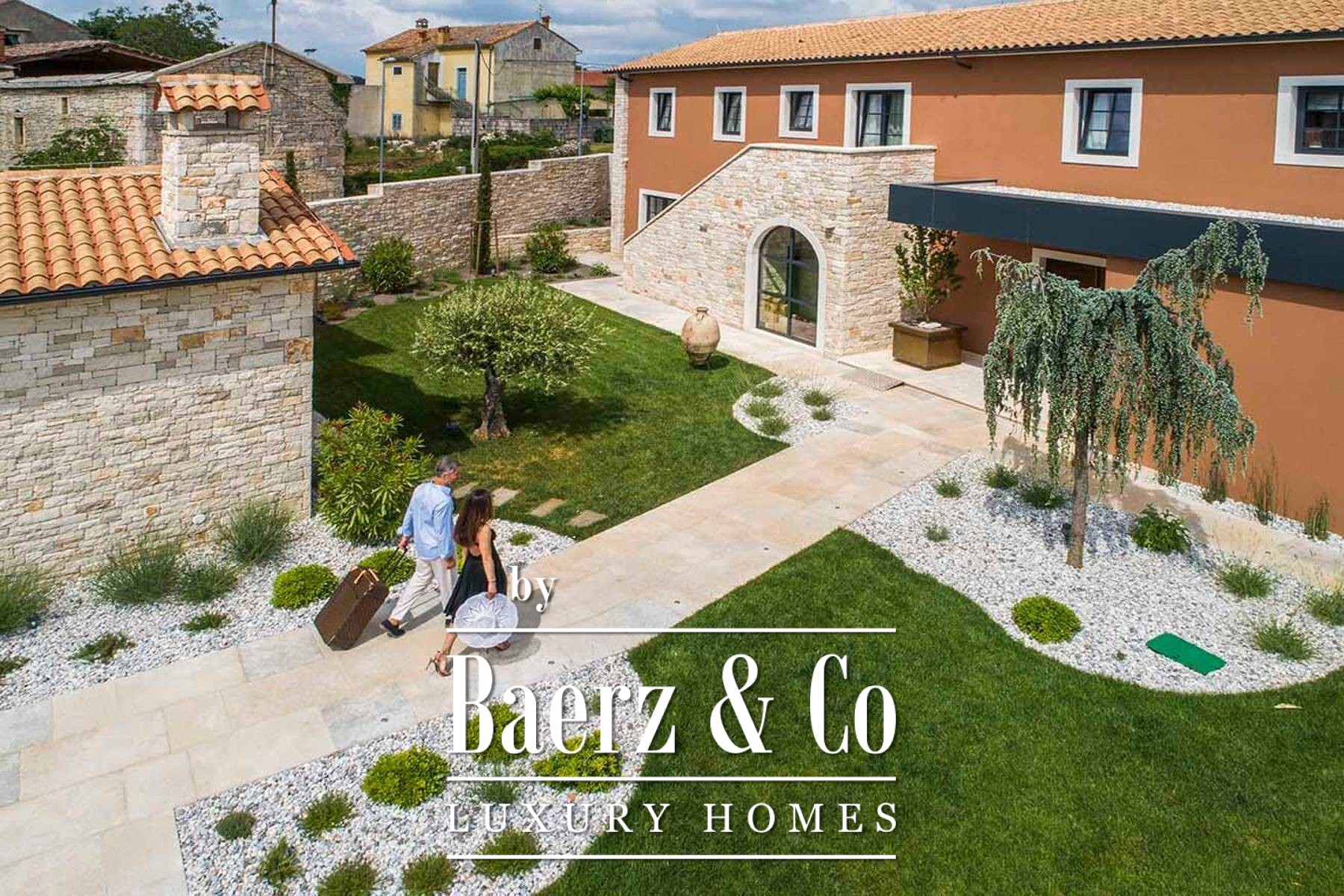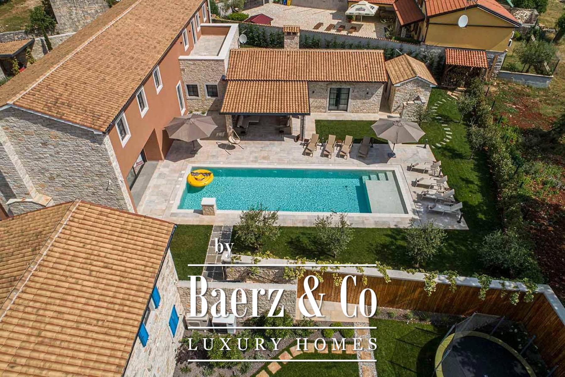 Villa Kanfanar Kroatië presenteert een zeldzame collectie van natuurstenen villa’s met een totaaloppervlakte van 1.561 m², gelegen op een rustige kavel van 2.930 m² te midden van het ongerepte Istrische landschap. Op vijftien minuten rijden biedt het Limkanaal uitzicht op zee en befaamde oesters, terwijl het landgoed volledige privacy geniet, omlijst door 2.000 m² aan traditionele droge steenmuur en het harmonieuze ritme van groene heuvels en volwassen beplanting.