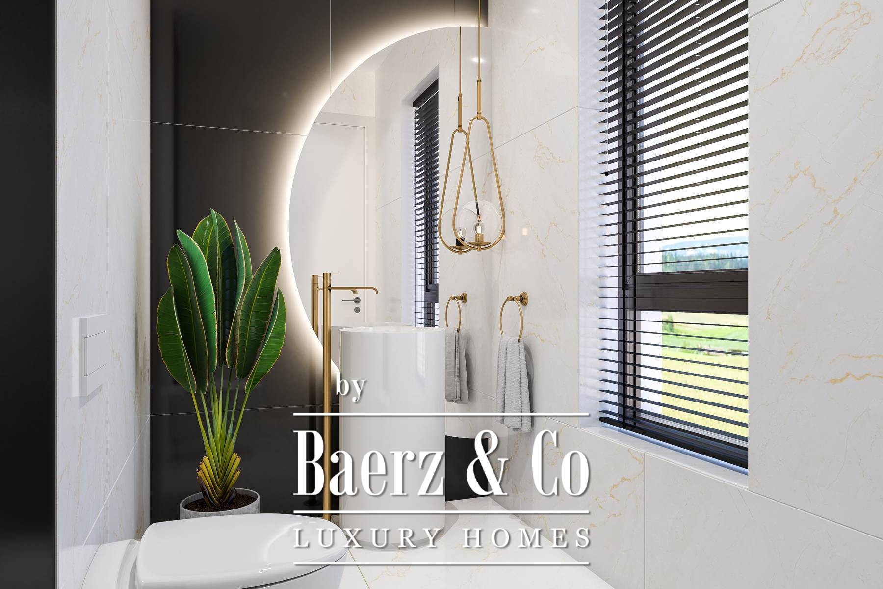 De voorzieningen omvatten een Finse sauna, jacuzzi, verwarmd infinity-zwembad en vuurplaats. Buitenleven kenmerkt zich door een terras met glazen rand rondom het zwembad, een geïntegreerde grill en een aangelegde, veilige tuin met automatische beregening en een laadpaal voor elektrische voertuigen. De villa beschikt over geavanceerde verwarming en koeling, zonne-energie, slimme toegang, beveiligingssystemen en hoogwaardige afwerking in alle ruimtes. Er zijn vier privéparkeerplaatsen. Tijdens de bouwfase kan de koper maatwerkopties aanvragen, waardoor deze villa te koop in Kaštelir-Labinci volledig persoonlijk en afgestemd is op een internationale levensstijl.