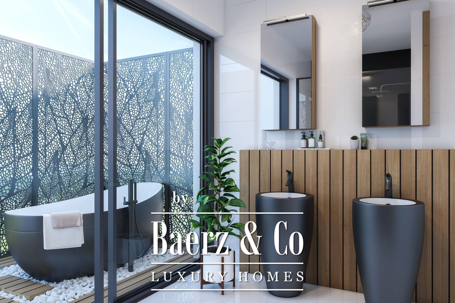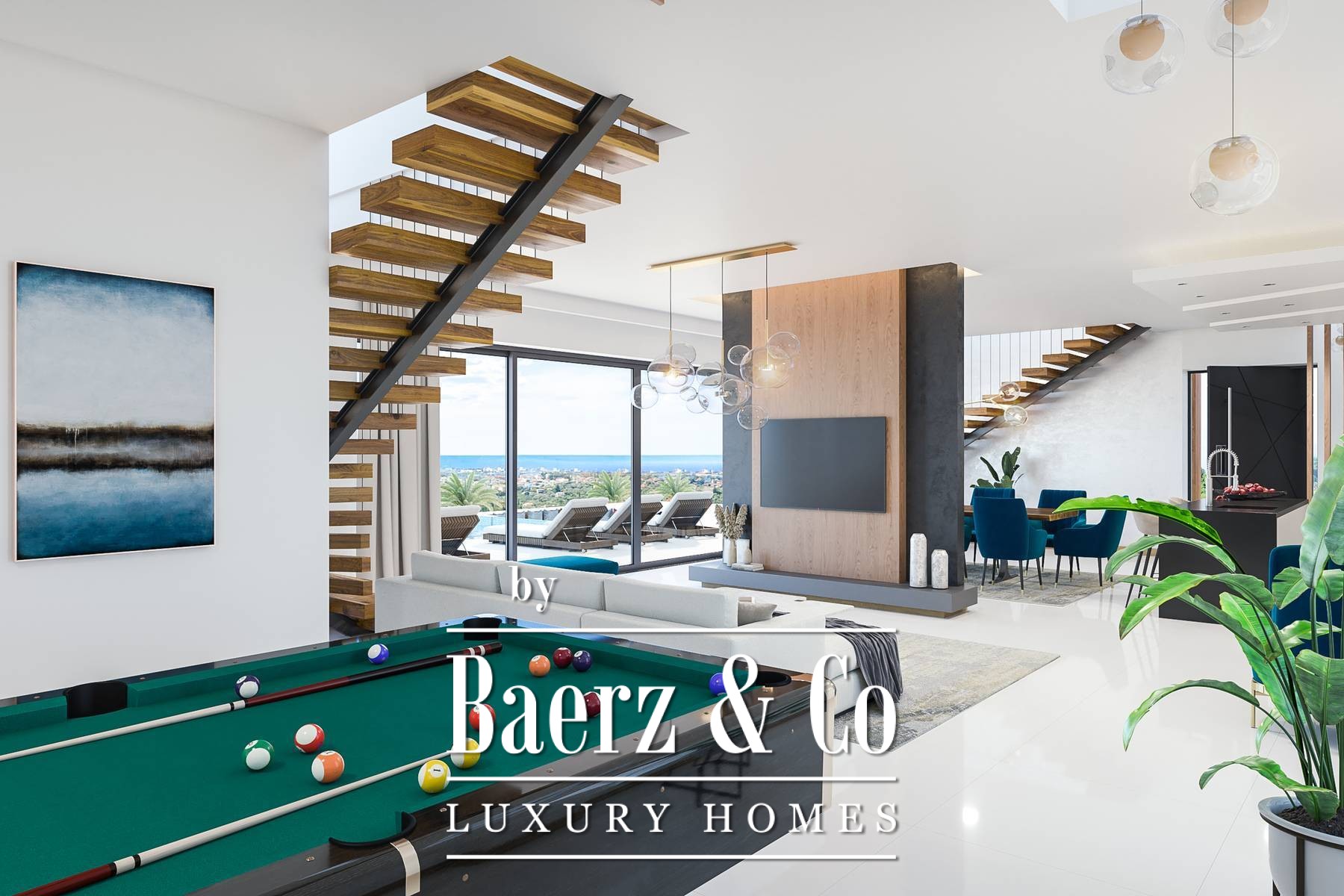 Twee badkamers grenzen aan royale balkons met luxe vrijstaande baden, waar dagelijkse rituelen zich afspelen te midden van volledige beschutting en een adembenemend uitzicht. De begane grond combineert een open indeling met lounge, eetruimte, keuken en biljartkamer, die vlekkeloos overgaat in de terrassen en het infinity zwembad. Het zwembad wordt verwarmd met een warmtepomp en is voorzien van een glazen afwerking voor spectaculaire vergezichten, terwijl het pooldeck uitgerust is met een vuurplaats en ingebouwde buitenbarbecue.