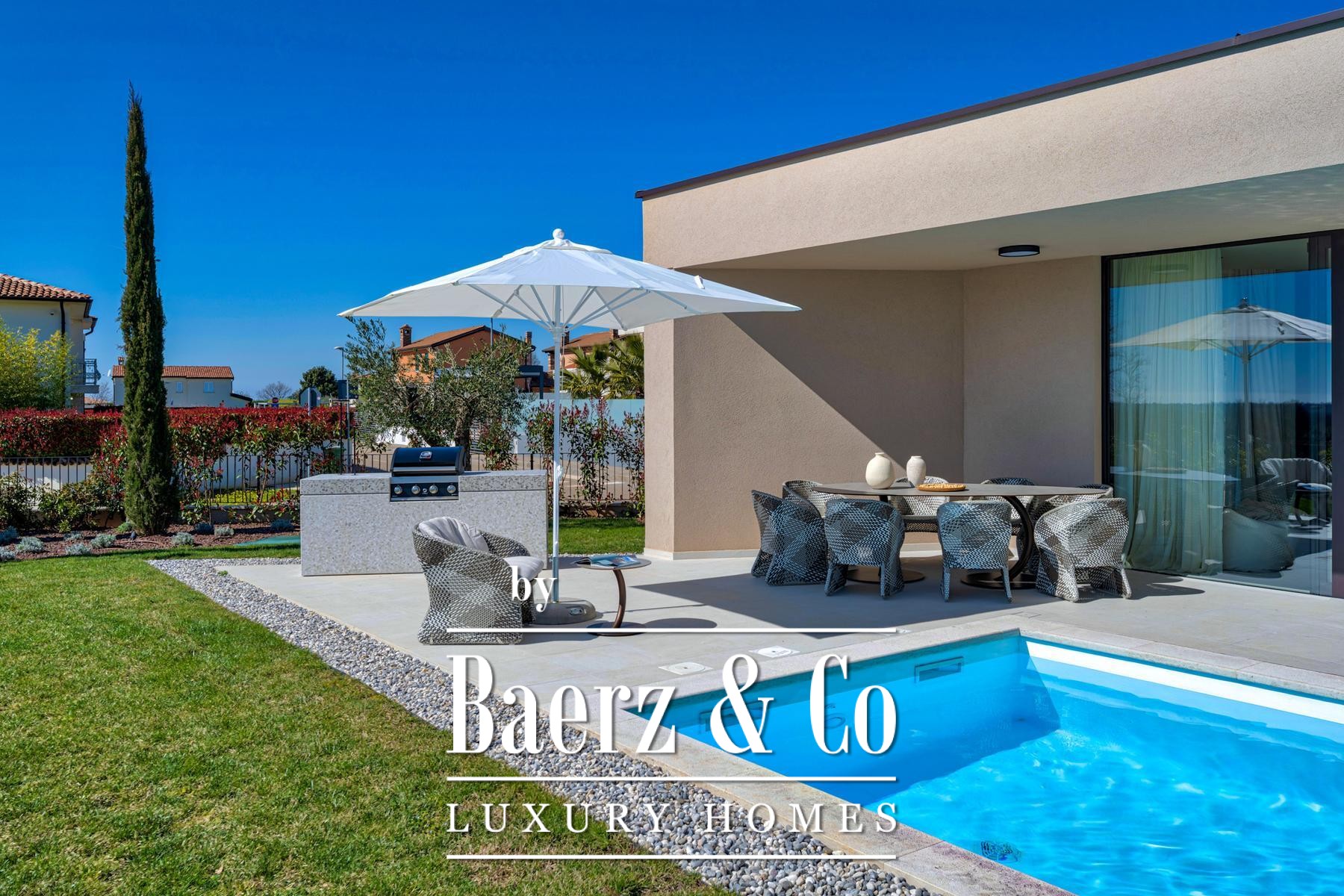 Dit townhouse in Kaštelir-Labinci is gebouwd met hoogwaardige materialen en ingericht met gerenommeerde merken. Hier wordt moderniteit aan duurzame kwaliteit gekoppeld en ontstaat een sfeer van verfijnde ontspanning.