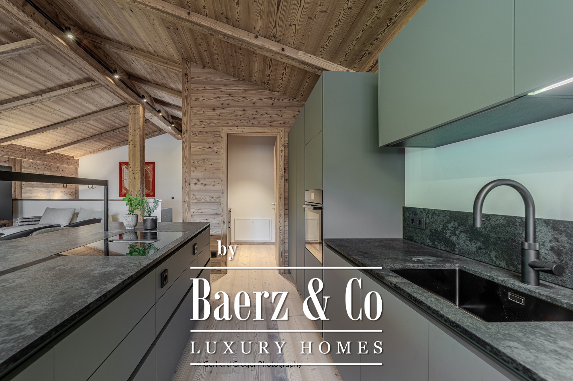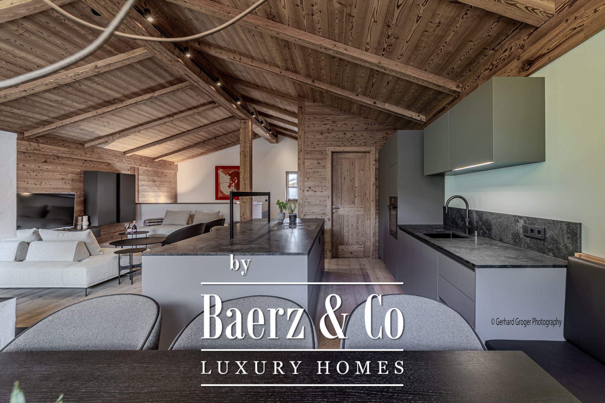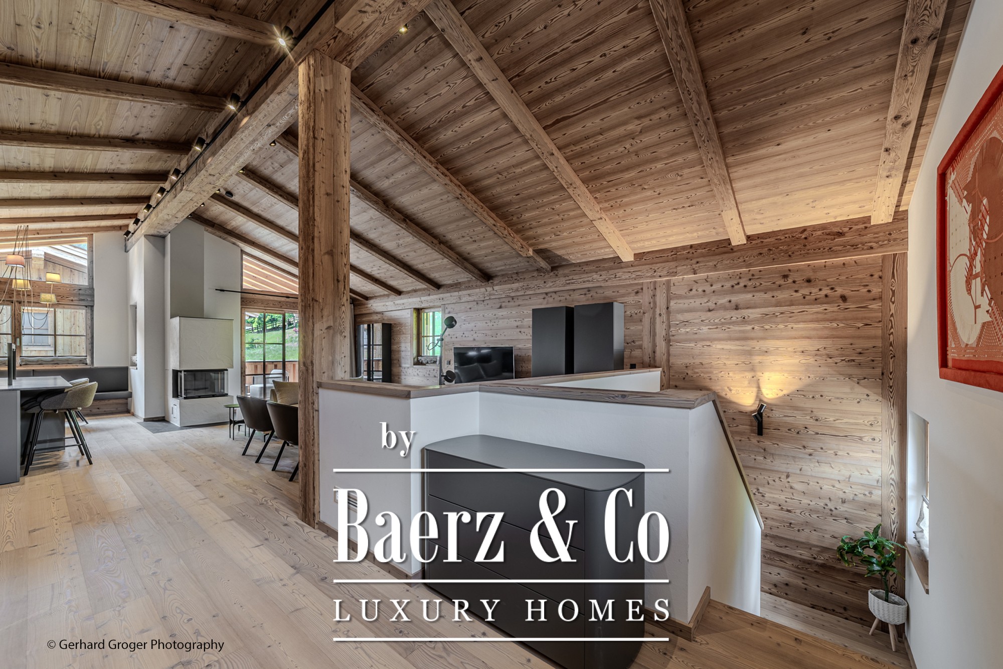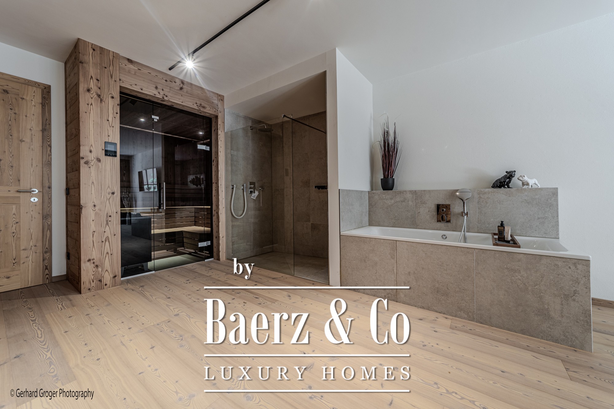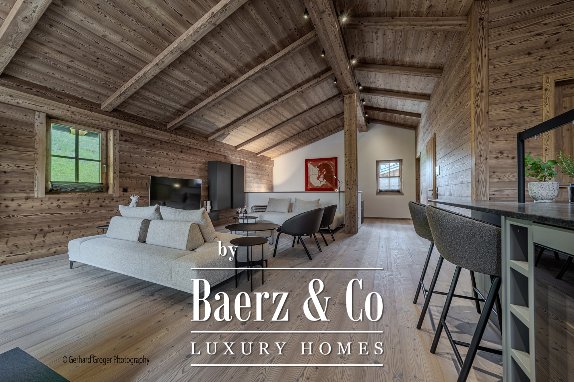 Het interieur combineert hoogwaardige lariksvloeren met keramische tegels, vloerverwarming en een luxe ingerichte keuken. Doordachte voorzieningen als een lift, gecontroleerde ventilatie, een BUS-systeem, ondergrondse parkeergarage en ruime berging maken het dagelijks wonen bijzonder aangenaam. De ligging op loopafstand van het centrum van Kirchberg en het KitzSki-gebied verenigt de levendigheid van het dorpsleven met de rust van het berglandschap.