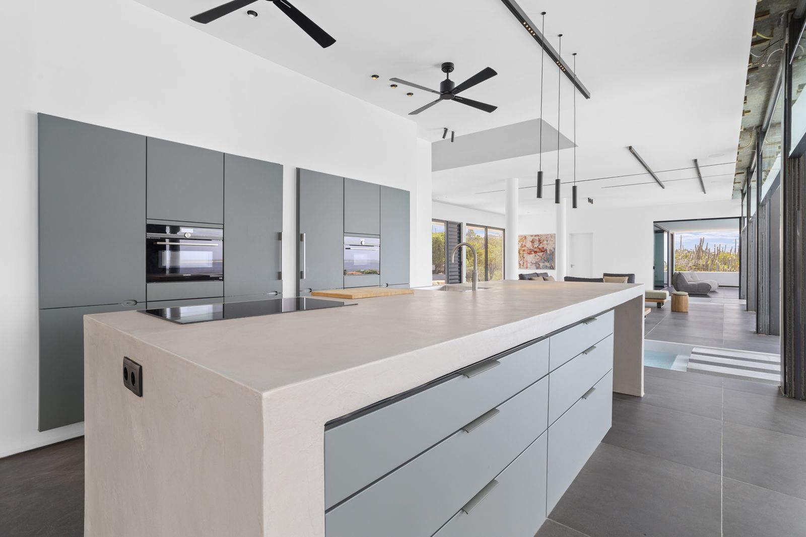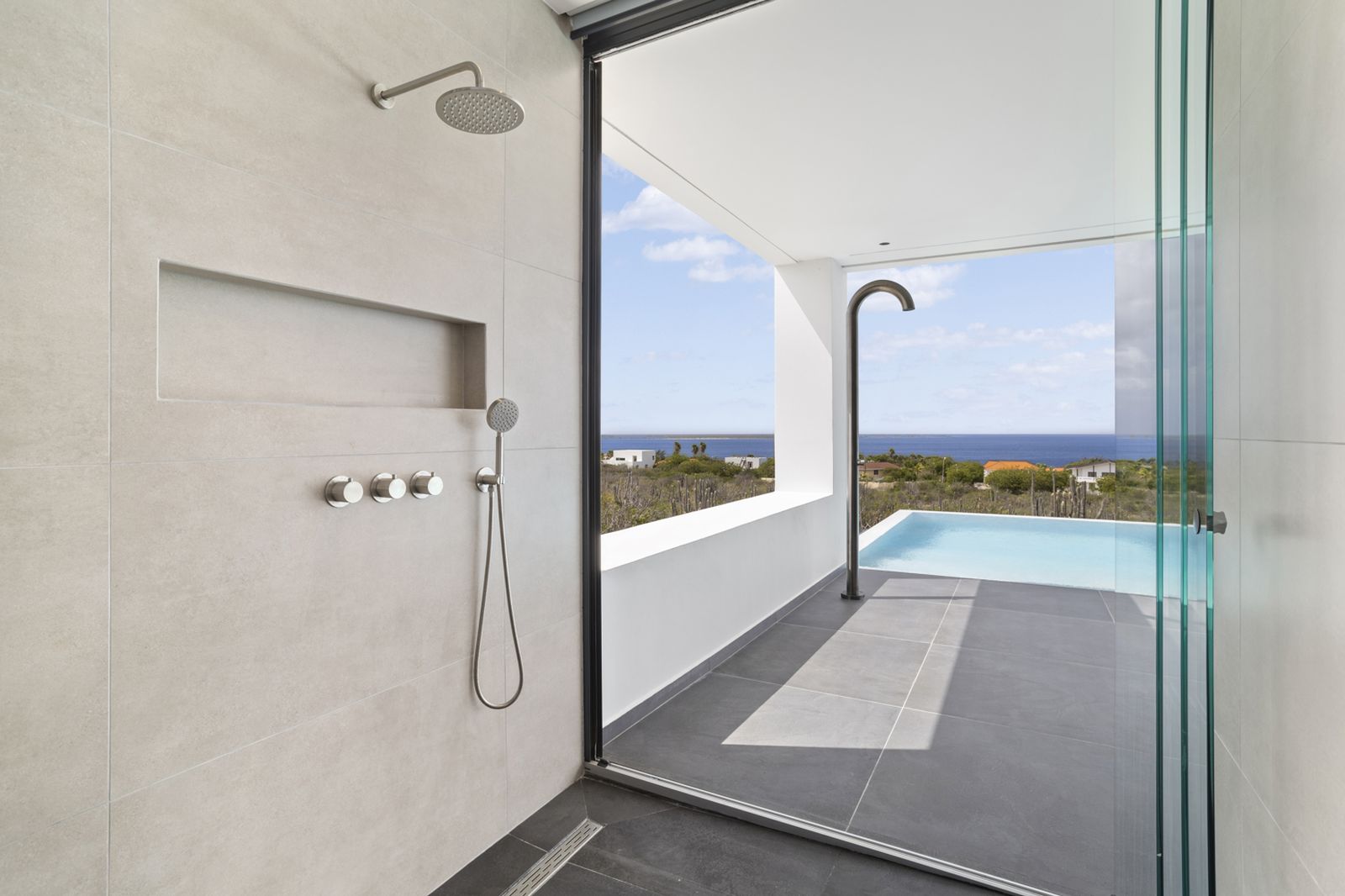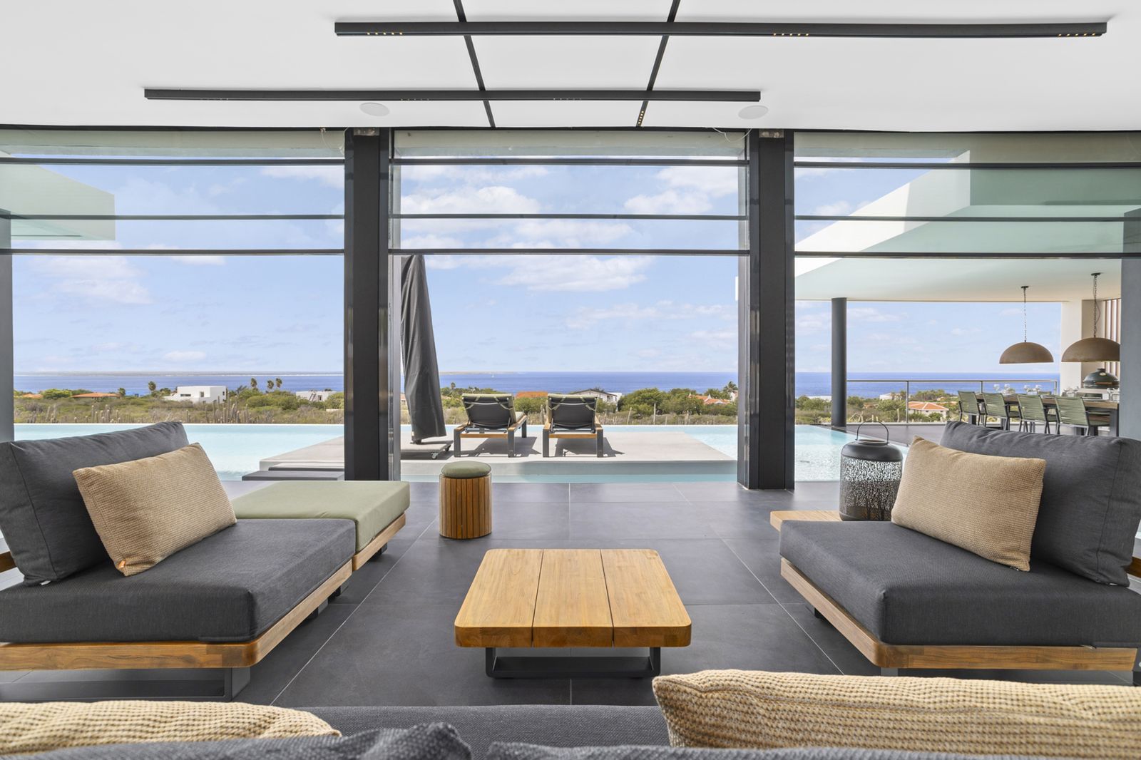 Zodra je binnenstapt door de grote glazen voordeur word je verwelkomd door een panoramisch uitzicht—van Bopec in het noorden tot aan de Zoutbergen in het zuiden. Dankzij de grote raampartijen geniet je overal in huis van licht, lucht en ruimte.