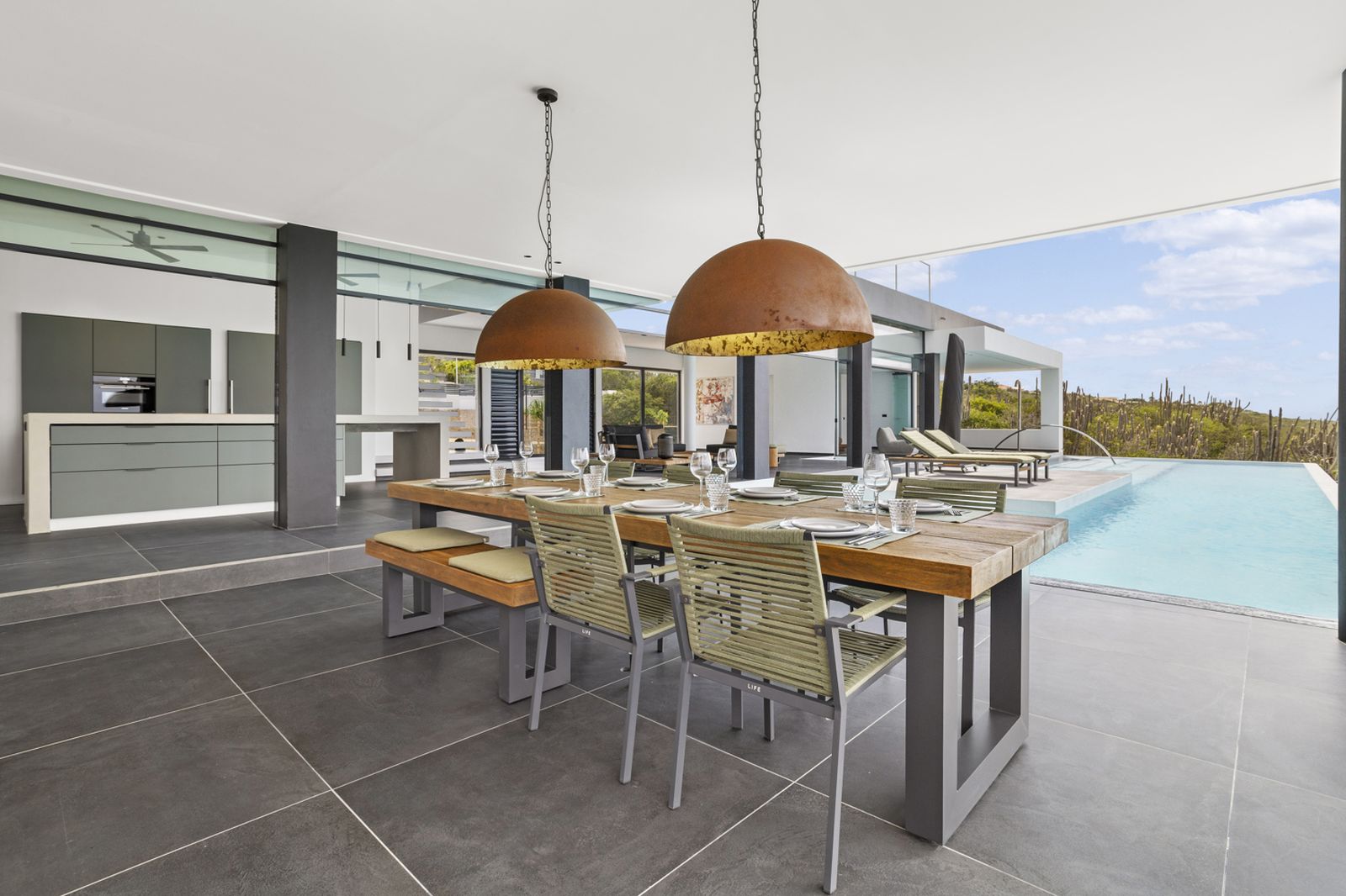 Wat deze villa echt uniek maakt, is het zwembad. Bijna 19 meter lang met een indrukwekkende oppervlakte van 116m². Dit is misschien wel het grootste privé zwembad op Bonaire! Perfect voor baantjes trekken of gewoon lekker ontspannen met uitzicht op de oceaan. Het is de ideale plek om te genieten van de zon, het uitzicht en de ultieme luxe van dit prachtige domein.