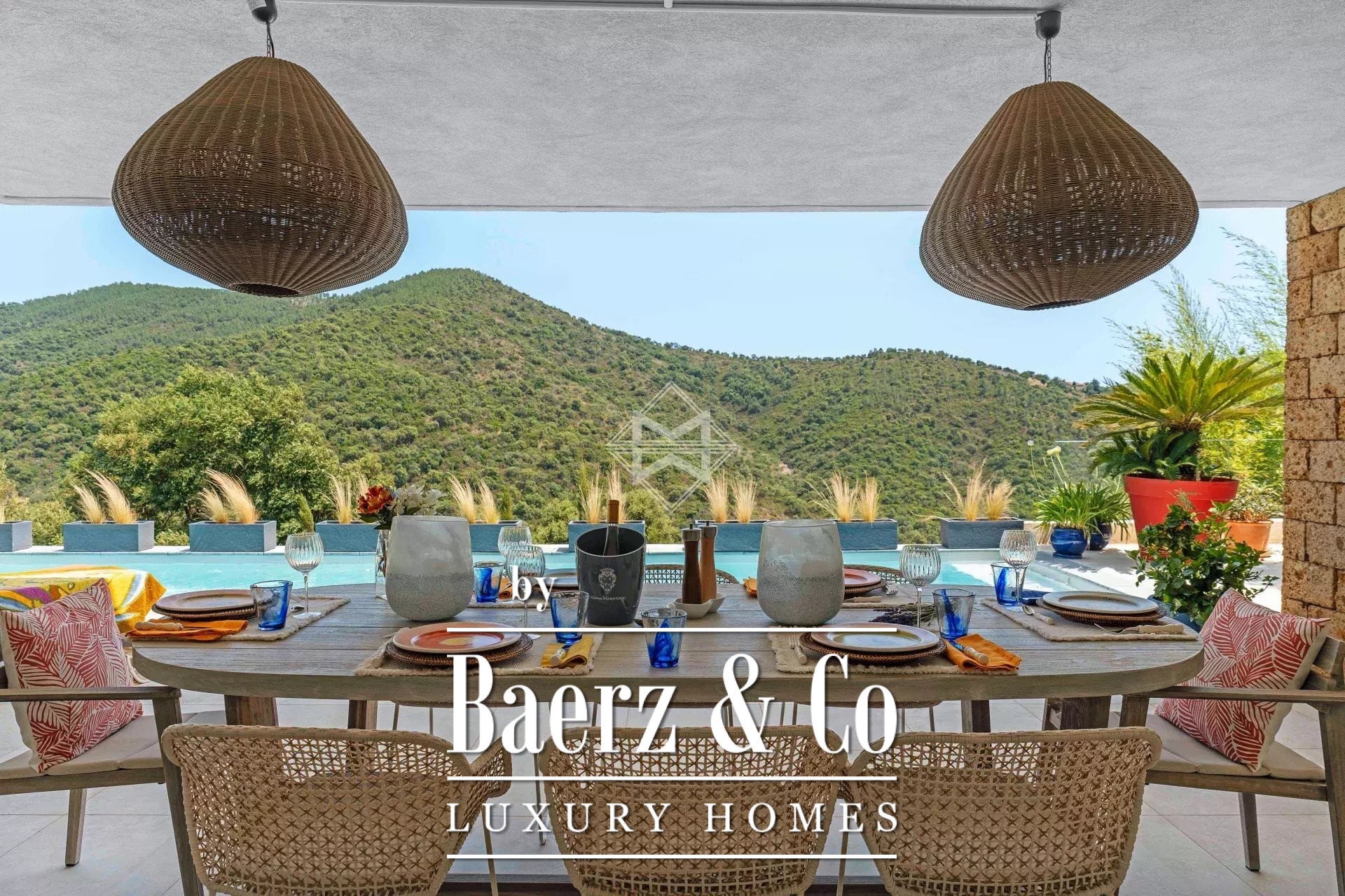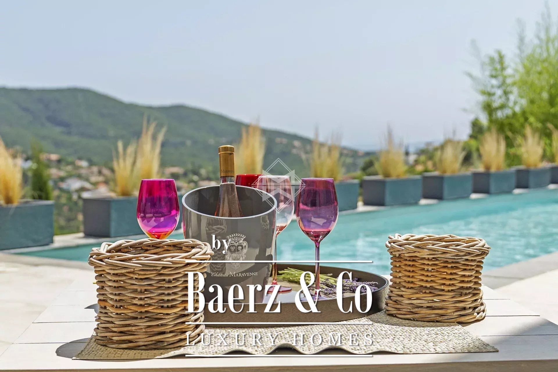 Villa La Londe-les-Maures bevindt zich tussen de fairways en de Middellandse Zee en biedt een eigentijdse architectuurbeleving binnen een besloten domein. Bij binnenkomst in de 183 m² grote residentie bepalen licht en ruimte direct de toon, met een living die naadloos overgaat in een keuken die uitnodigt tot samenkomen én tot rust. Vier slaapkamers met eigen badkamer, een kantoor en riante terrassen openen naar een Bali-geïnspireerd zwembad tegen een achtergrond van zee, heuvels en bos.