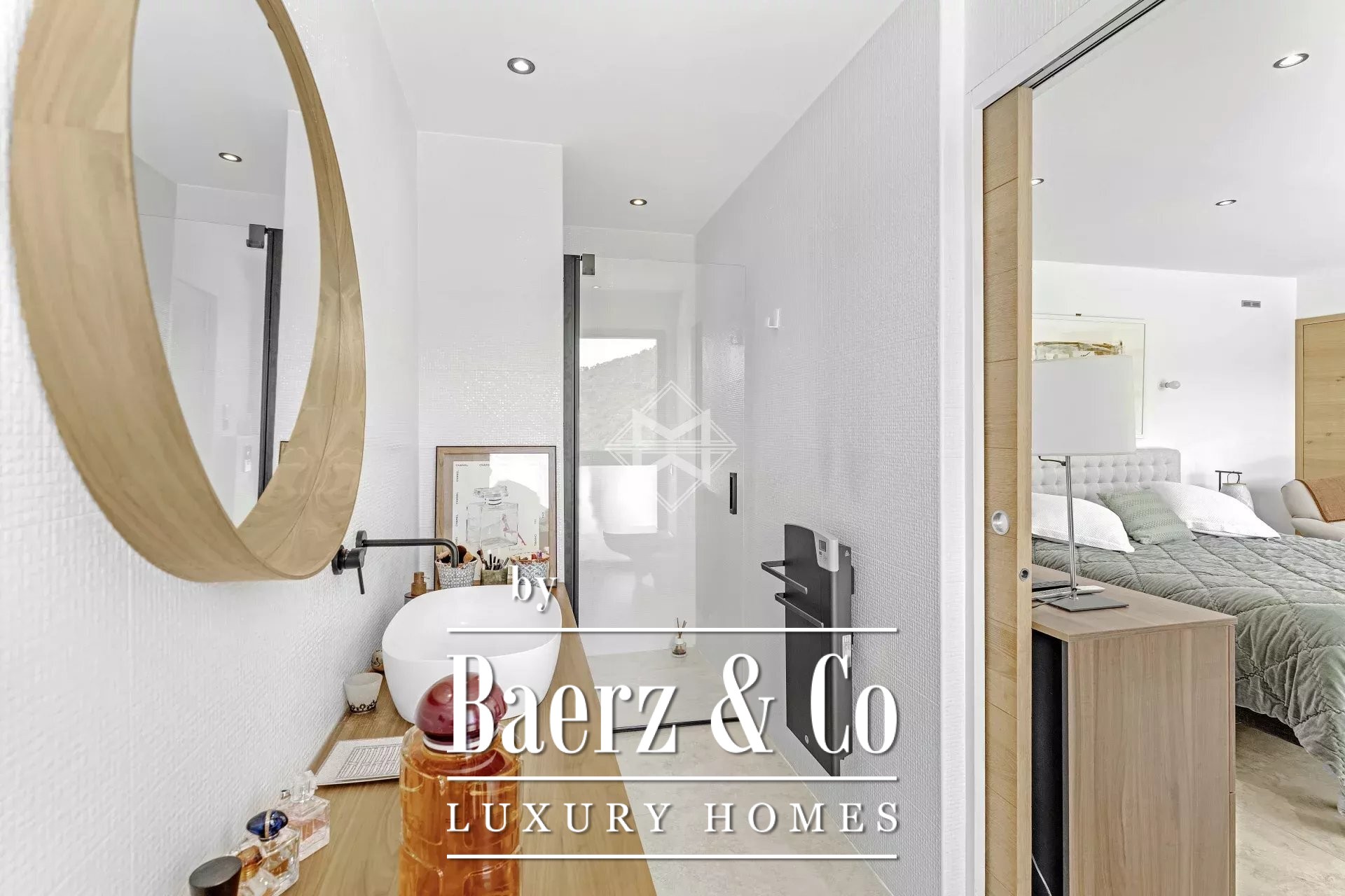 Buiten bent u verzekerd van privacy dankzij beschutte plekken, een poolhouse en een dakterras dat naar wens te transformeren is tot lounge, tuin of panoramische jacuzzi. Het fraai aangelegde perceel van 1.120 m² omlijst het dagelijks leven, met ruimte voor ontspanning en recreatie, terwijl een dubbele garage zorgt voor extra veiligheid en discretie.