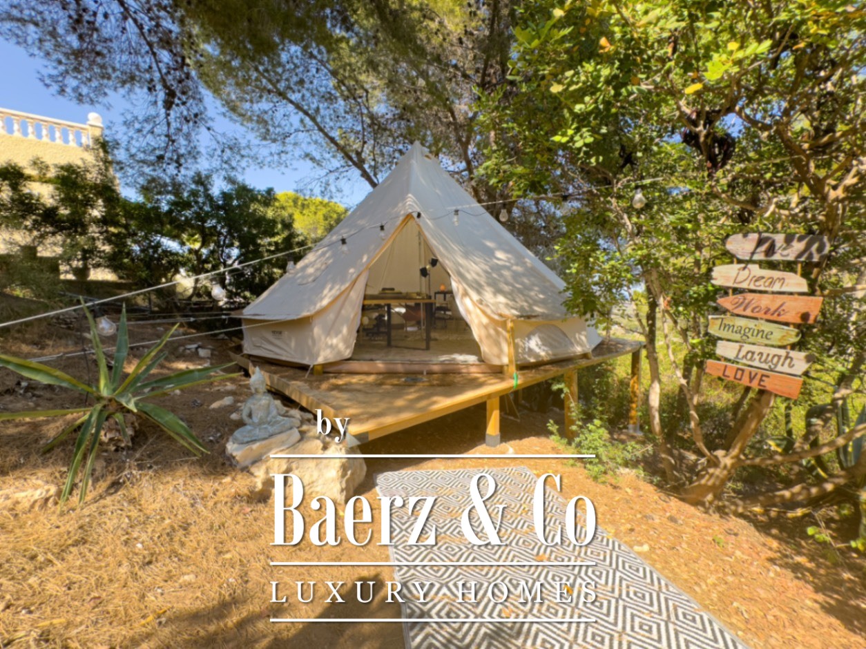 De buitenruimte is een van de grote trekpleisters van het pand: een zorgvuldig onderhouden tuin van 1265 m², met palmbomen en fruitbomen, een privézwembad, een parkeerplaats, uitzicht op zee en bergen, evenals een groot terras dat het huis omringt. Het beschikt ook over een buitenkeuken, perfect om te genieten van het weer en de Mediterraanse levensstijl.