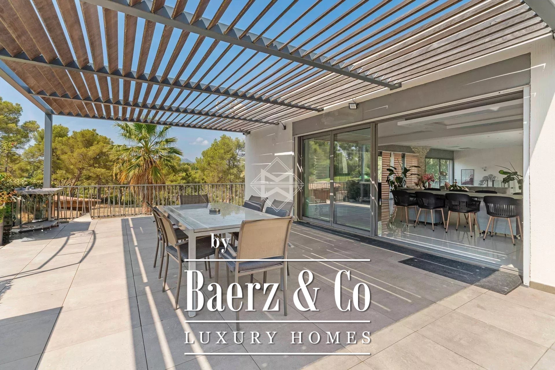 Buiten vormen twee zwembaden, een zonnig terras en een paardenaccommodatie met vijf stallen een weerspiegeling van de levensstijl van dit domein. Extra voorzieningen omvatten een afgesloten garage, drie carports, ruime parkeergelegenheid en moderne uitrustingen zoals airconditioning, elektrische domotica en beveiligingssystemen. Villa Le Pradet biedt absolute privacy, geraffineerd comfort en een zeldzame verbondenheid met het ritme van Zuid-Frankrijk.