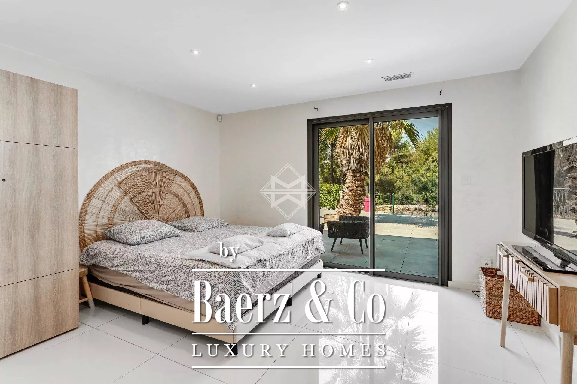 Er zijn in totaal zeven slaapkamers waarvan vijf met eigen badkamer en toilet, plus een zelfstandig appartement met twee slaapkamers. Overal zijn edele materialen en weloverwogen proporties zichtbaar, die blijvende mediterrane elegantie onderstrepen.