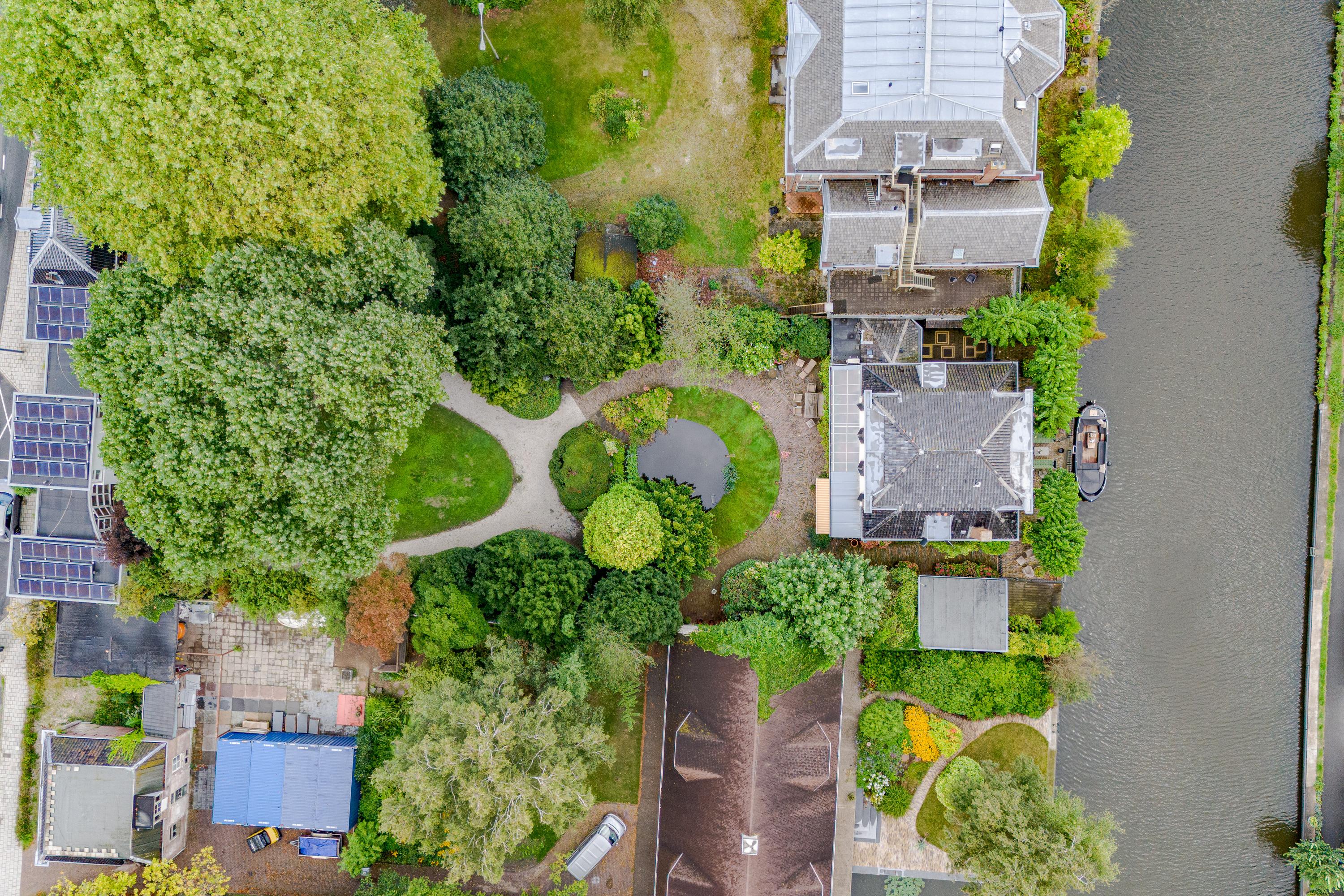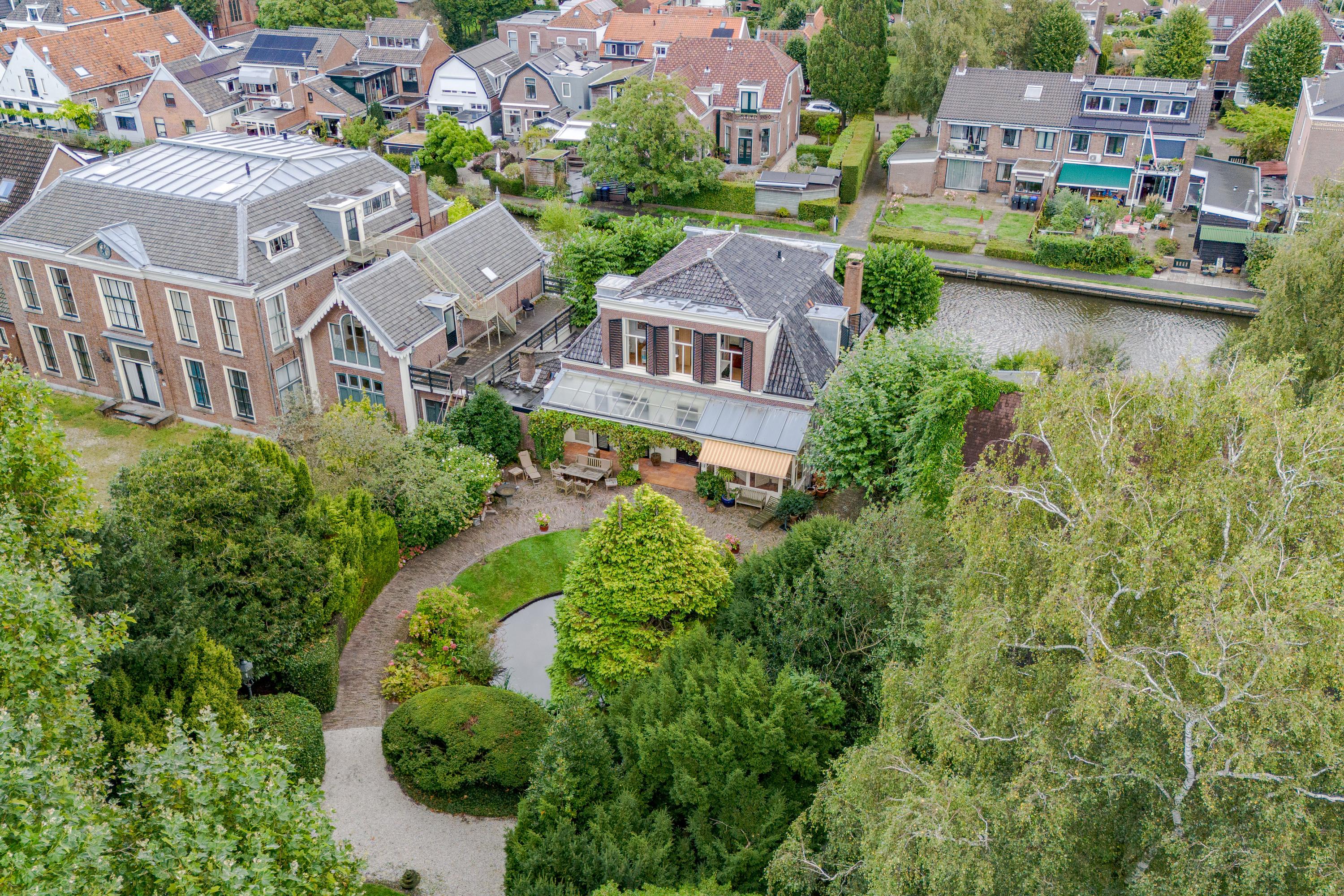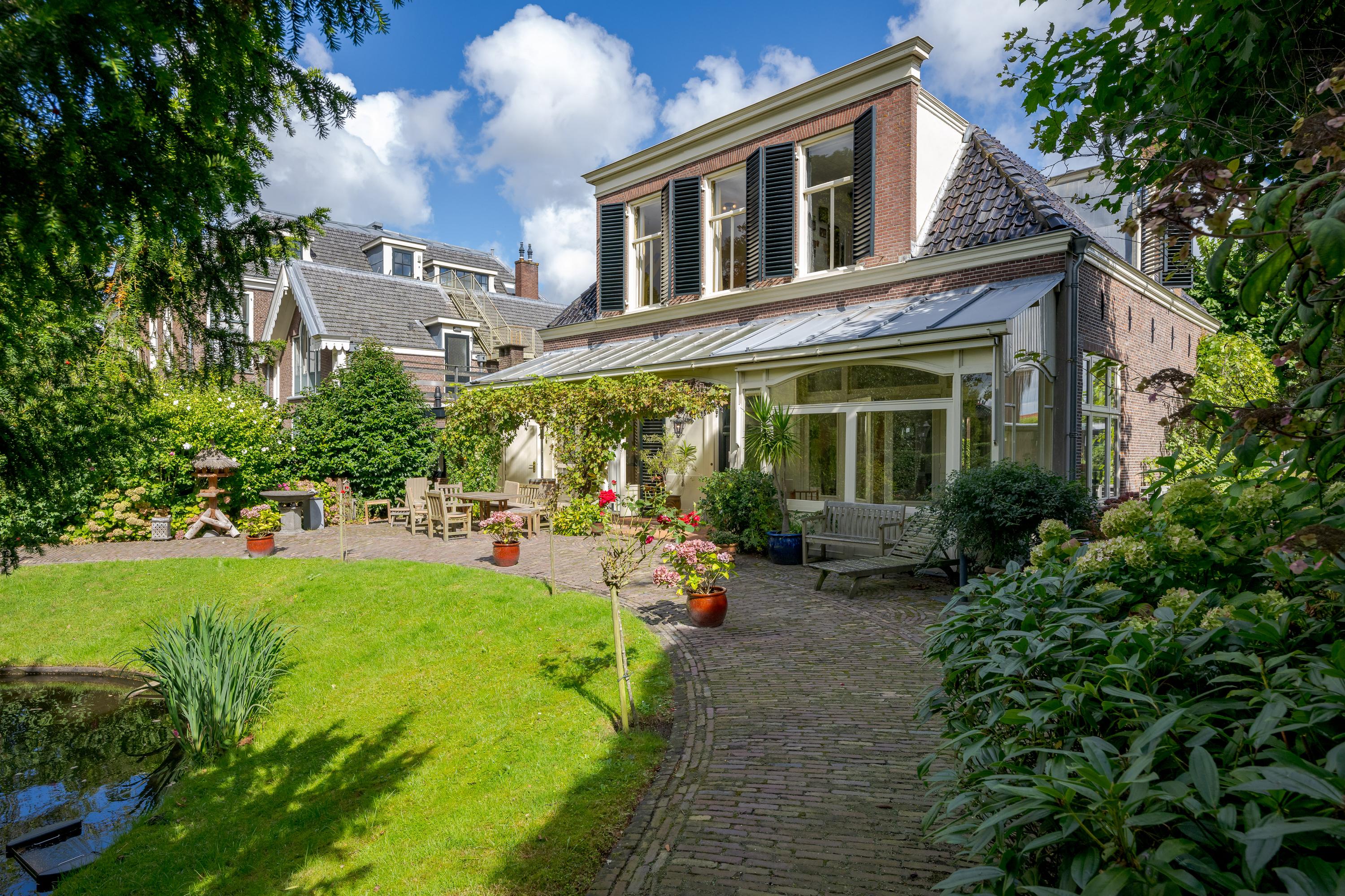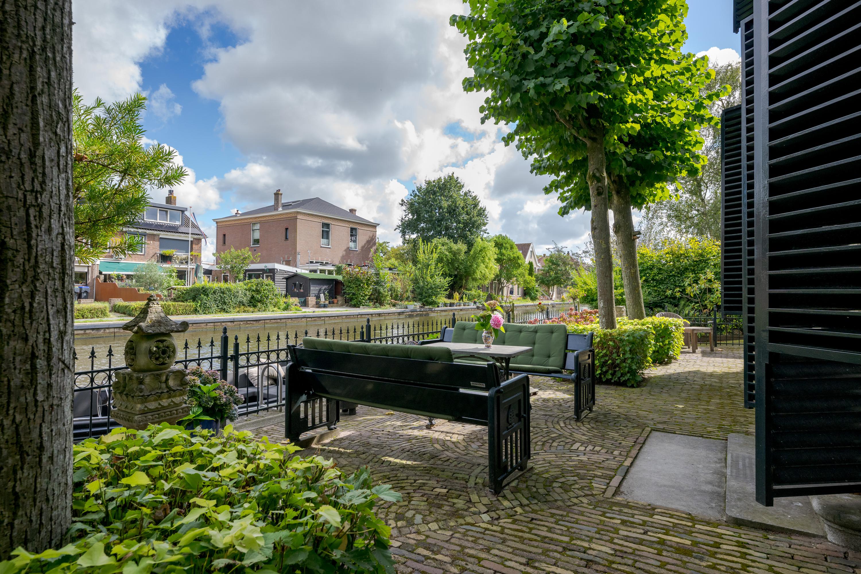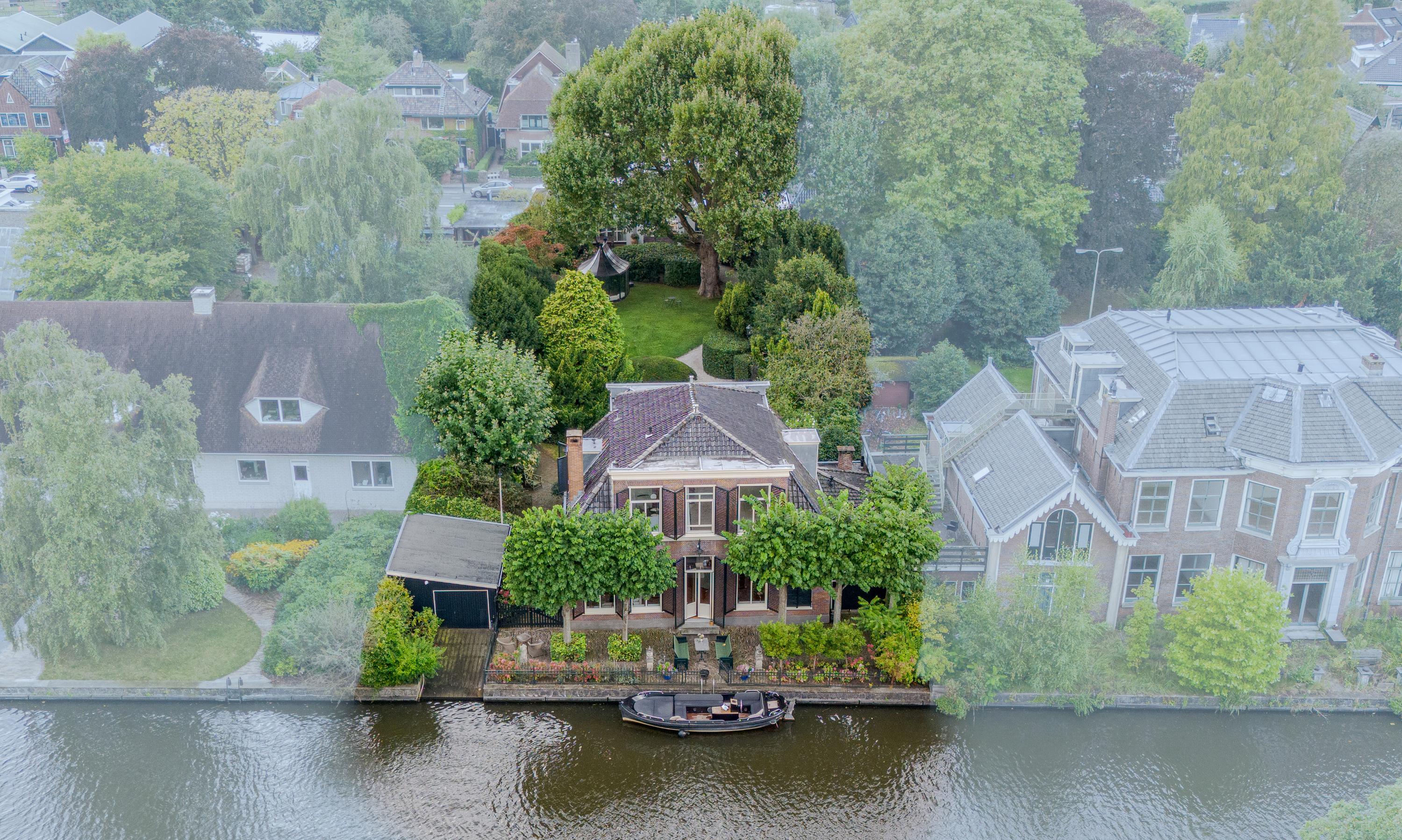 In de tuin met terras langs het water kunnen ontbijt, lunch, borrel en diner tegen een achtergrond van voorbijvarende bootjes genuttigd worden. Mocht er een bekende voorbij varen, dan kan er even aangelegd worden om in te stappen. Uiteraard zou je ook de eigen boot kunnen pakken. De woning beschikt immers over een eigen botenhuis met helling, waar je zou ook nog een insteekhaven zou kunnen maken en met een klein stukje varen ben je op De Kaag of naar het midden in het Groene Hart, het centrum van Leiden met haar vele romantische grachten en terrassen.