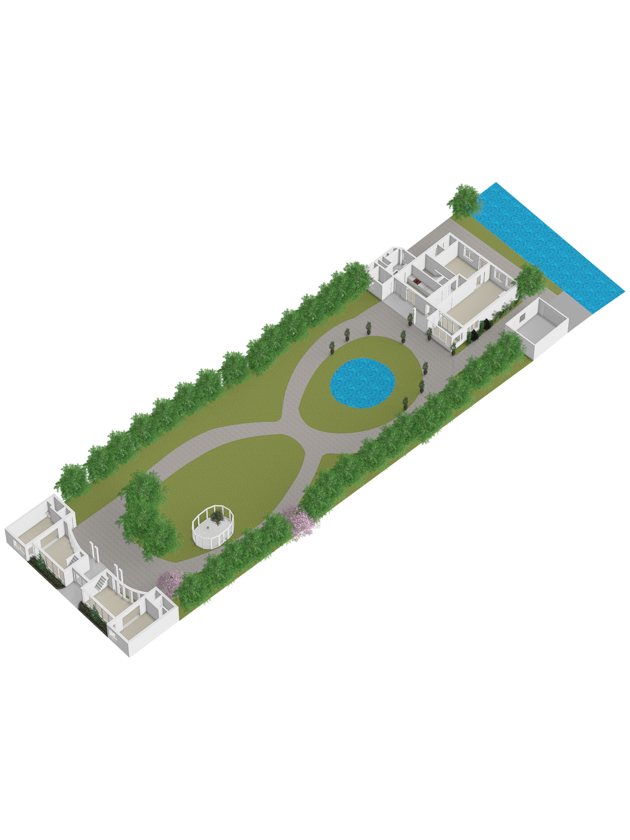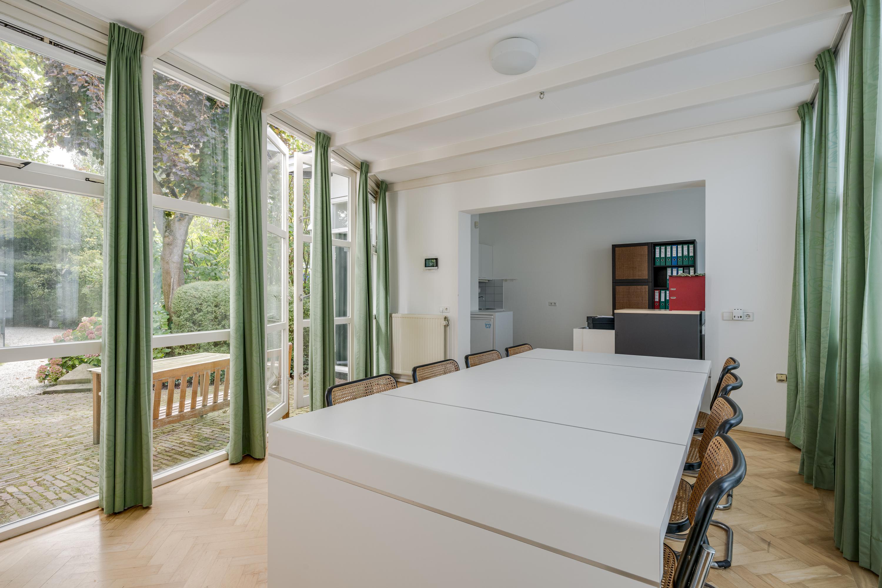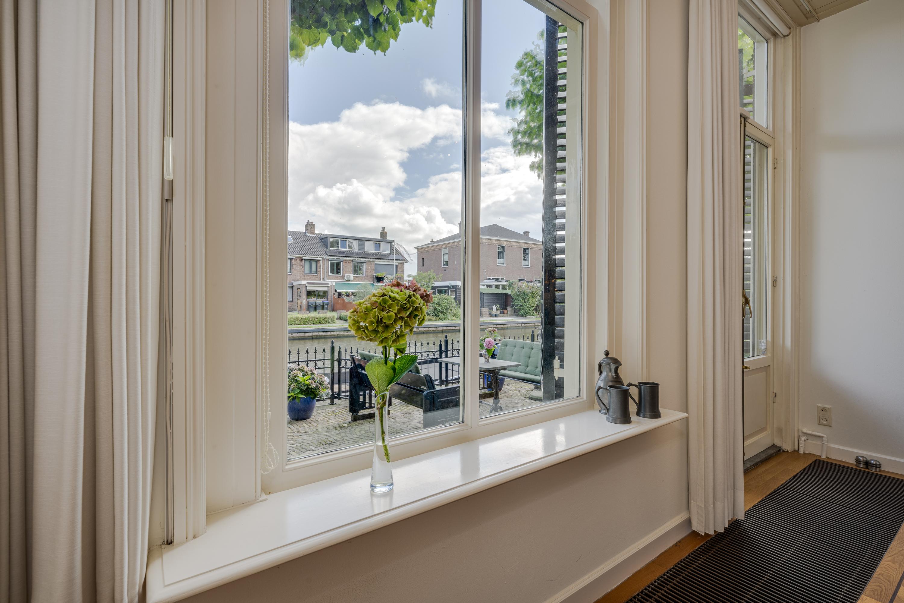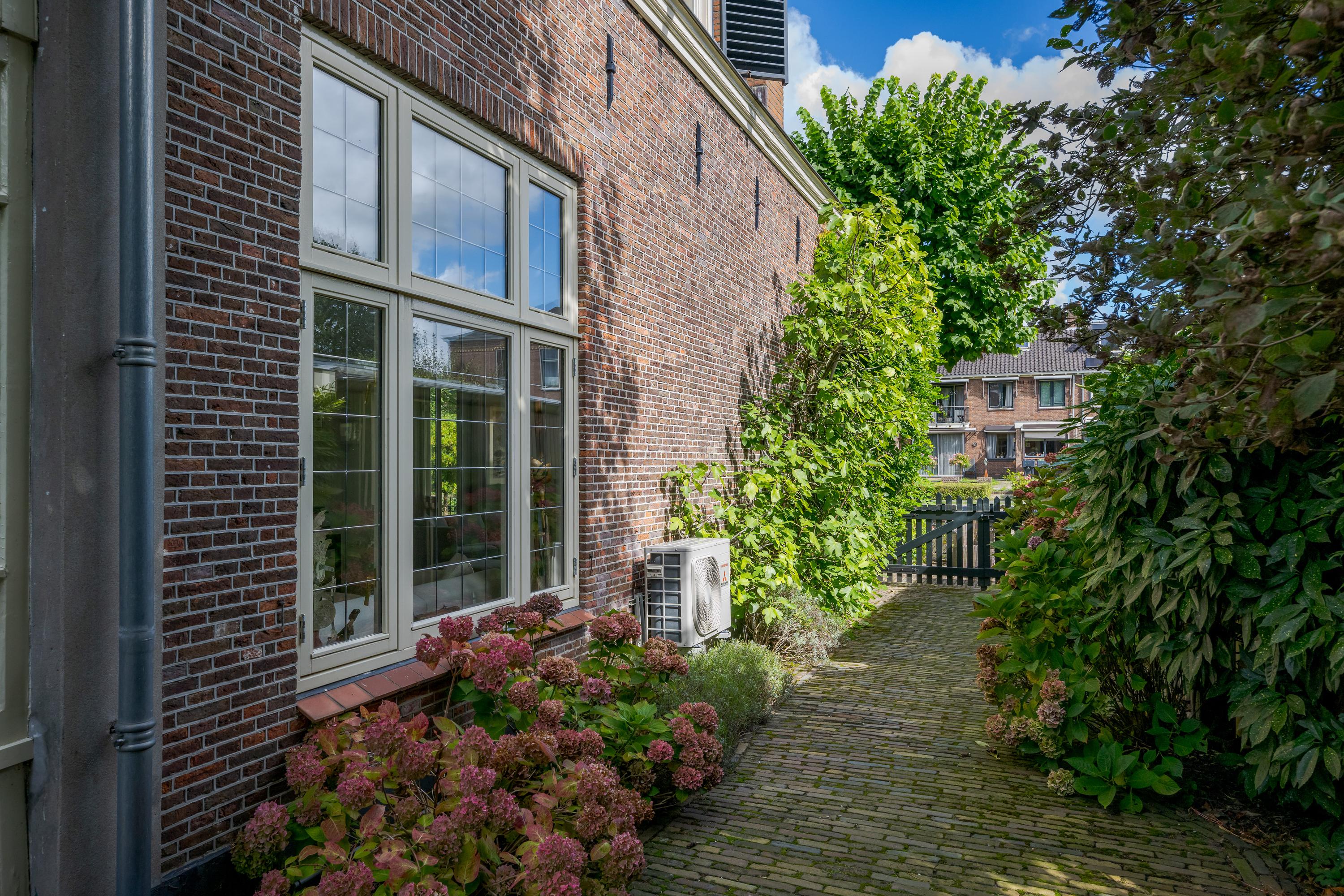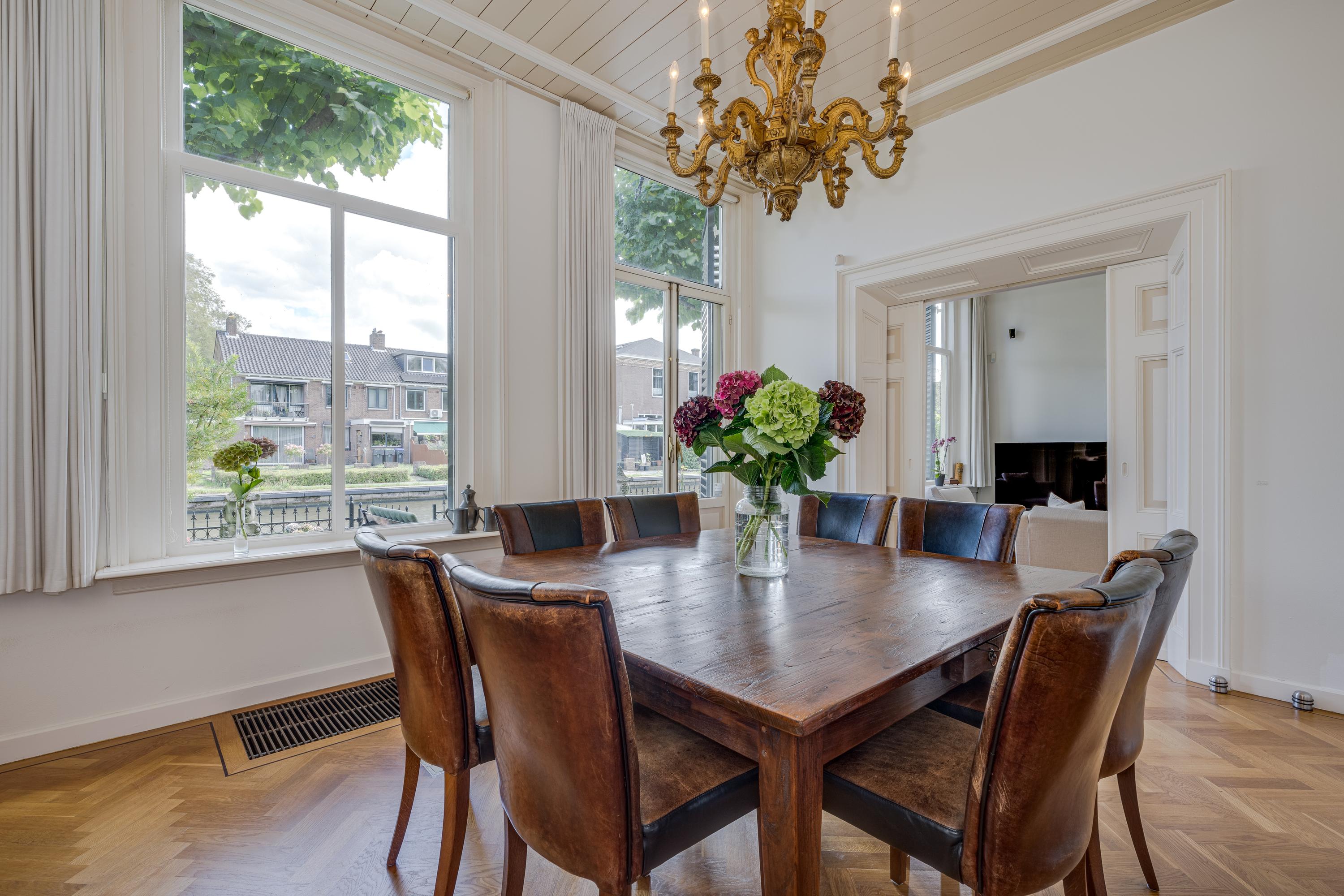 In de tuin met terras langs het water kunnen ontbijt, lunch, borrel en diner tegen een achtergrond van voorbijvarende bootjes genuttigd worden. Mocht er een bekende voorbij varen, dan kan er even aangelegd worden om in te stappen. Uiteraard zou je ook de eigen boot kunnen pakken. De woning beschikt immers over een eigen botenhuis met helling, waar je zou ook nog een insteekhaven zou kunnen maken en met een klein stukje varen ben je op De Kaag of naar het midden in het Groene Hart, het centrum van Leiden met haar vele romantische grachten en terrassen.