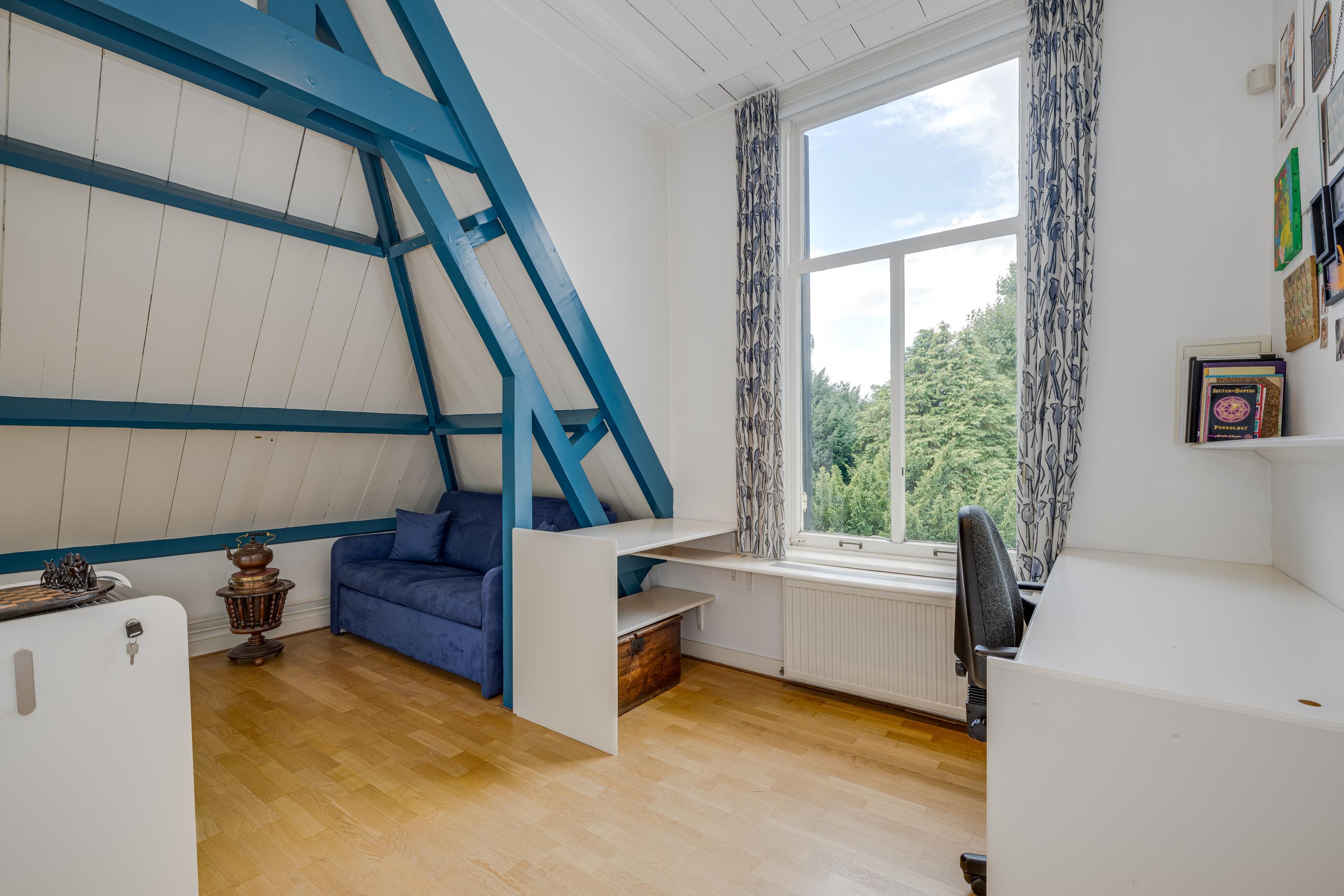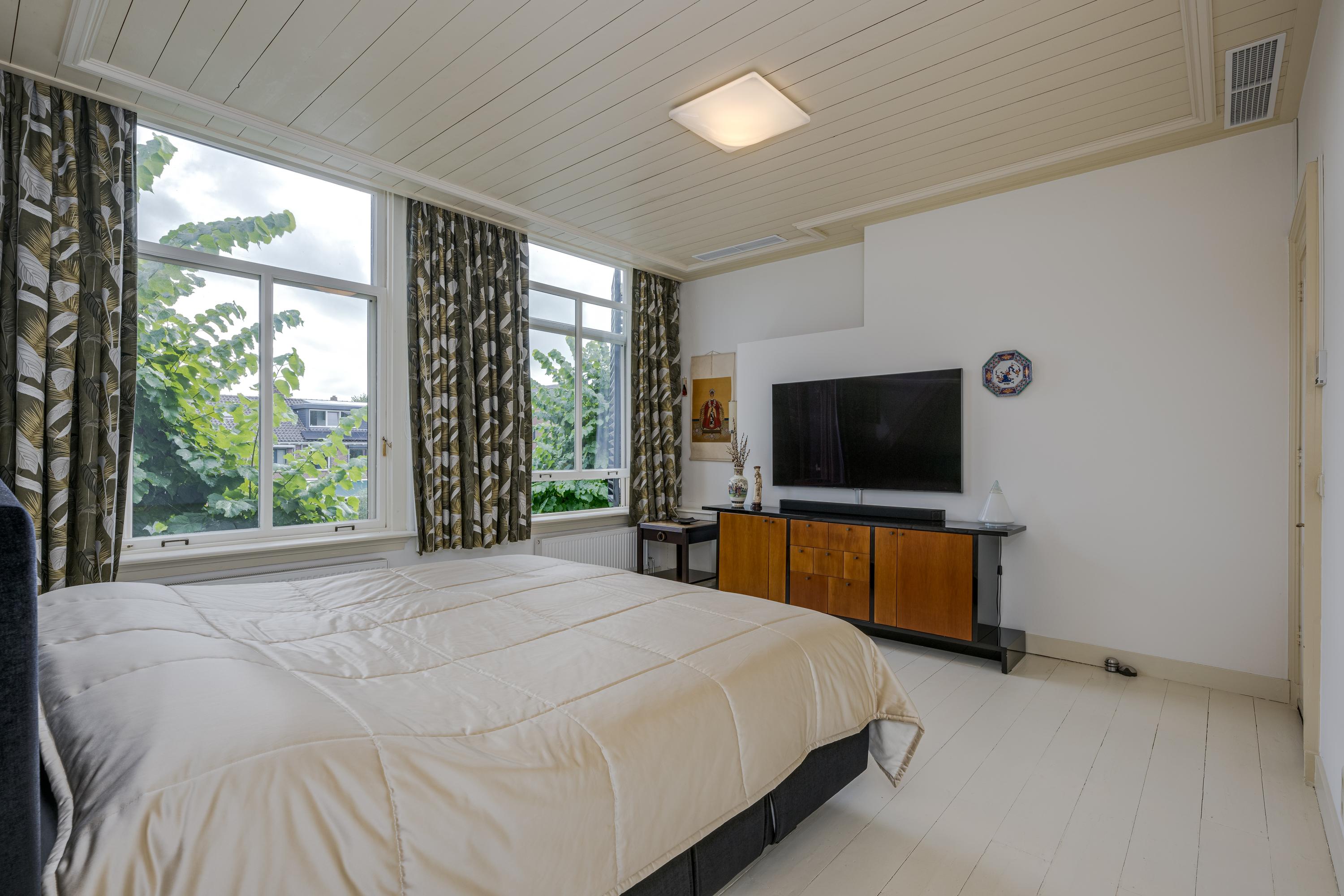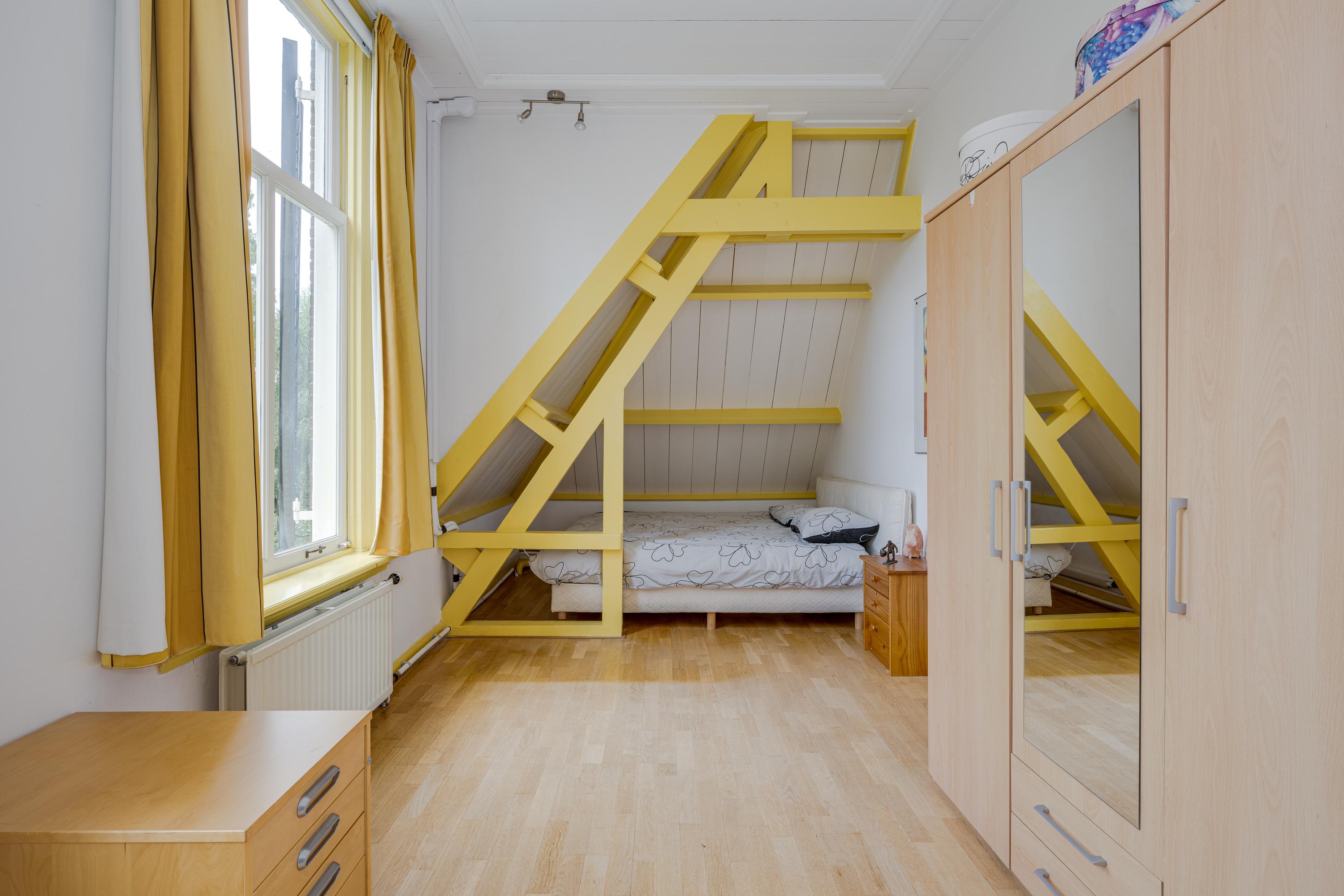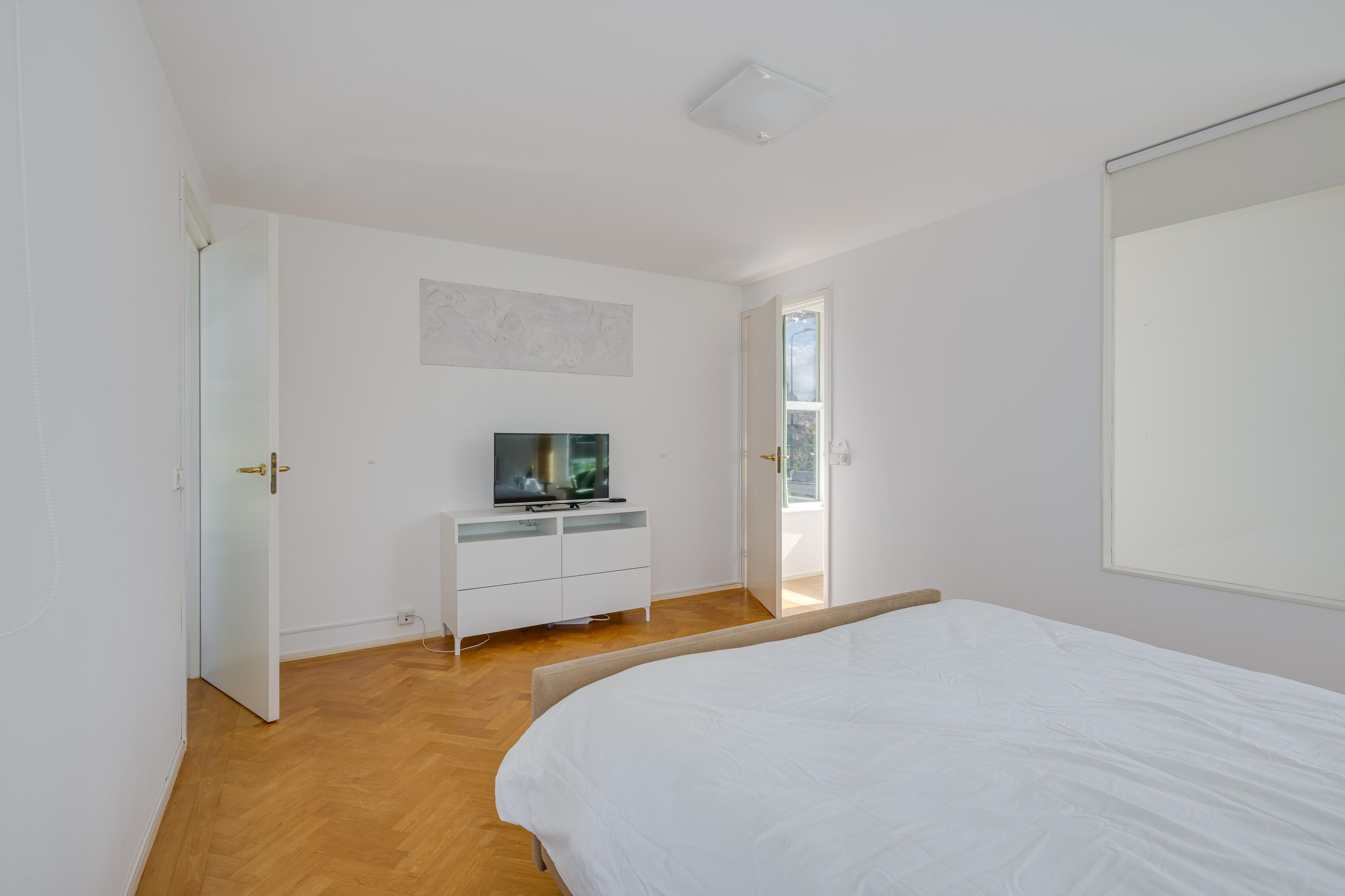 De bordestrap vormt het hart van het huis en de verbinding, met een toegang tot een ruime toiletruimte met wandcloset en fontein, naar de slaapverdieping. Hier zijn drie ruime slaapkamers met de master bedroom aan de waterzijde en inloopkast. De slaapkamers typeren zich door de hoge plafonds en het uitzicht op de tuin en het water, waarbij de master bedroom eruit springt door het formaat. De badkamer is voorzien van alle luxe met een granito-vloer, vloerverwarming en 2 in natuursteen ingebouwde wastafels. Niet alleen de hygiëne, maar ook ontspanning: naast een verzonken duo-bad, een doucheruimte met stortdouche en “Turks bad”, sauna, een wandbidet en een wandcloset.