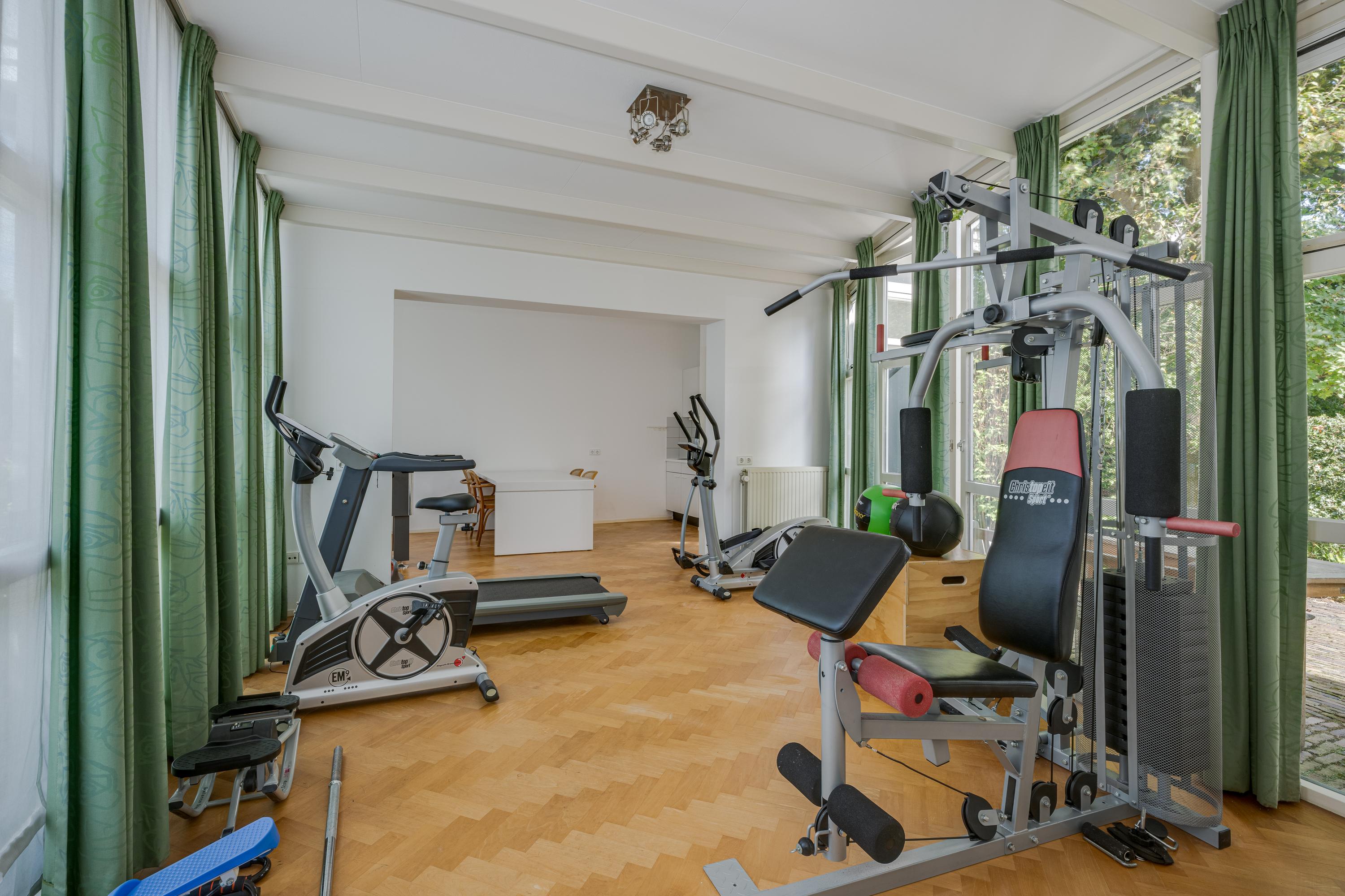 Het poortgebouw uit 1995 is symmetrisch van opzet met een centrale doorgang in het midden en op de begane grond zowel aan de linker- als aan de rechterzijde een entree. De linkervleugel is in gebruik als kantoor, waarbij ook een wc, douche en pantry aanwezig zijn. De rechtervleugel is in gebruik als fitnessruimte en beschikt ook over een wc, douche en pantry. Zowel vanuit de linker- als vanuit de rechtervleugel is een trap naar de kamer boven de poort, die nu als gastenslaapkamer is ingericht. De gevel van het poortgebouw bestaat grotendeels uit glas en heeft openslaande deuren naar de tuin in beide vleugels, waarmee gezorgd is voor veel lichtinval en verbinding met de binnentuin.