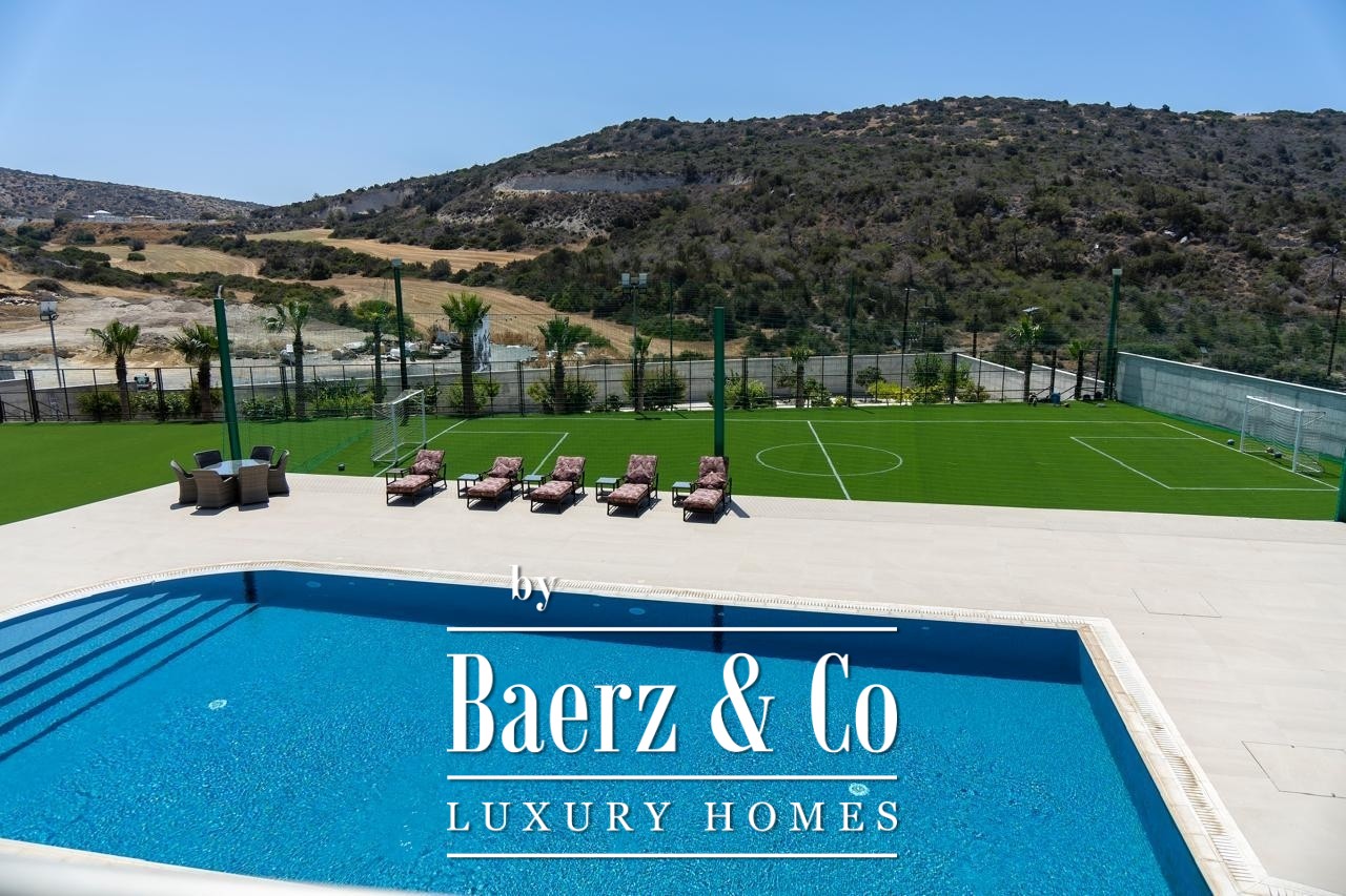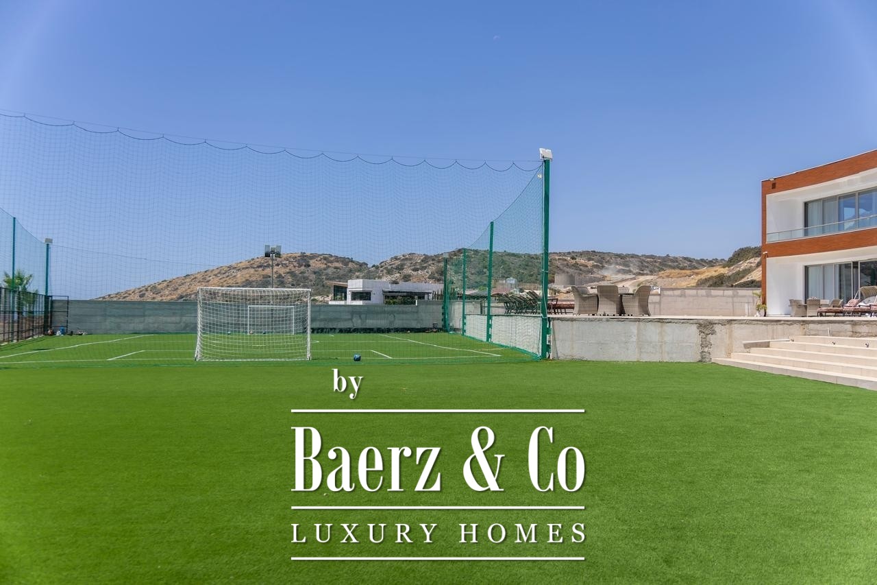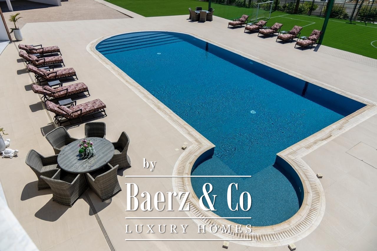 De designkeuken is uitgerust met twee ovens, elektrische en gasfornuizen, een barbecue en geavanceerde apparatuur en loopt over in een overdekte buitenkiosk en tweede keuken, ideaal voor gastvrijheid. Buiten verandert de villa in een privéresort, met een zoutwaterzwembad van 53 meter met geïntegreerde jacuzzi, omgeven door aangelegde tuinen, volgroeide fruitbomen en een eigen mini-voetbalveld.