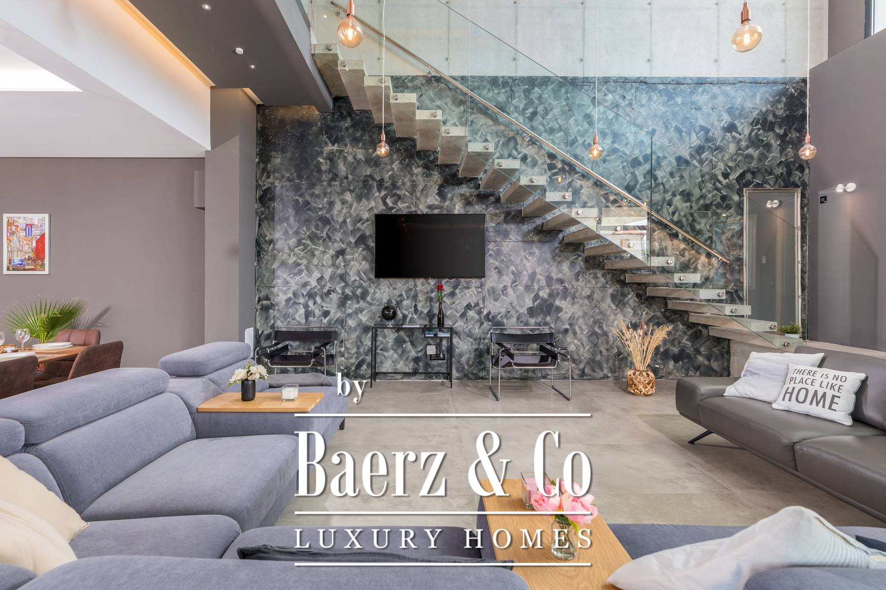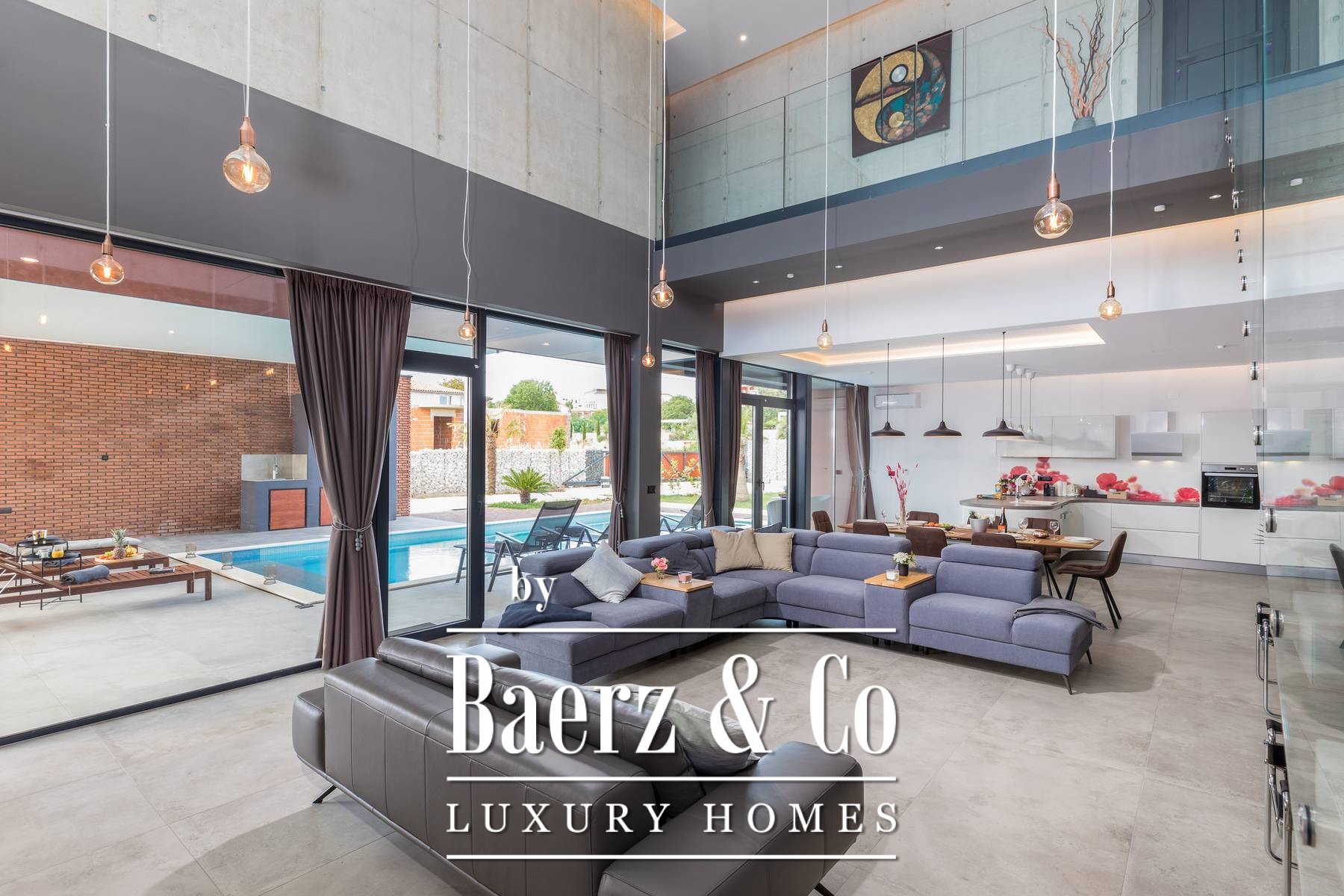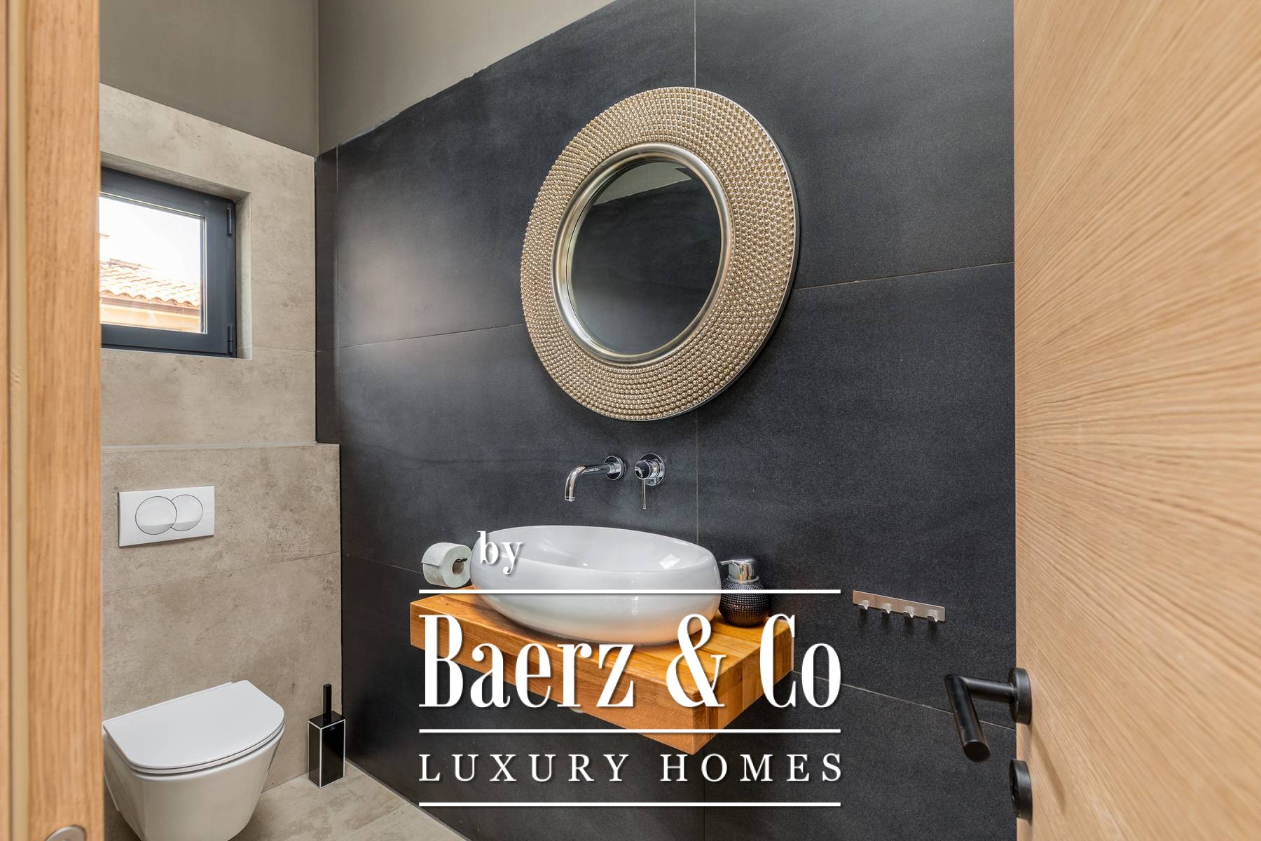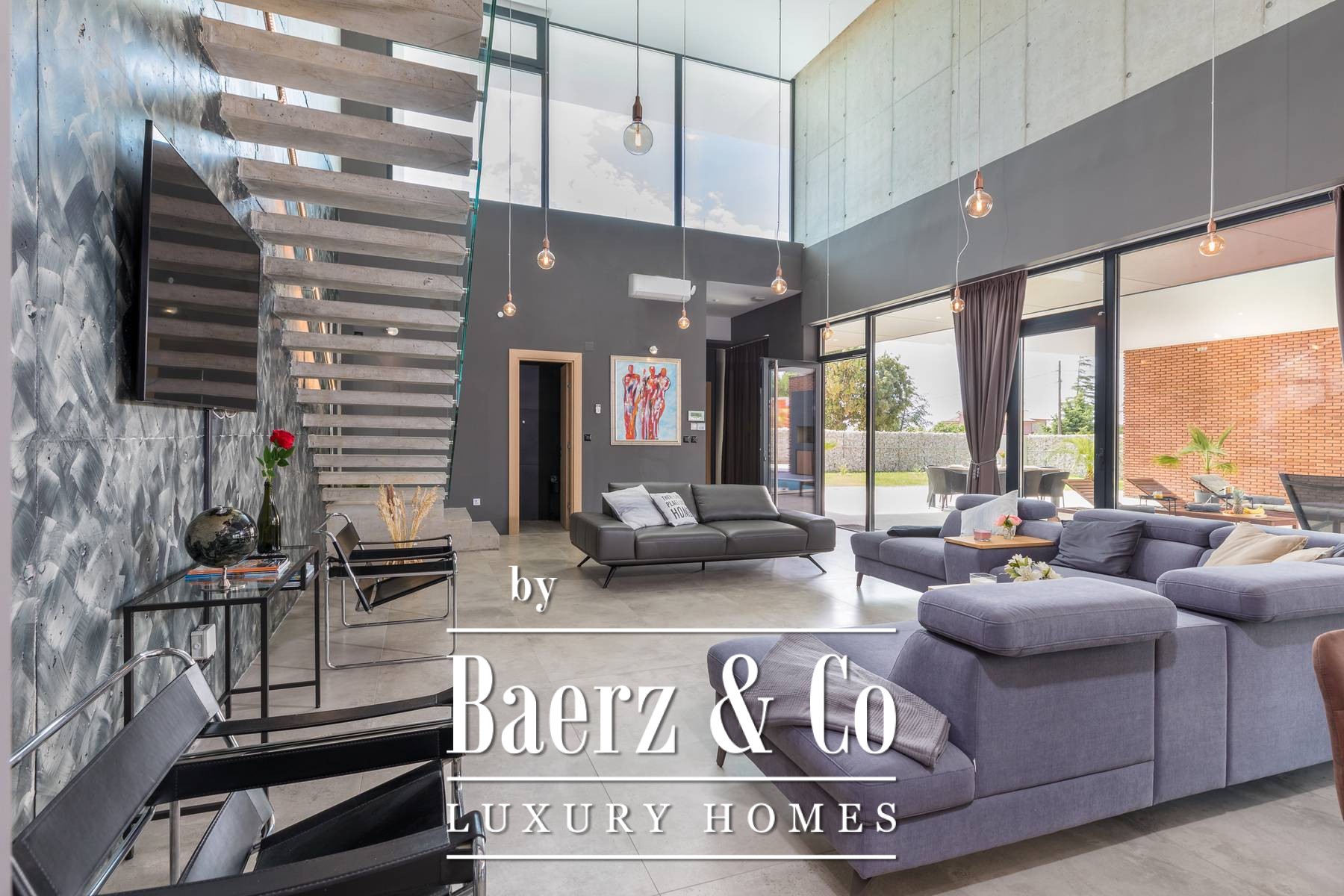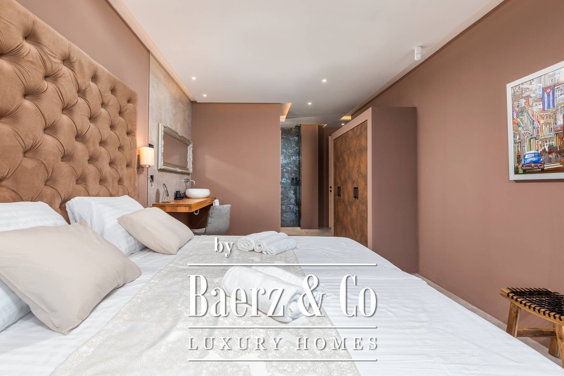 Op de begane grond vloeien de open woonkamer en keuken samen, zonder traditionele afscheidingen, terwijl één slaapkamer privacy biedt. Een sculpturale zwevende trap leidt naar drie slaapkamers op de bovenverdieping, elk met privébadkamer voorzien van moderne Optishower glazen wanden en panoramisch zeezicht door royale raampartijen. Door de hele villa zorgen vloerverwarming, airconditioning en een open haard voor comfort in elk seizoen. Alle systemen, van videobewaking tot alarm, zijn te bedienen met een mobiele app en bieden veiligheid en discretie.