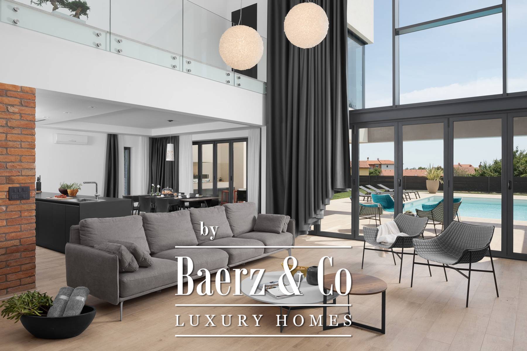 Villa Ližnjan is een toonbeeld van moderne ruimtelijke indeling en licht, eigentijds wooncomfort. Deze villa in Ližnjan is bestemd voor wie privacy waardeert, én de harmonieuze verbinding tussen het interieur en de rust van buiten. De woning biedt 400 m² woonoppervlakte, met een woonkamer van dubbele hoogte, een eetkamer en een keuken die direct doorloopt naar een overdekt terras. Panoramische glazen schuifdeuren brengen een overvloed aan daglicht binnen en vervagen de grenzen tussen binnen en buiten, met zachte uitzichten over het zonneterras en het verwarmde zwembad.