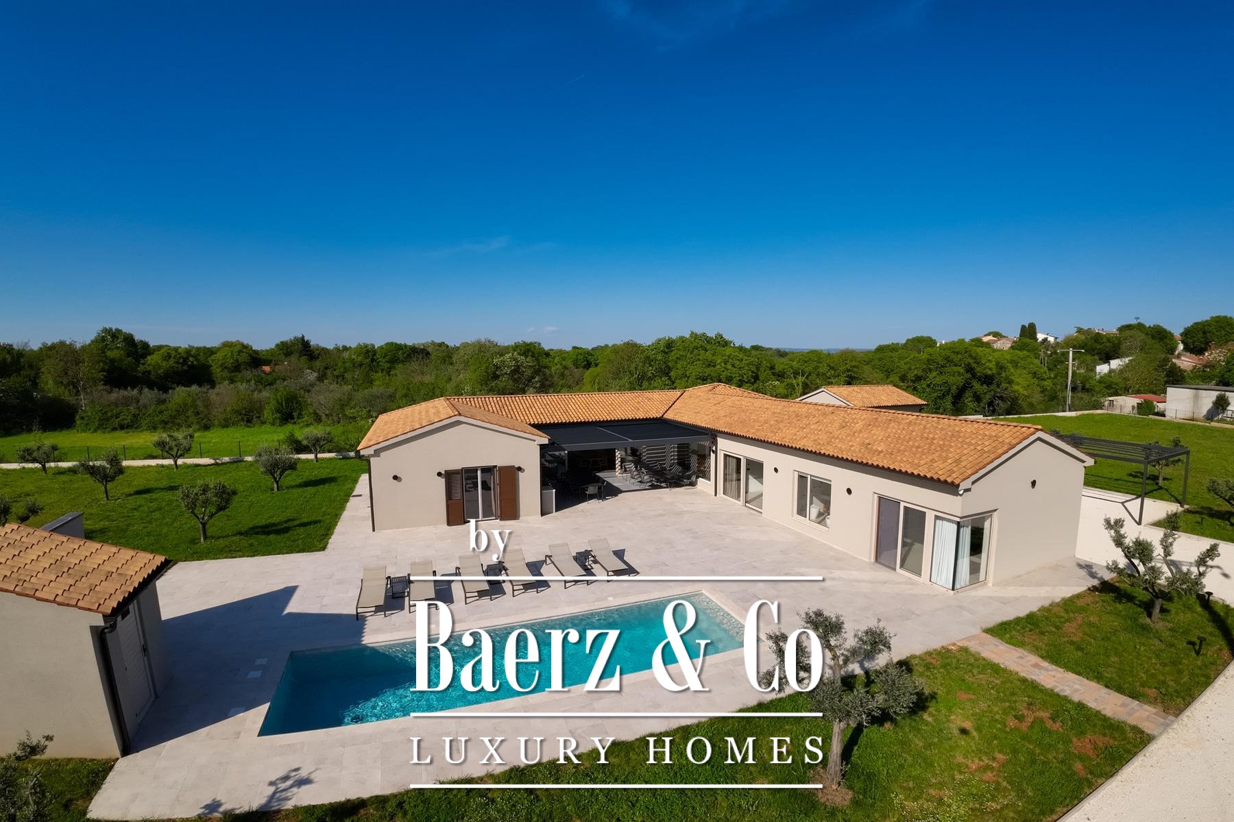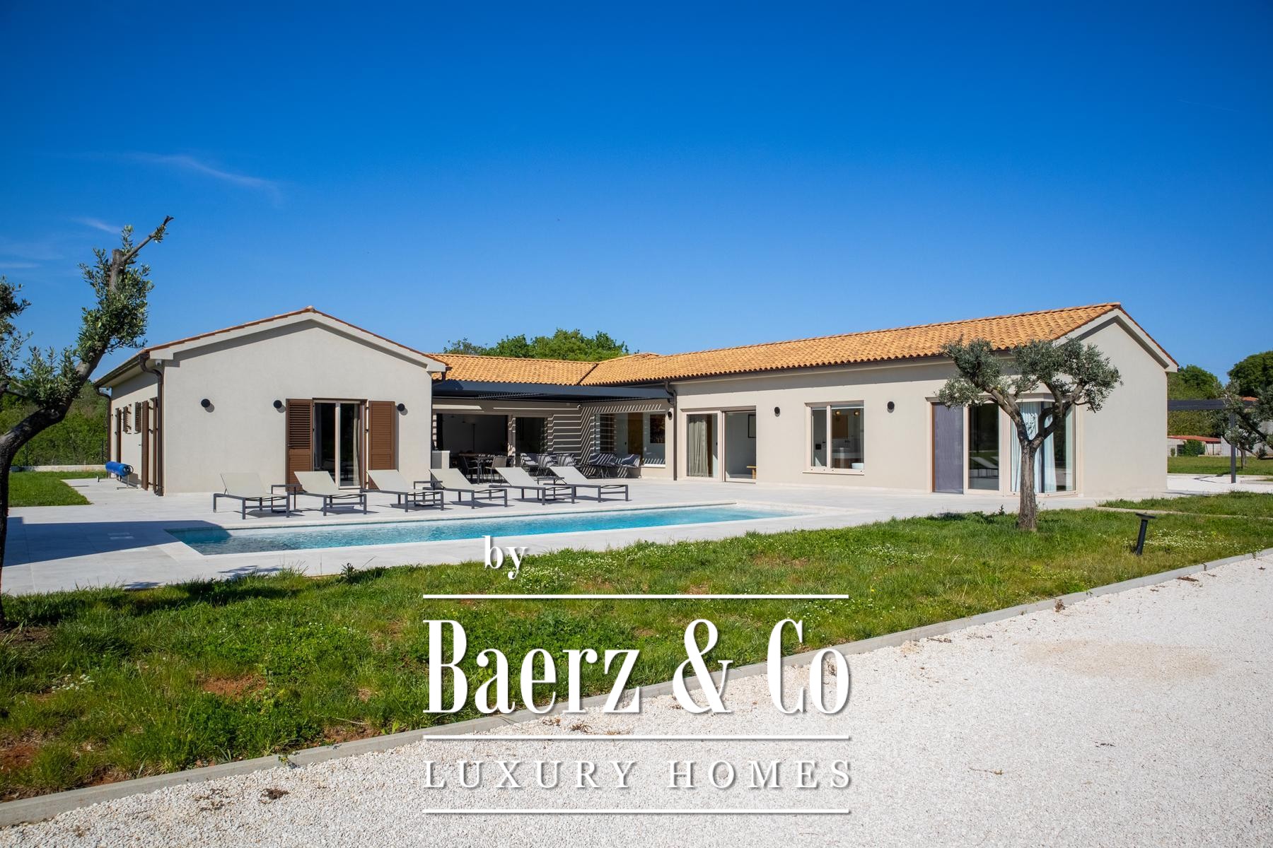 Villa Ližnjan in Istrië bevindt zich op het zuidelijkste punt van het schiereiland, op slechts zeven kilometer van de Adriatische Zee. Deze villa biedt 400 m² verfijnde leefruimte en ligt op een perceel van 5.764 m², aan beide zijden omarmd door elegante olijfgaarden, wat absolute privacy waarborgt. Het eigentijdse ontwerp op één niveau voldoet aan de hoogste standaarden van modern bouwen, met zorgvuldige materiaalkeuze door het hele huis.