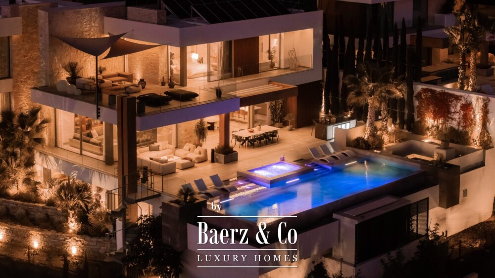 Villa Marbella met panoramisch zeezicht biedt een woonervaring op hoog niveau, gekenmerkt door eigentijds design en weidse uitzichten. Het woonoppervlak van 934 m² verwelkomt u met onbelemmerde vergezichten, van de Middellandse Zee tot aan de Afrikaanse kustlijn. Licht stroomt rijkelijk door de vloerhoge ramen, waardoor open leefruimtes naadloos overgaan in het omliggende landschap en buiten en binnen in elkaar overvloeien.