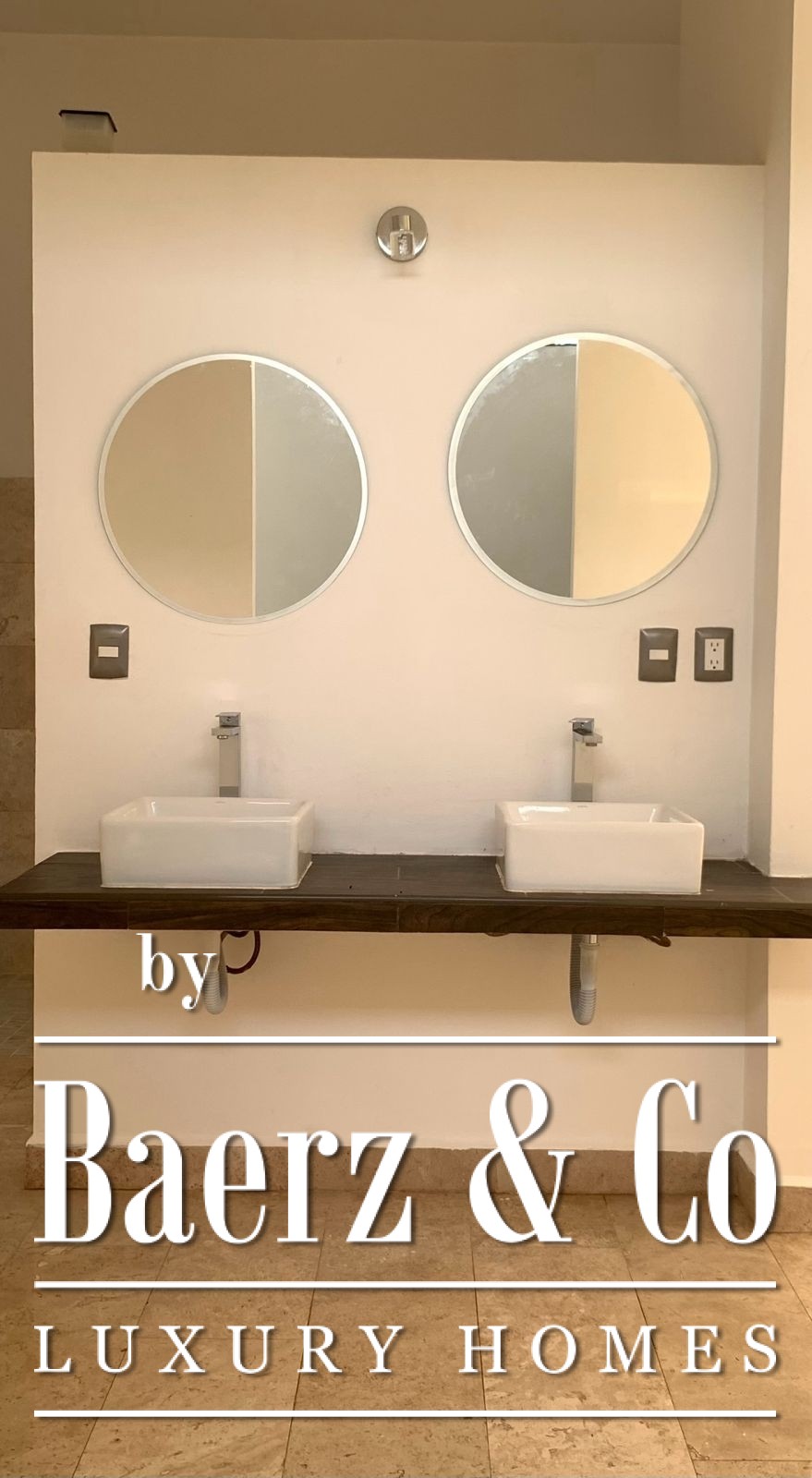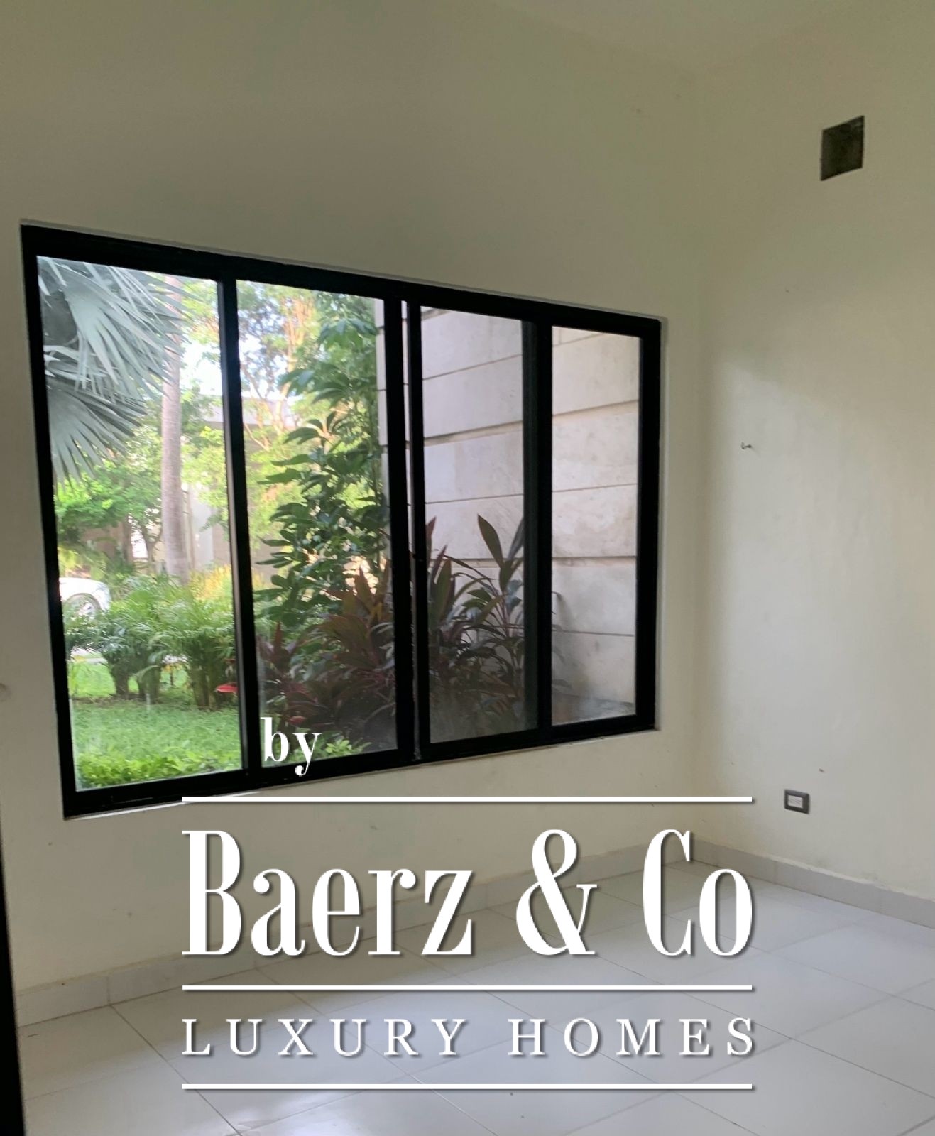 Licht beweegt over marmeren vloeren, gevels en het centrale keukeneiland en verbindt het interieur met de fraai aangelegde tuinen en een zwembad met een afzonderlijk kinderbad en automatische filterinstallatie. De begane grond biedt een entree, een gastenverblijf met badkamer en kast, een open woon- en eetkamer, een grote pantry, een keuken met ontbijtbar en een garage voor zes auto's. Boven zijn er drie slaapkamers, elk met balkon of terras, en-suite badkamers en inloopkasten. De master suite onderscheidt zich met een privéterras, een royale inloopkast, een douche en een jacuzzi.