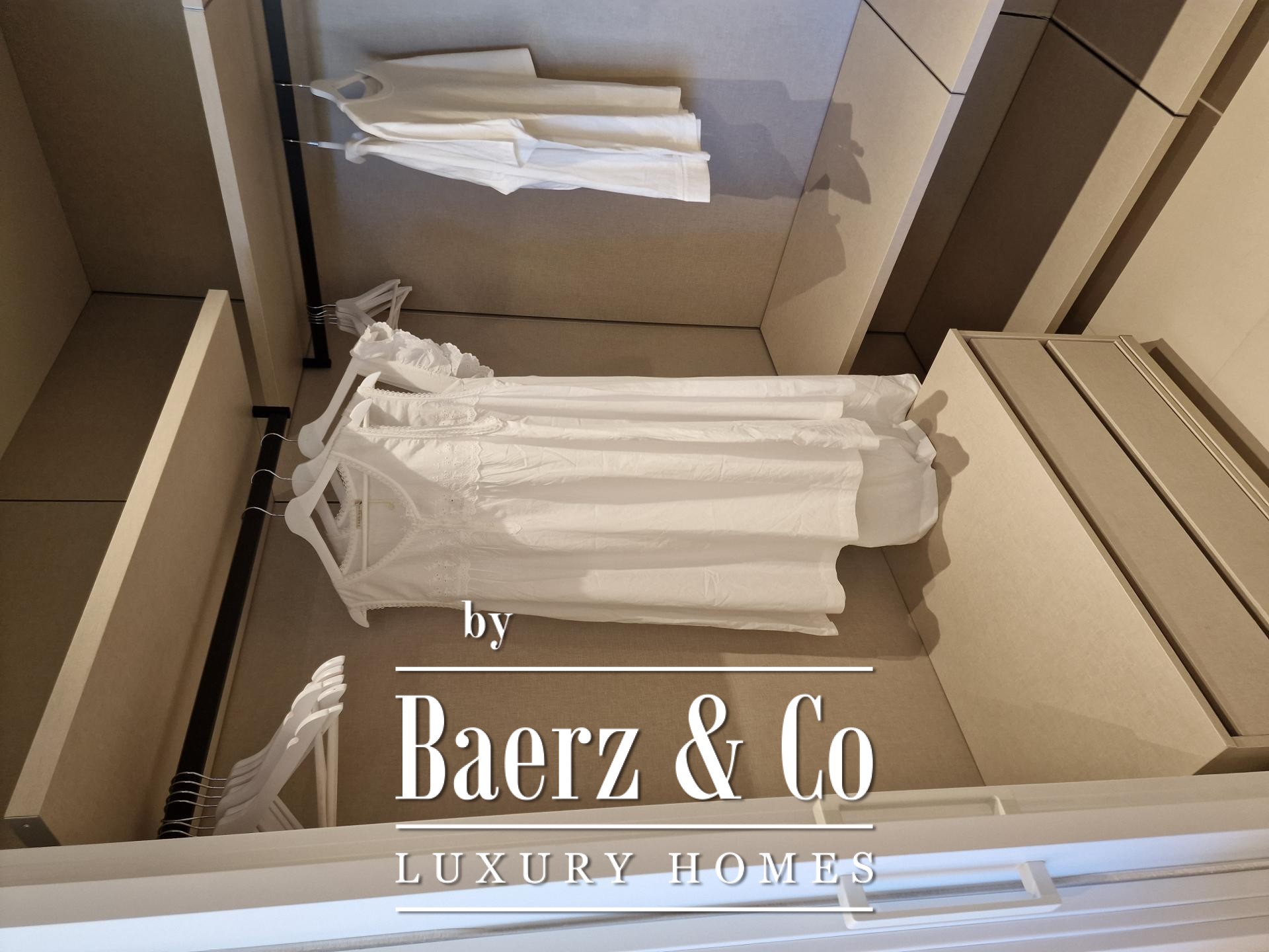 De master suite is voorzien van een inloopkast en een privébadkamer met dubbele wastafel en een royale inloopdouche. Twee extra slaapkamers, elk met veel daglicht, delen een verfijnde tweede badkamer. Vloerverwarming, centrale airconditioning en onberispelijke details staan garant voor een constant hoog comfortniveau.