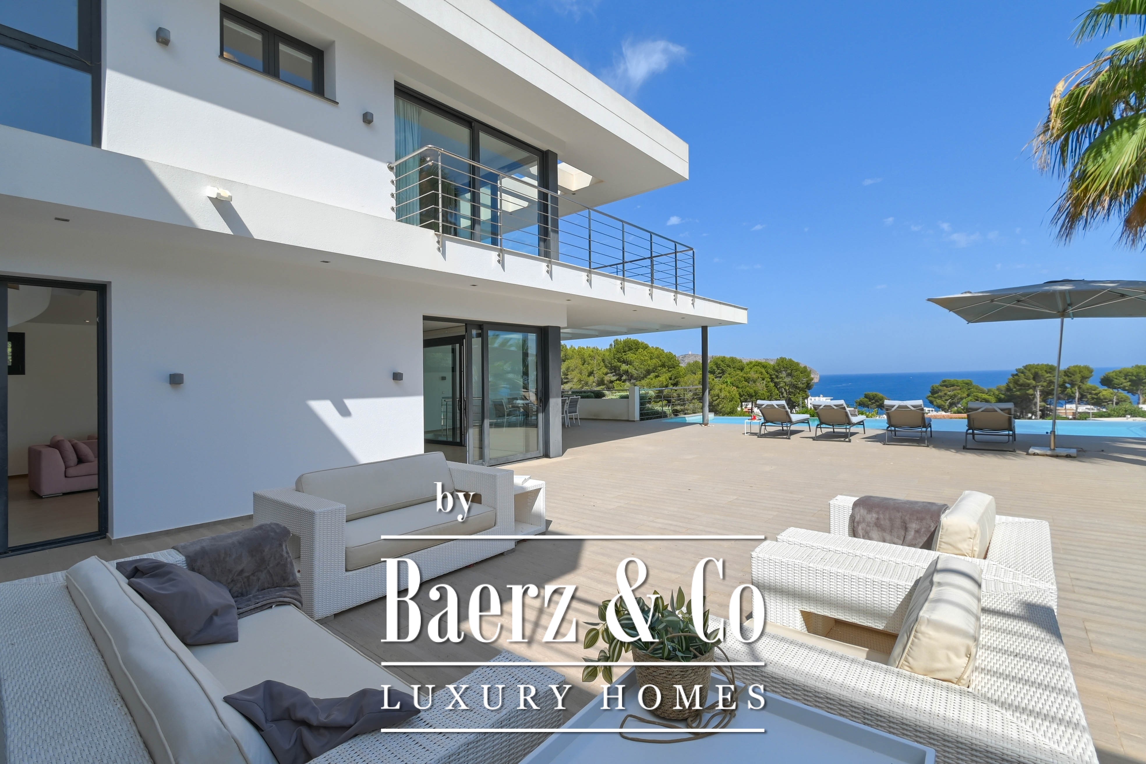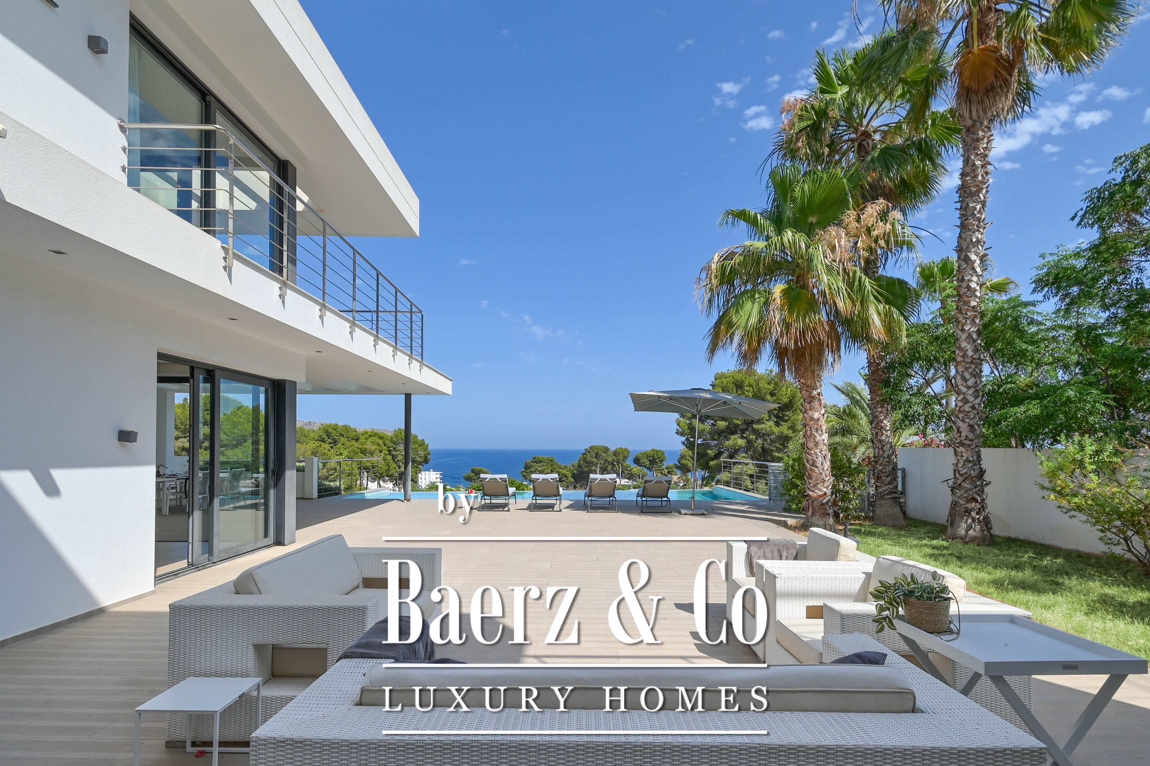 Buiten geniet je van een ruim terras, een uitnodigend zwembad en uiteraard het spectaculaire uitzicht op de Middellandse Zee. De dubbele garage zorgt voor extra comfort en bergruimte.