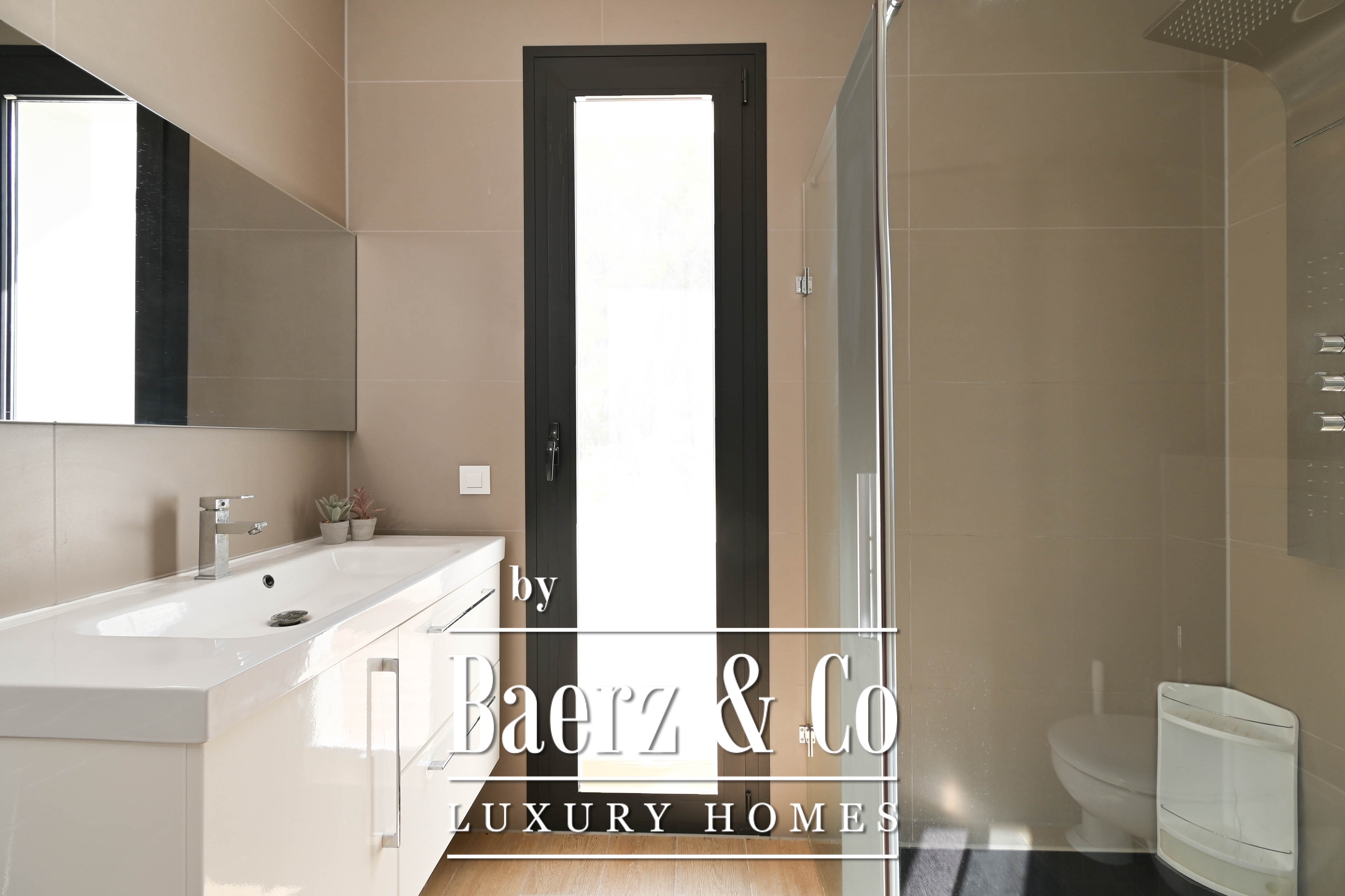 Met vier ruime slaapkamers – elk met en-suite badkamer – biedt deze woning privacy en luxe voor het hele gezin en gasten. Daarnaast is er een apart gastentoilet voorzien.