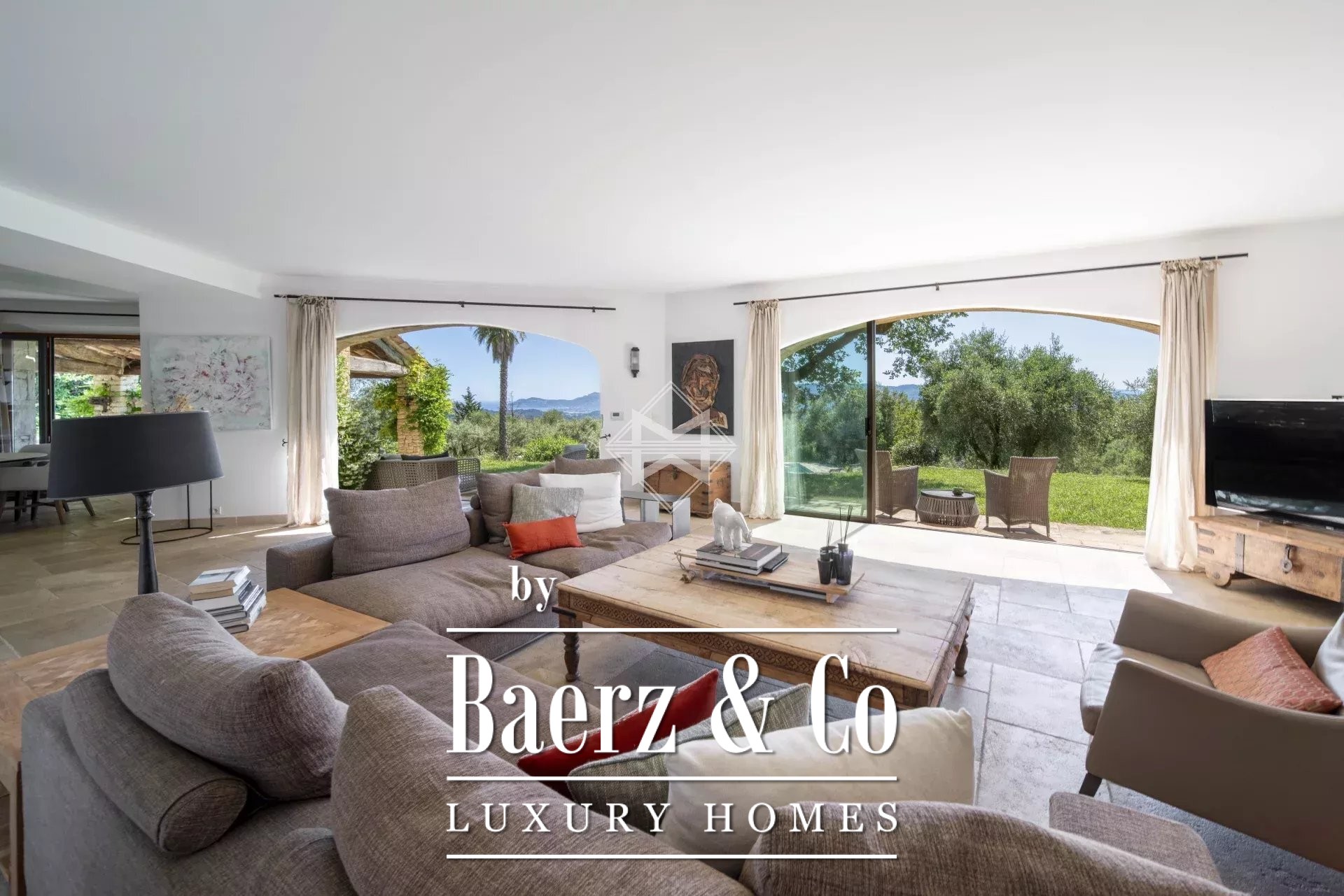 Villa Mouans-Sartoux biedt een zeldzaam panoramisch perspectief, gelegen op een heuvel tussen Mougins en Valbonne binnen het gewilde domein Castellaras. Deze villa Mouans-Sartoux onderscheidt zich door een adembenemend uitzicht over golvende groene heuvels richting de verre Middellandse Zee en vangt perfect het unieke ritme van het leven aan de Côte d’Azur.