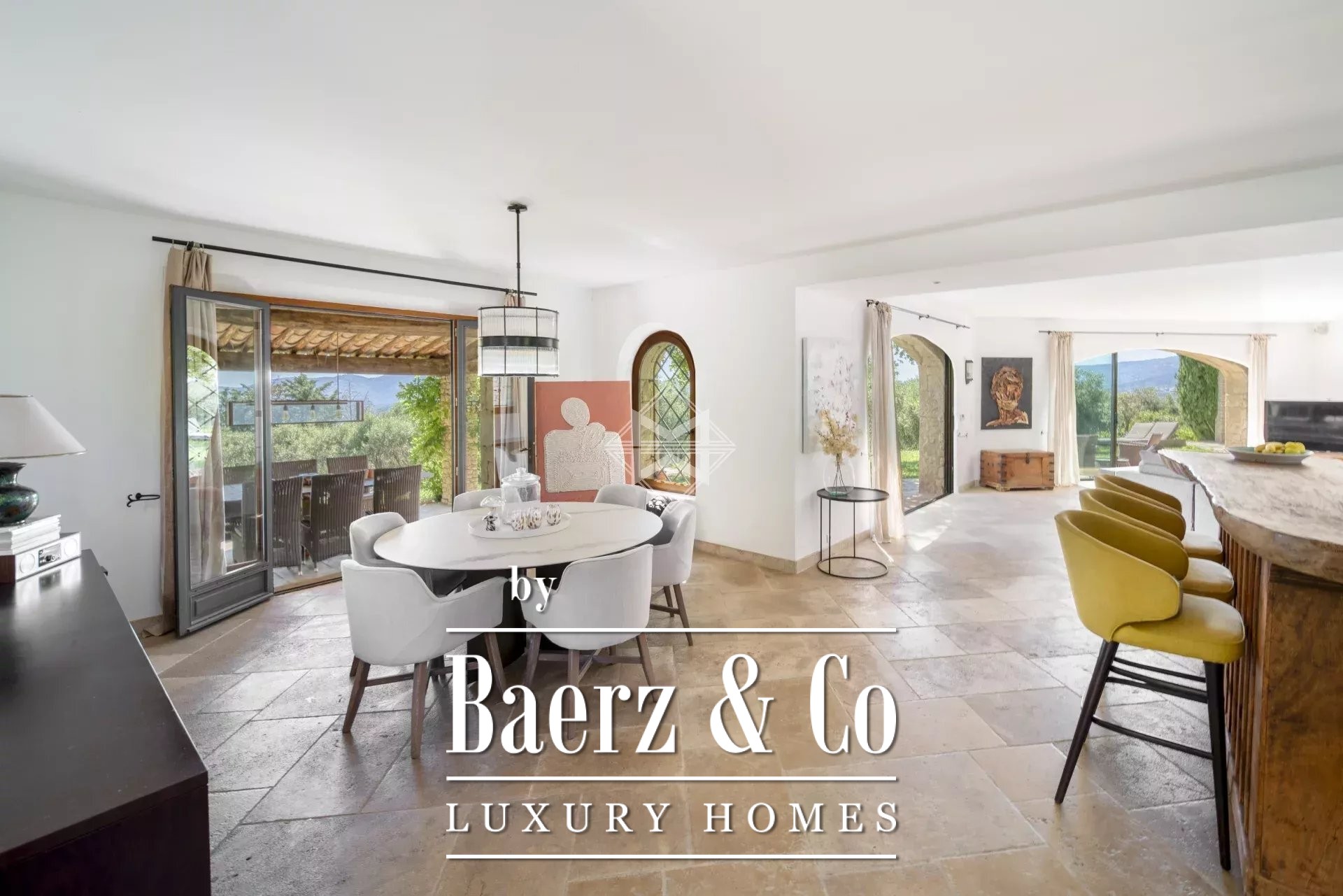 De ligging is uiterst praktisch: de internationale luchthaven van Nice ligt op 25 minuten, de stranden van Cannes op 20 minuten. Deze villa – een luxe villa te koop in Mouans-Sartoux – ademt de ingetogen vertrouwen van de regio en verenigt Provençaals erfgoed met een authentieke binnen-buitenbeleving.