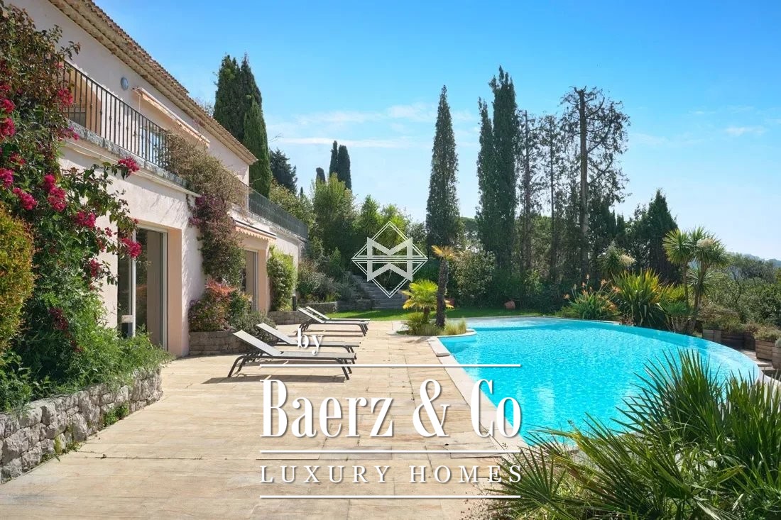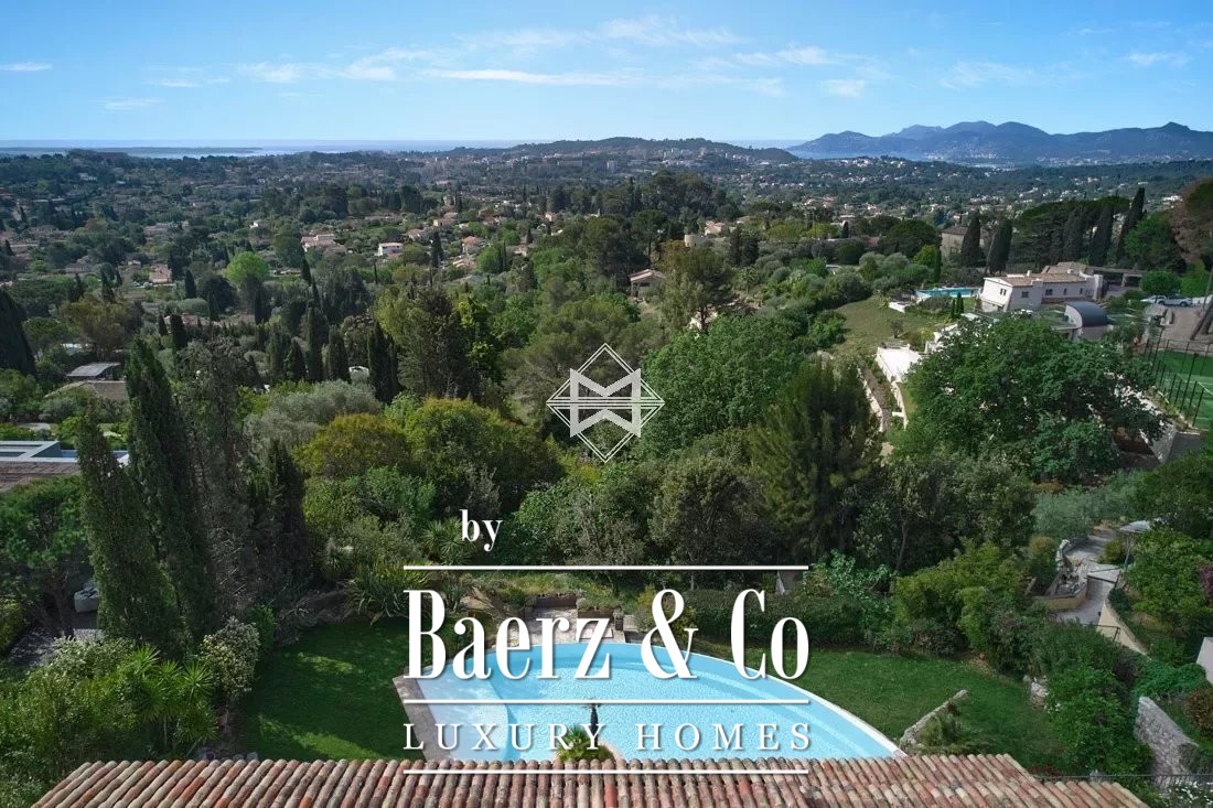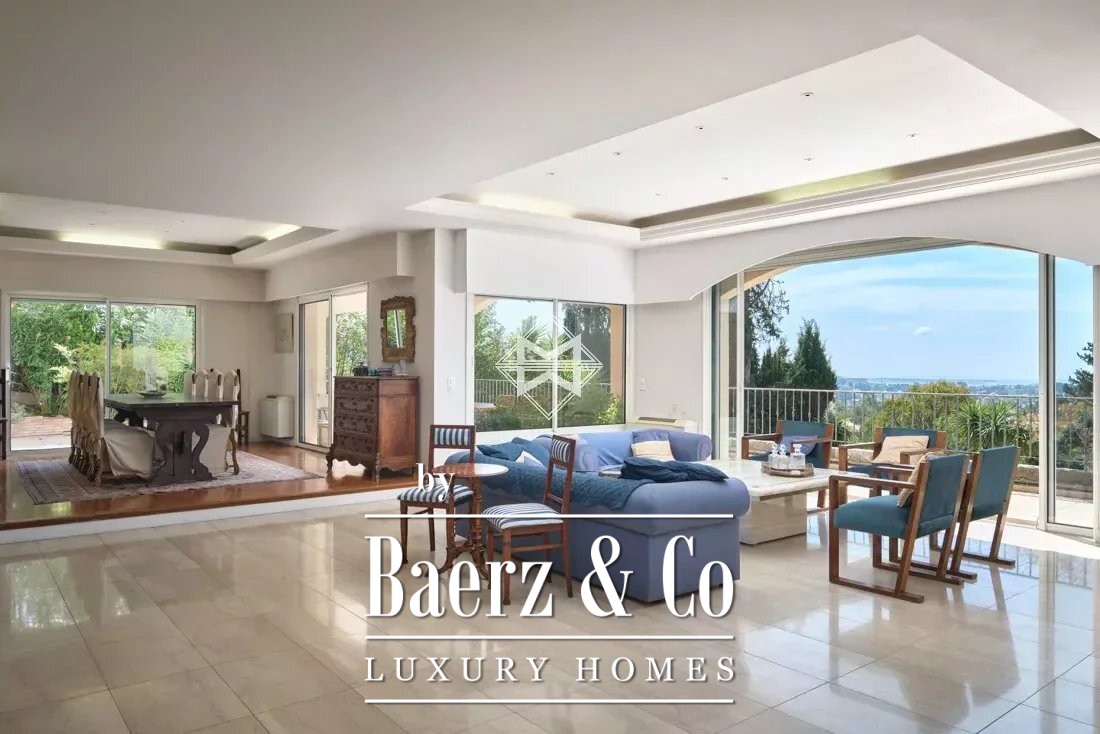 Villa Mougins, met panoramisch uitzicht op zee en bergen, biedt een zeldzame samensmelting van privacy en het mediterrane licht. Deze residentie van 362 m² ligt in een beveiligd besloten domein, hoog boven het oude dorp Mougins, met een vrij uitzicht dat zich uitstrekt van de Lérins-eilanden tot aan het Estérel-schiereiland. Dankzij de zuidgerichte ligging worden alle drie de etages op elk moment van de dag overspoeld door natuurlijk licht, versterkt door royale raampartijen die binnenleven naadloos verbinden met het buitengewone panorama.